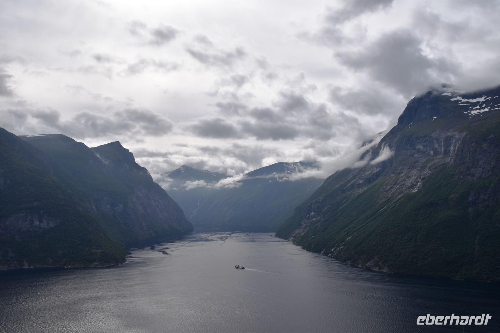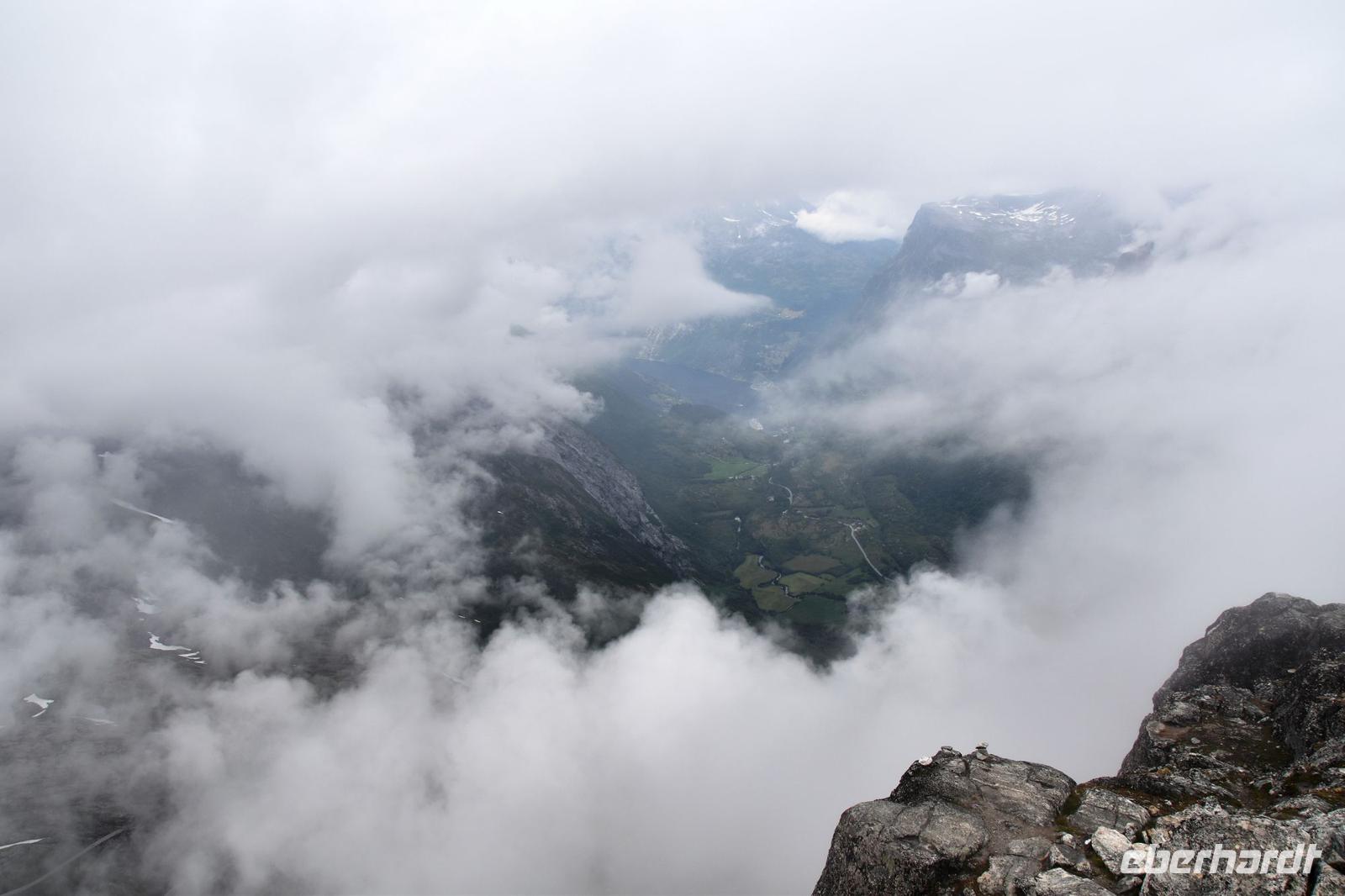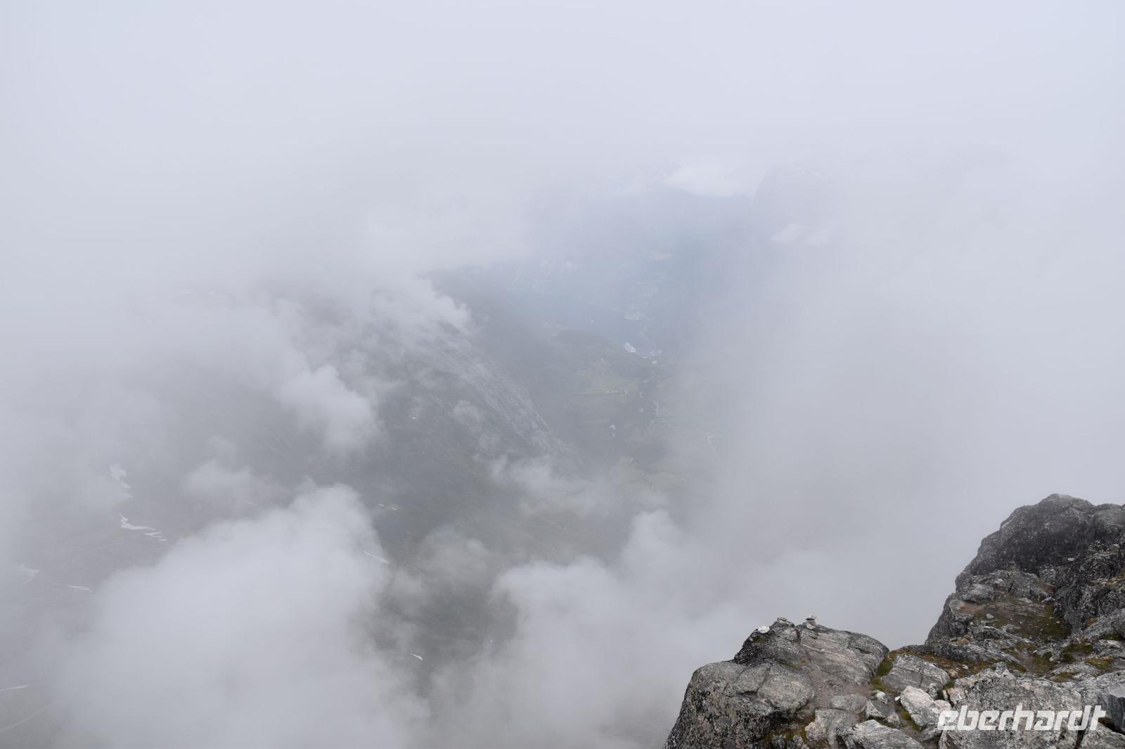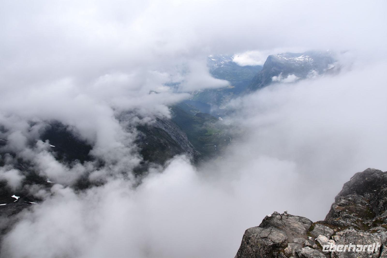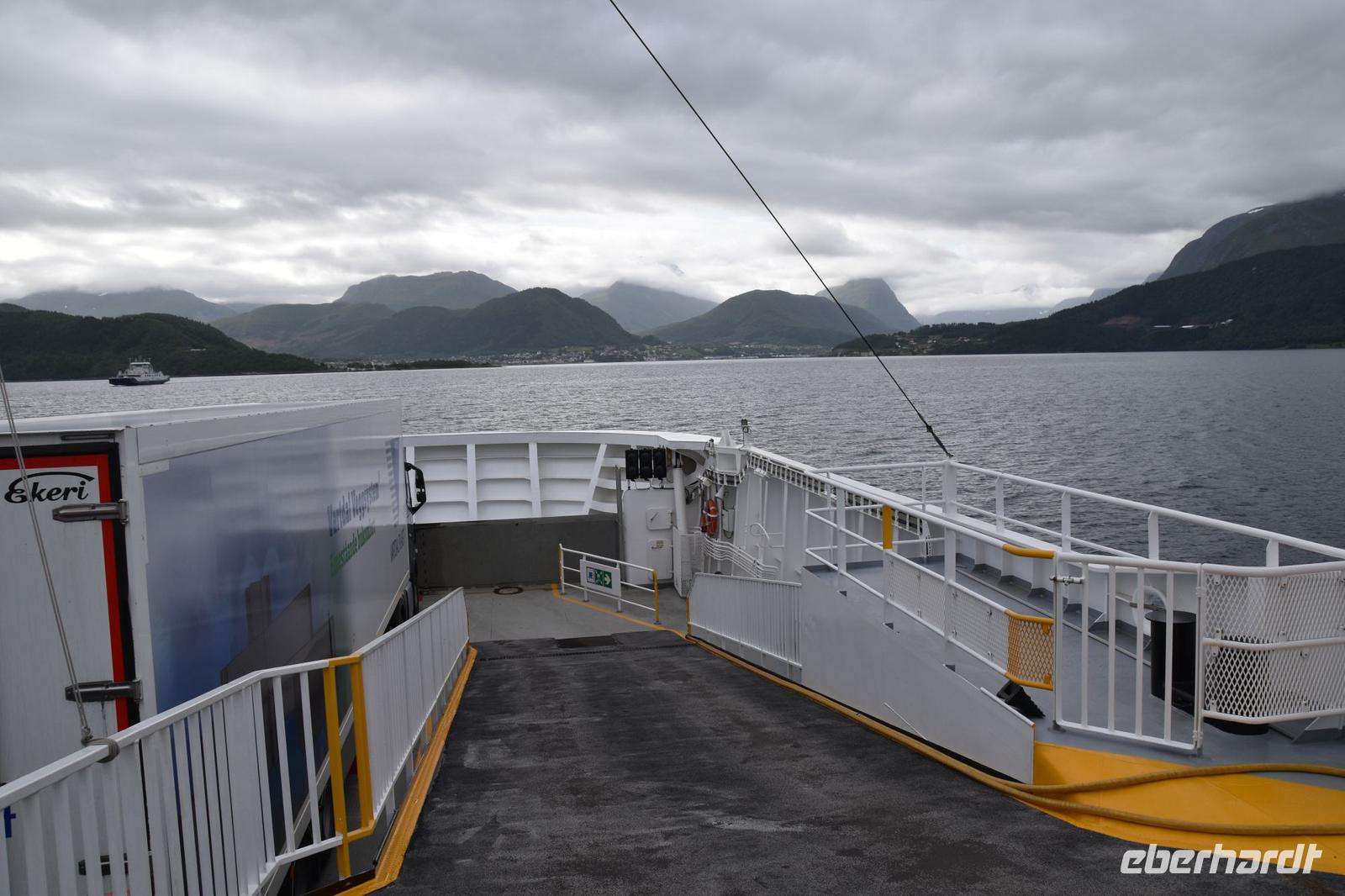 Von Magerholm aus überqueren wir den Storfjord am Morgen und von Orsneset (Sykkylven) geht es in die alpine Bergwelt von Sunnmøre. Leider stecken die Gipfel heute in den Wolken.