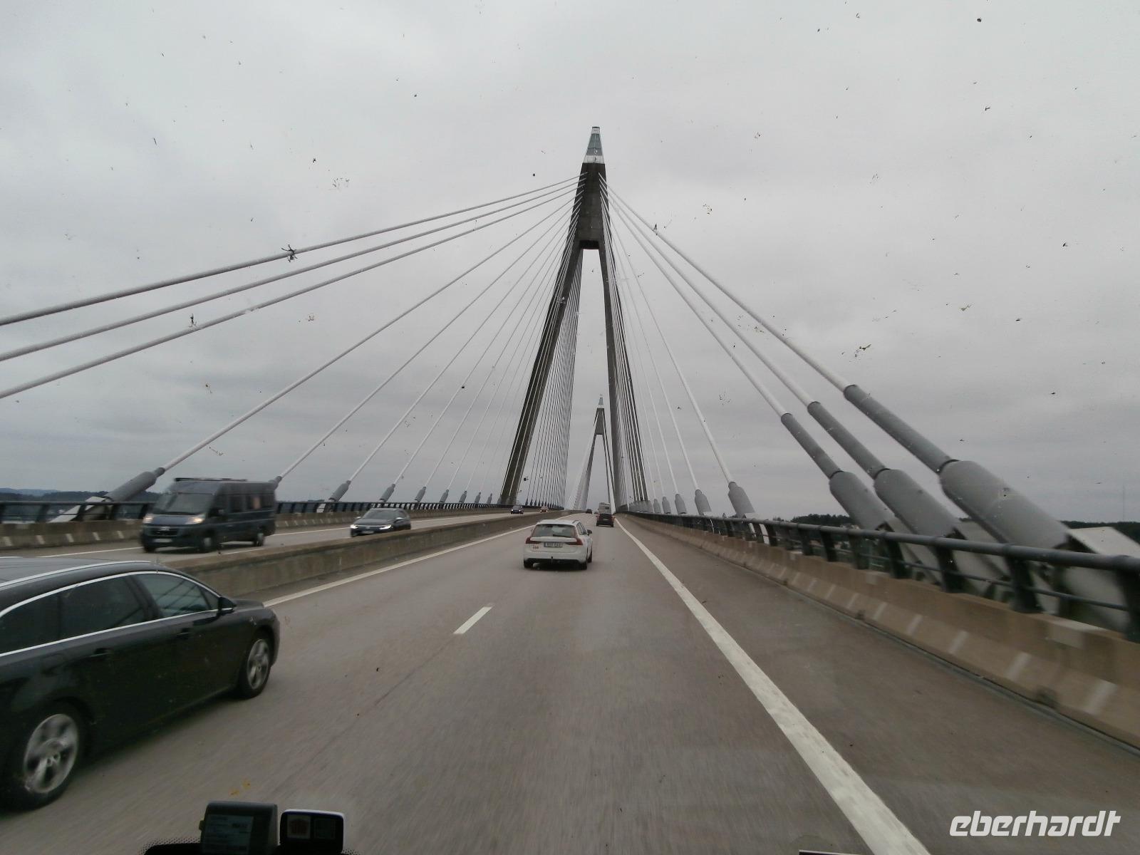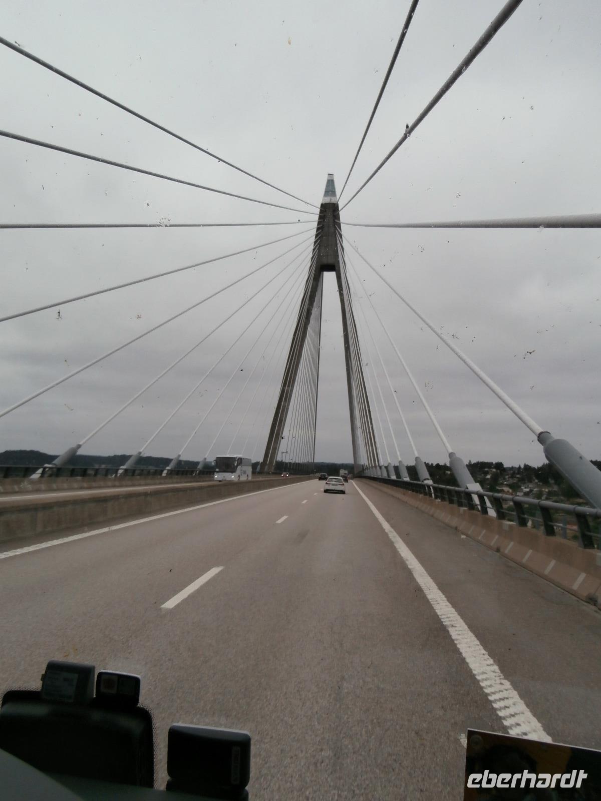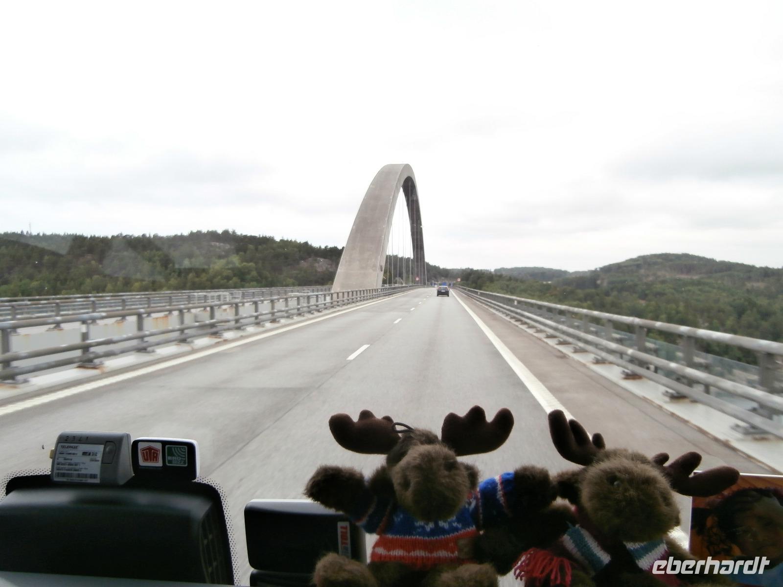 Pünktlich legt unsere Fähre in Göteborg an und gemeinsam gehen wir von Bord. Erste Fotos von der fantastischen Älvsborgbron werden geschossen und im Anschluss fahren wir auch über diese schöne Brücke von Göteborg weg. Entlang der schwedischen Küste über Sarpsborg bis hinein nach Oslo geht unsere Fahrt. Über die Neue Svinesundbrücke, eine