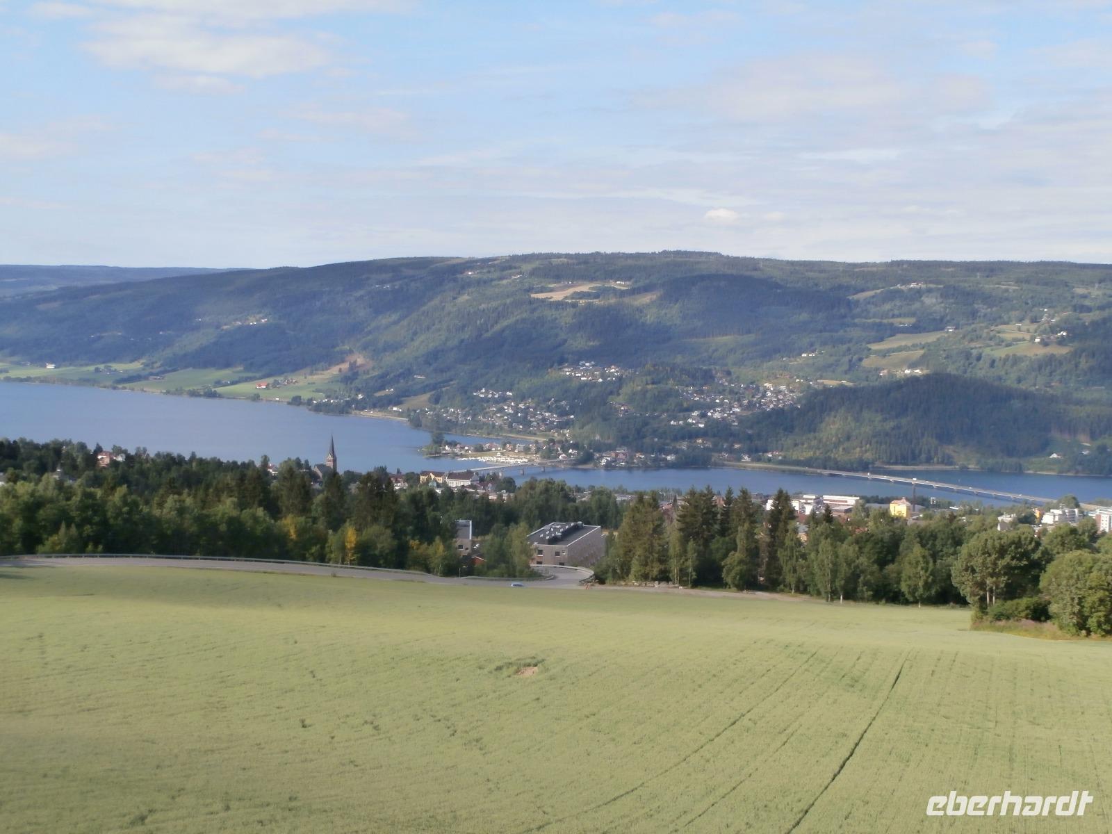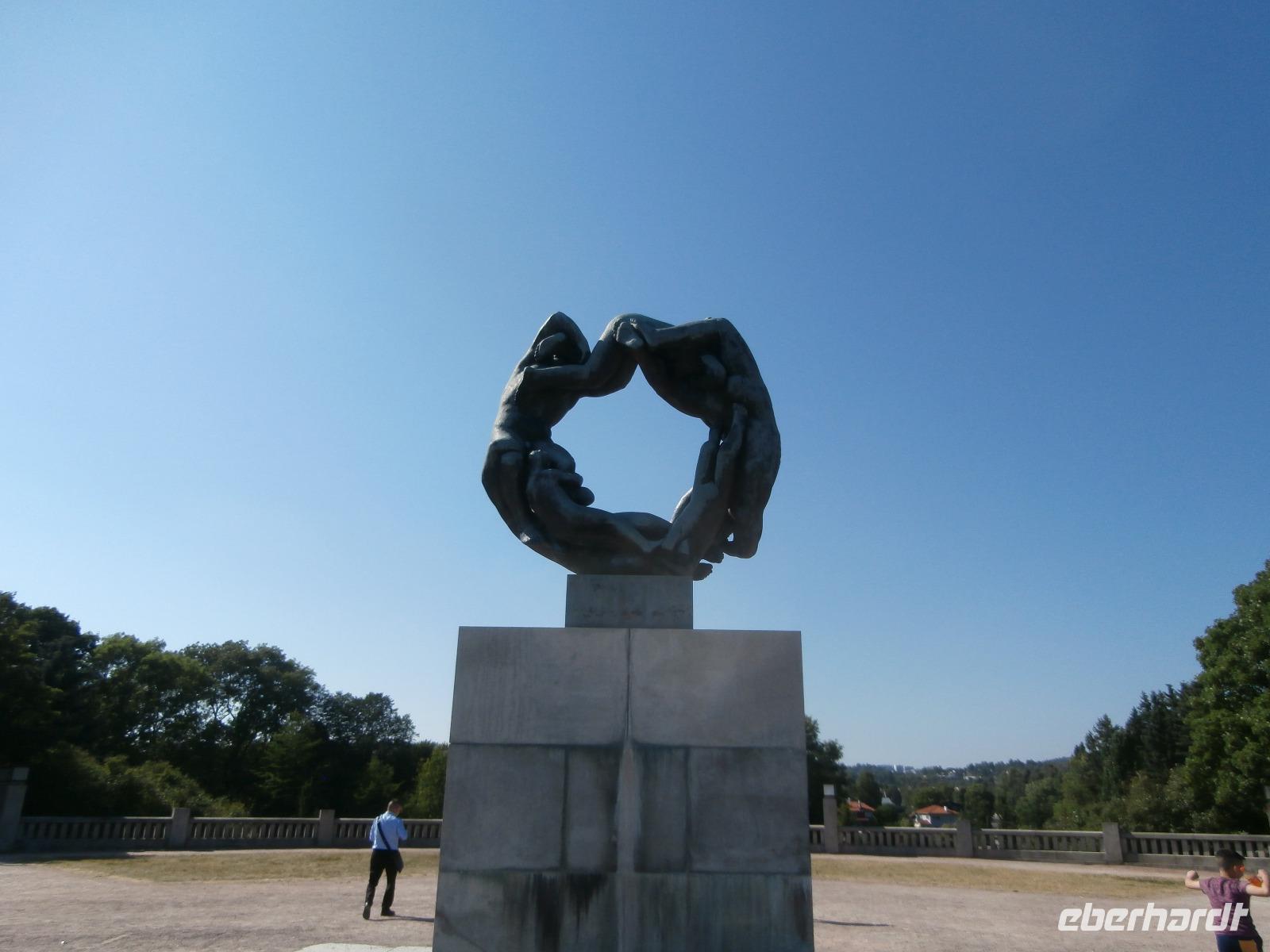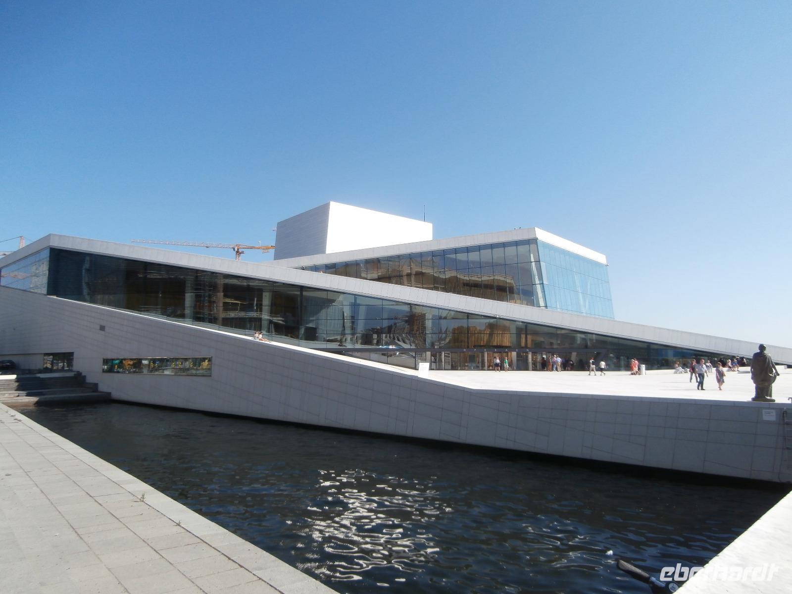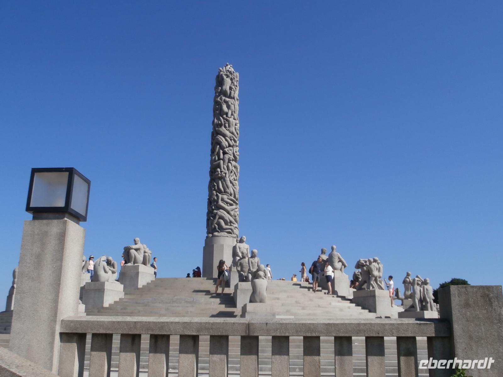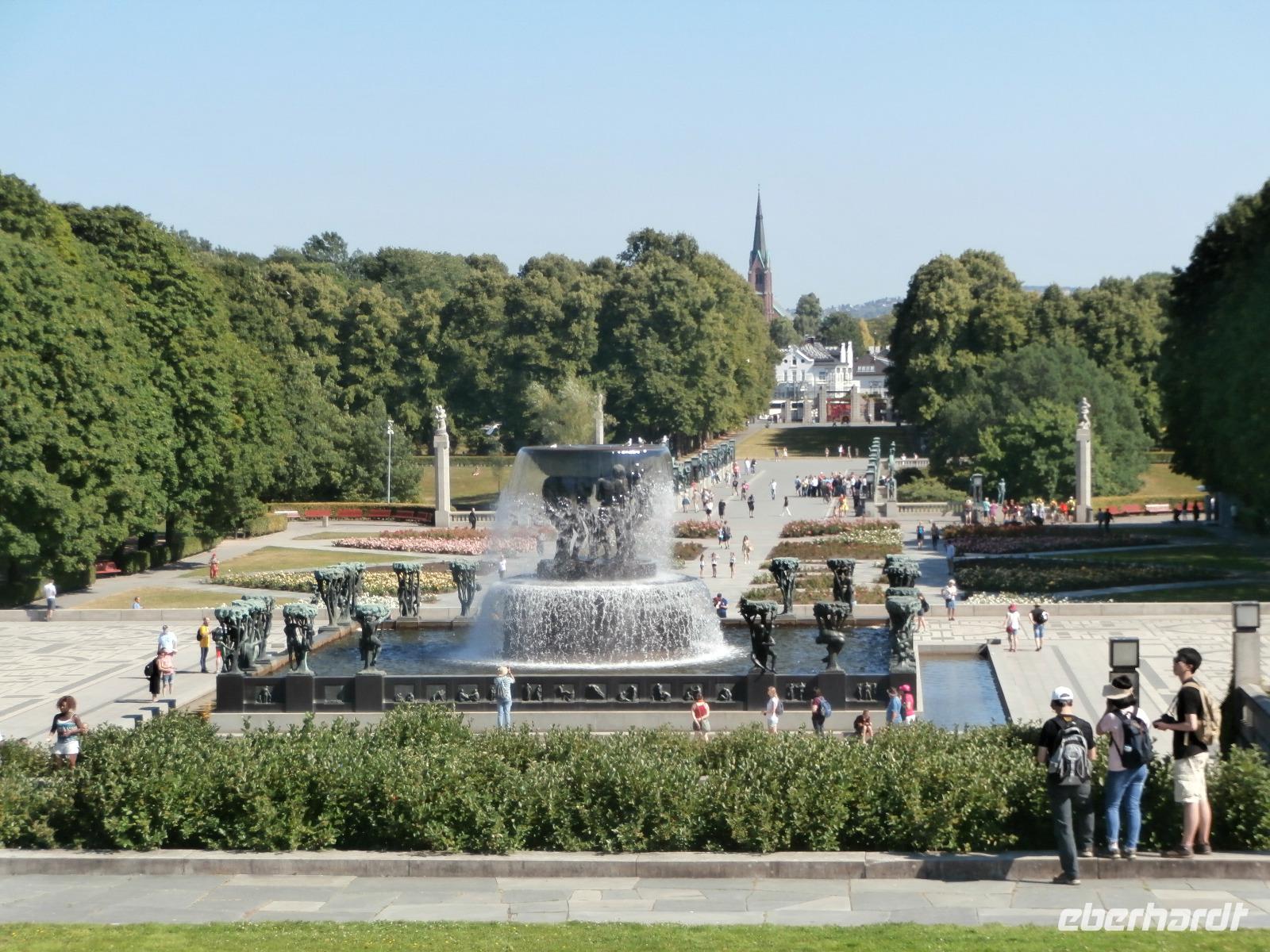 Einbogen Brücke, an der links und rechts die Fahrbahnen hängen, reisen wir in Norwegen ein. Ingrid spielt auch hier wie schon bei Ankunft in Schweden, die Nationalhymne ab. Wir haben einen schönen Blick auf die alte Brücke und den Svinesund, er markiert die Grenze zu Norwegen. Die norwegische Hauptstadt am Oslofjord erwartet uns mit Sommertemperaturen und blauen Himmel. Im Osloer Rathaus wird jährlich im Dezember der Friedensnobelpreis verliehen. Leider ist es heute nicht möglich hinein zugehen, der gesamte Verkehr wird weiträumig am Rathaus vorbei geführt. Mit Eva, unserer örtlichen Führerin, fahren wir durch die Stadt und dann geht es zum Vigelandpark. Dieser Skulpturenpark zeigt unter anderem das Leben eines Menschen, ein ganz toller Zyklus geschaffen von Gustav Vigeland. Berühmteste Skulptur ist sicher der kleine Trotzkopf. Nach einer weiteren kleinen Stadtrundfahrt legen wir an der fantastischen Oper in weißen Marmor einen Stopp ein. Zusammen mit Eva spazieren wir kurz auf dem Dach der Oper, sie erklärt noch einige wichtige Fakten und dann verabschieden wir uns voneinander. Wir verlassen die Stadt in Richtung Nord, am größten Binnensee Norwegens, dem Mjösasee, fahren wir entlang. Wir erleben eine Riesenbaustelle an der E 6, der Ausbau geht voran und heute Abend wird immer noch kräftig gebaut. In der Vorbeifahrt sehen wir die Olympiahalle Wikingship, ein Foto zu schießen gelingt vereinzelt. Am Abend checken wir im Scandic Hotel Hamar ein.