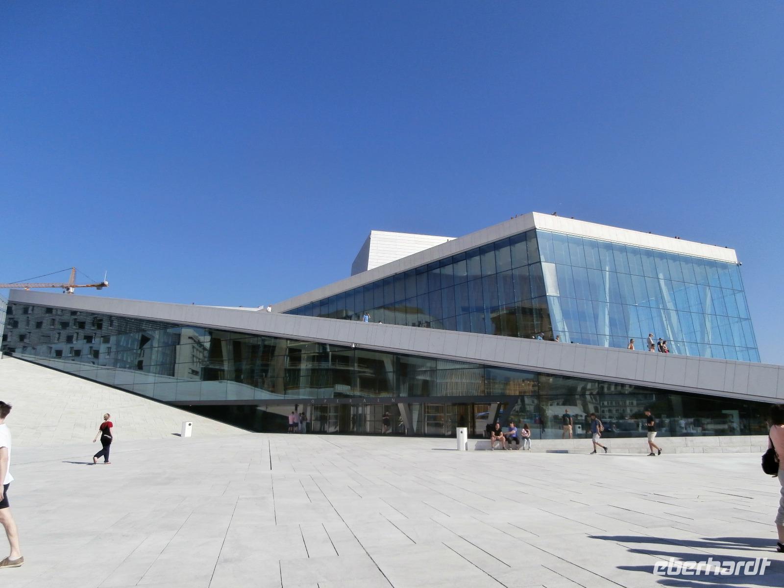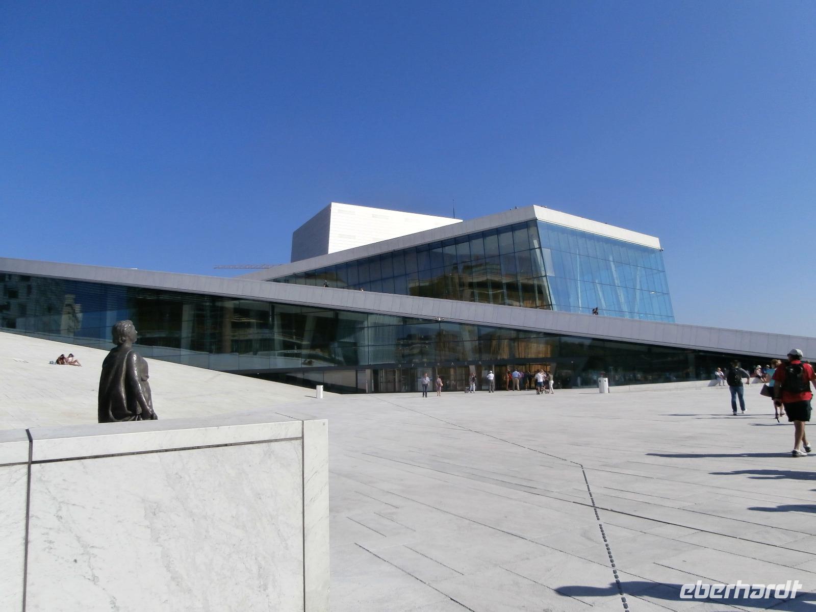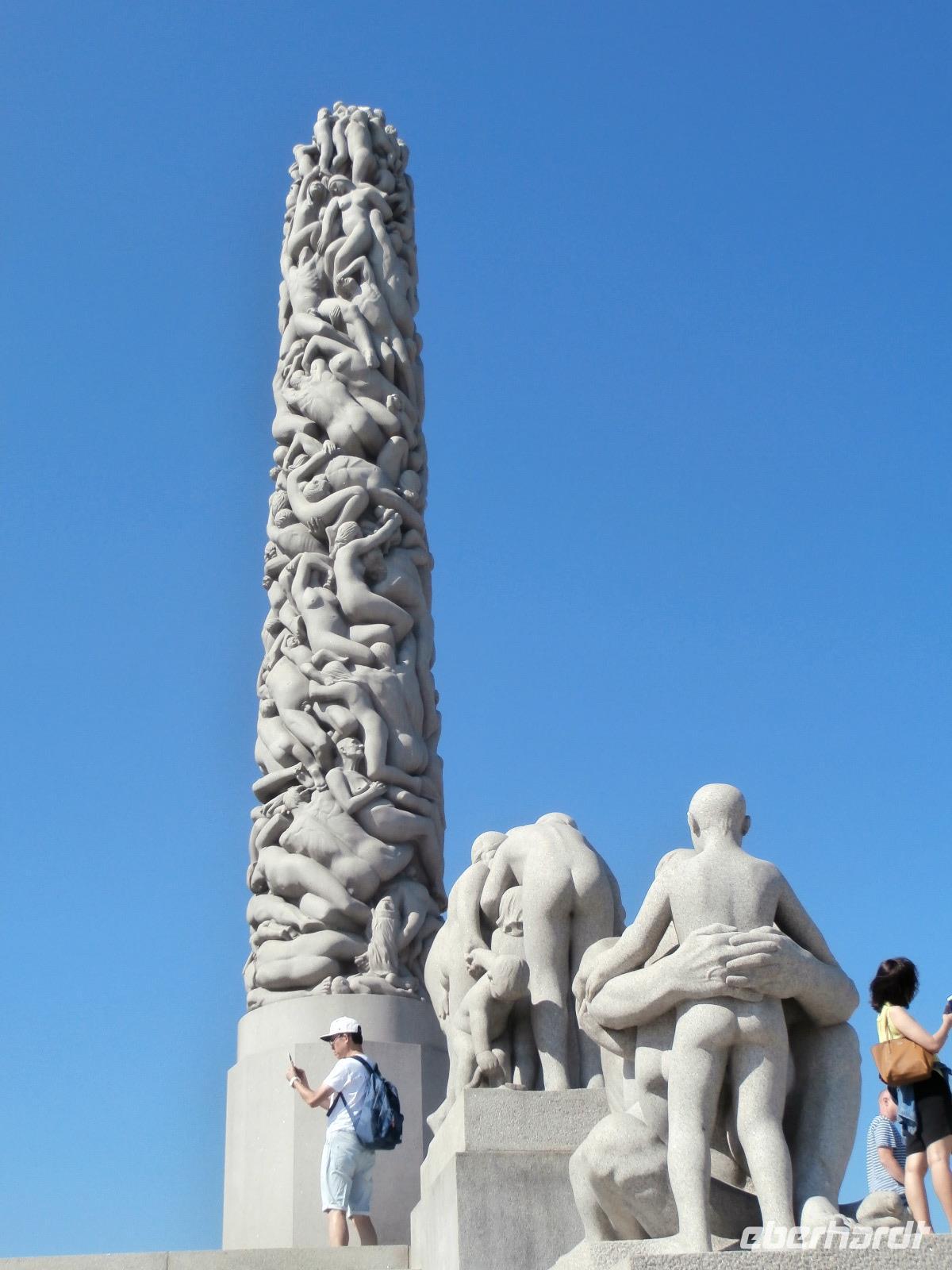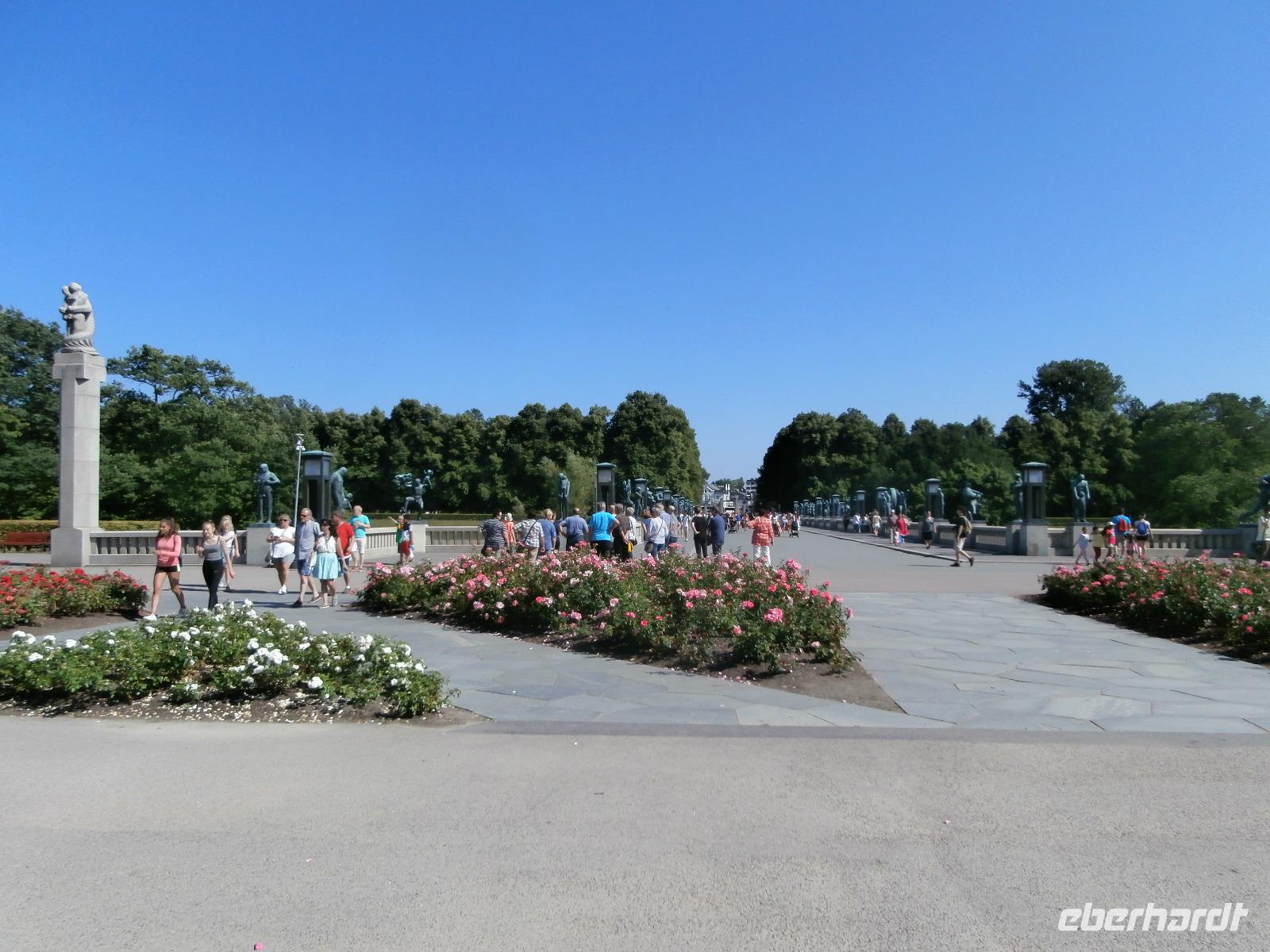 Einbogen Brücke, an der links und rechts die Fahrbahnen hängen, reisen wir in Norwegen ein. Ingrid spielt auch hier wie schon bei Ankunft in Schweden, die Nationalhymne ab. Wir haben einen schönen Blick auf die alte Brücke und den Svinesund, er markiert die Grenze zu Norwegen. Die norwegische Hauptstadt am Oslofjord erwartet uns mit Sommertemperaturen und blauen Himmel. Im Osloer Rathaus wird jährlich im Dezember der Friedensnobelpreis verliehen. Leider ist es heute nicht möglich hinein zugehen, der gesamte Verkehr wird weiträumig am Rathaus vorbei geführt. Mit Eva, unserer örtlichen Führerin, fahren wir durch die Stadt und dann geht es zum Vigelandpark. Dieser Skulpturenpark zeigt unter anderem das Leben eines Menschen, ein ganz toller Zyklus geschaffen von Gustav Vigeland. Berühmteste Skulptur ist sicher der kleine Trotzkopf. Nach einer weiteren kleinen Stadtrundfahrt legen wir an der fantastischen Oper in weißen Marmor einen Stopp ein. Zusammen mit Eva spazieren wir kurz auf dem Dach der Oper, sie erklärt noch einige wichtige Fakten und dann verabschieden wir uns voneinander. Wir verlassen die Stadt in Richtung Nord, am größten Binnensee Norwegens, dem Mjösasee, fahren wir entlang. Wir erleben eine Riesenbaustelle an der E 6, der Ausbau geht voran und heute Abend wird immer noch kräftig gebaut. In der Vorbeifahrt sehen wir die Olympiahalle Wikingship, ein Foto zu schießen gelingt vereinzelt. Am Abend checken wir im Scandic Hotel Hamar ein.