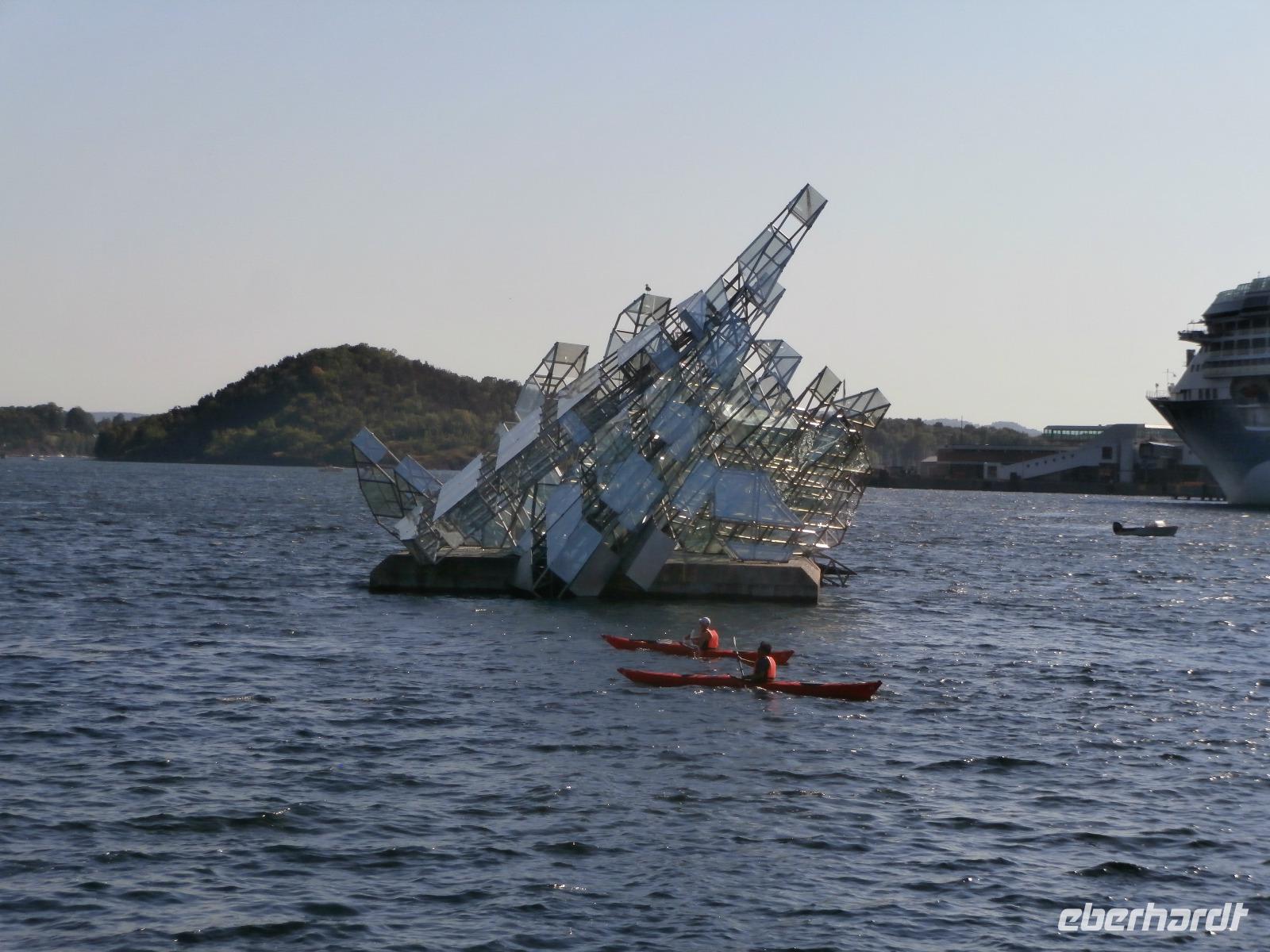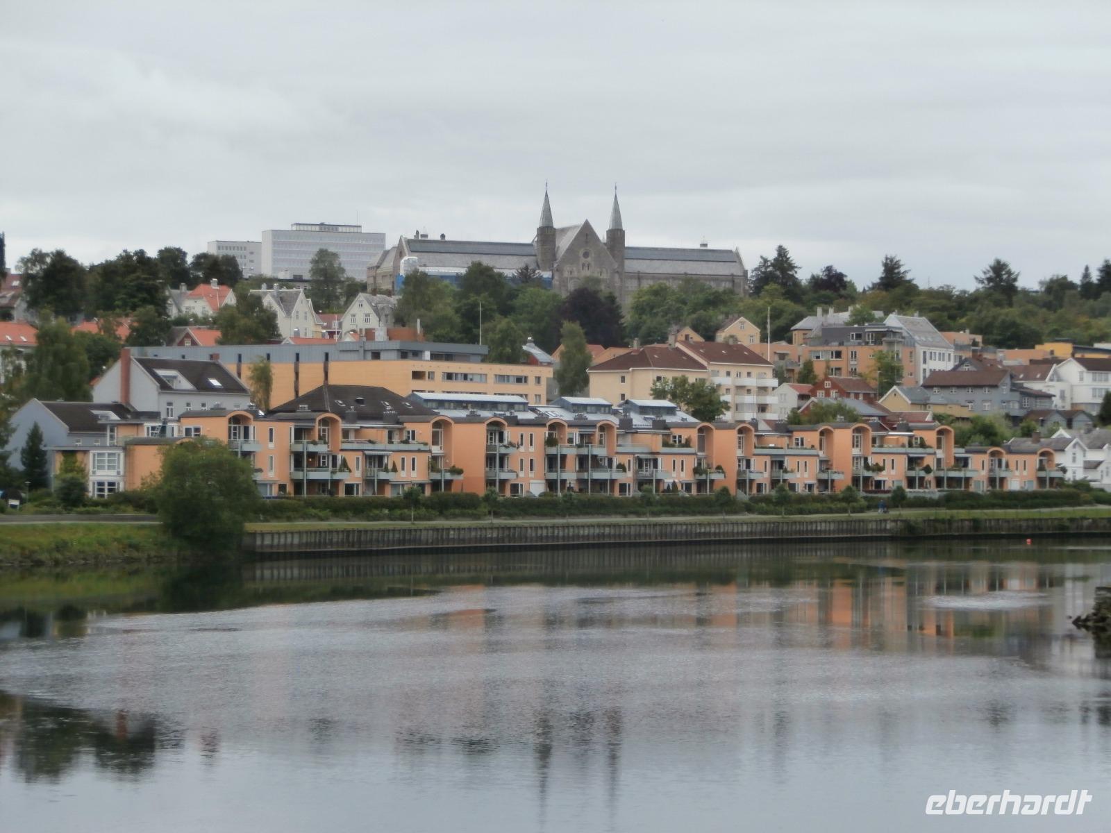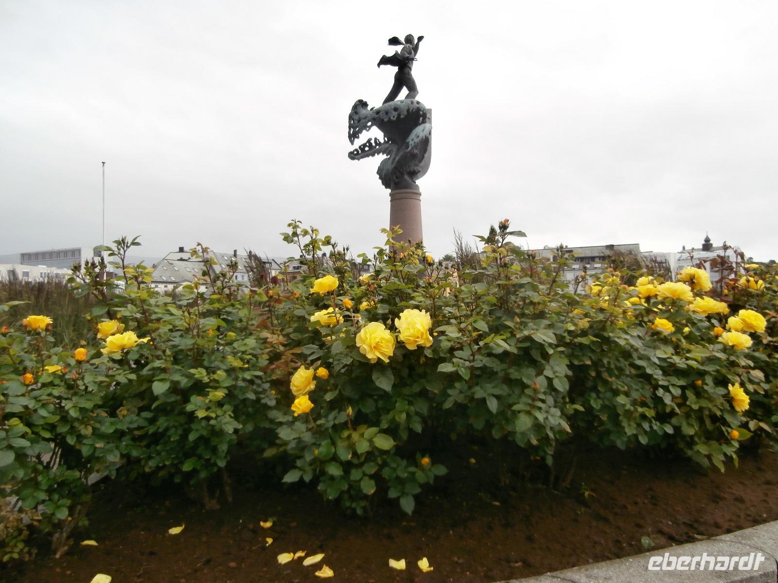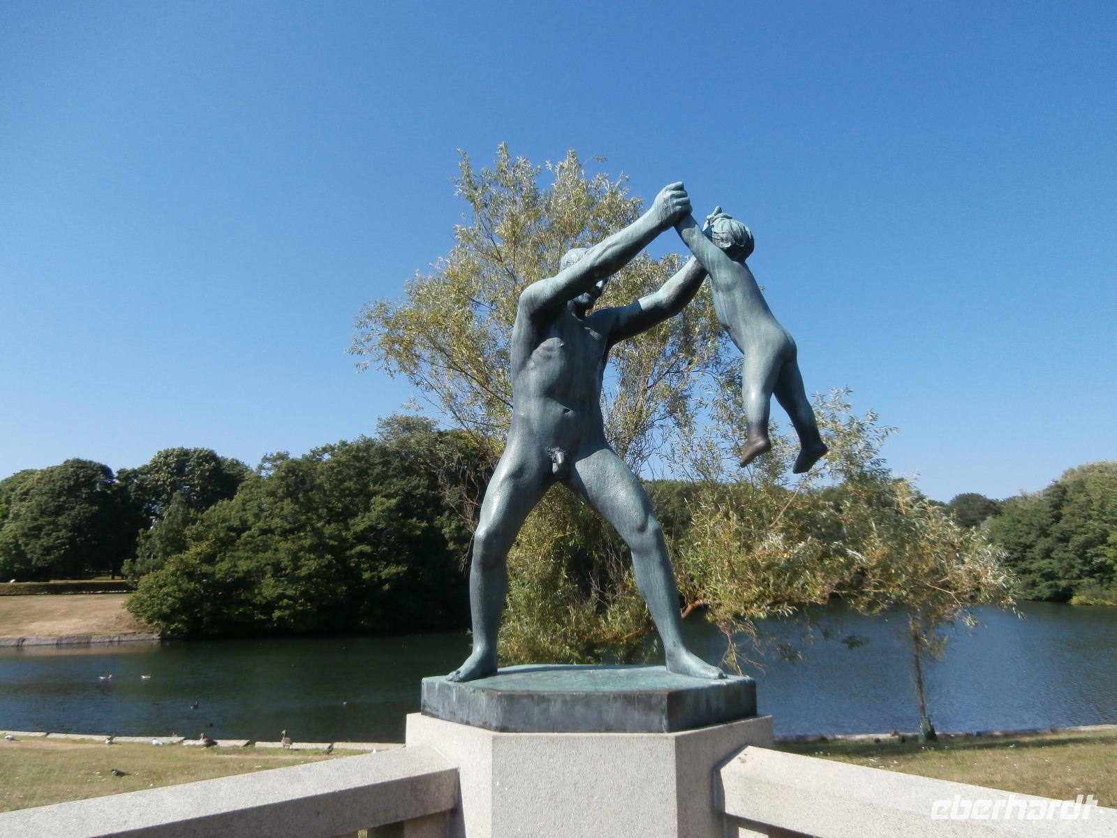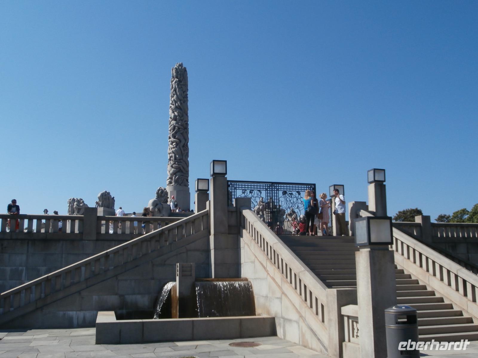 Einbogen Brücke, an der links und rechts die Fahrbahnen hängen, reisen wir in Norwegen ein. Ingrid spielt auch hier wie schon bei Ankunft in Schweden, die Nationalhymne ab. Wir haben einen schönen Blick auf die alte Brücke und den Svinesund, er markiert die Grenze zu Norwegen. Die norwegische Hauptstadt am Oslofjord erwartet uns mit Sommertemperaturen und blauen Himmel. Im Osloer Rathaus wird jährlich im Dezember der Friedensnobelpreis verliehen. Leider ist es heute nicht möglich hinein zugehen, der gesamte Verkehr wird weiträumig am Rathaus vorbei geführt. Mit Eva, unserer örtlichen Führerin, fahren wir durch die Stadt und dann geht es zum Vigelandpark. Dieser Skulpturenpark zeigt unter anderem das Leben eines Menschen, ein ganz toller Zyklus geschaffen von Gustav Vigeland. Berühmteste Skulptur ist sicher der kleine Trotzkopf. Nach einer weiteren kleinen Stadtrundfahrt legen wir an der fantastischen Oper in weißen Marmor einen Stopp ein. Zusammen mit Eva spazieren wir kurz auf dem Dach der Oper, sie erklärt noch einige wichtige Fakten und dann verabschieden wir uns voneinander. Wir verlassen die Stadt in Richtung Nord, am größten Binnensee Norwegens, dem Mjösasee, fahren wir entlang. Wir erleben eine Riesenbaustelle an der E 6, der Ausbau geht voran und heute Abend wird immer noch kräftig gebaut. In der Vorbeifahrt sehen wir die Olympiahalle Wikingship, ein Foto zu schießen gelingt vereinzelt. Am Abend checken wir im Scandic Hotel Hamar ein.