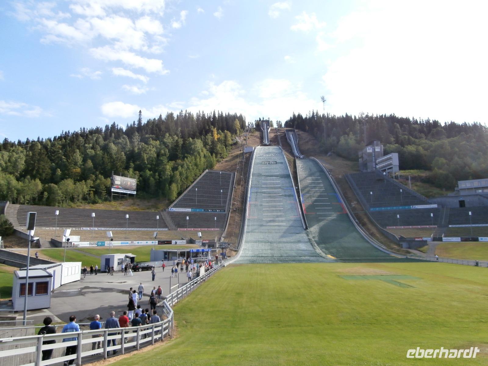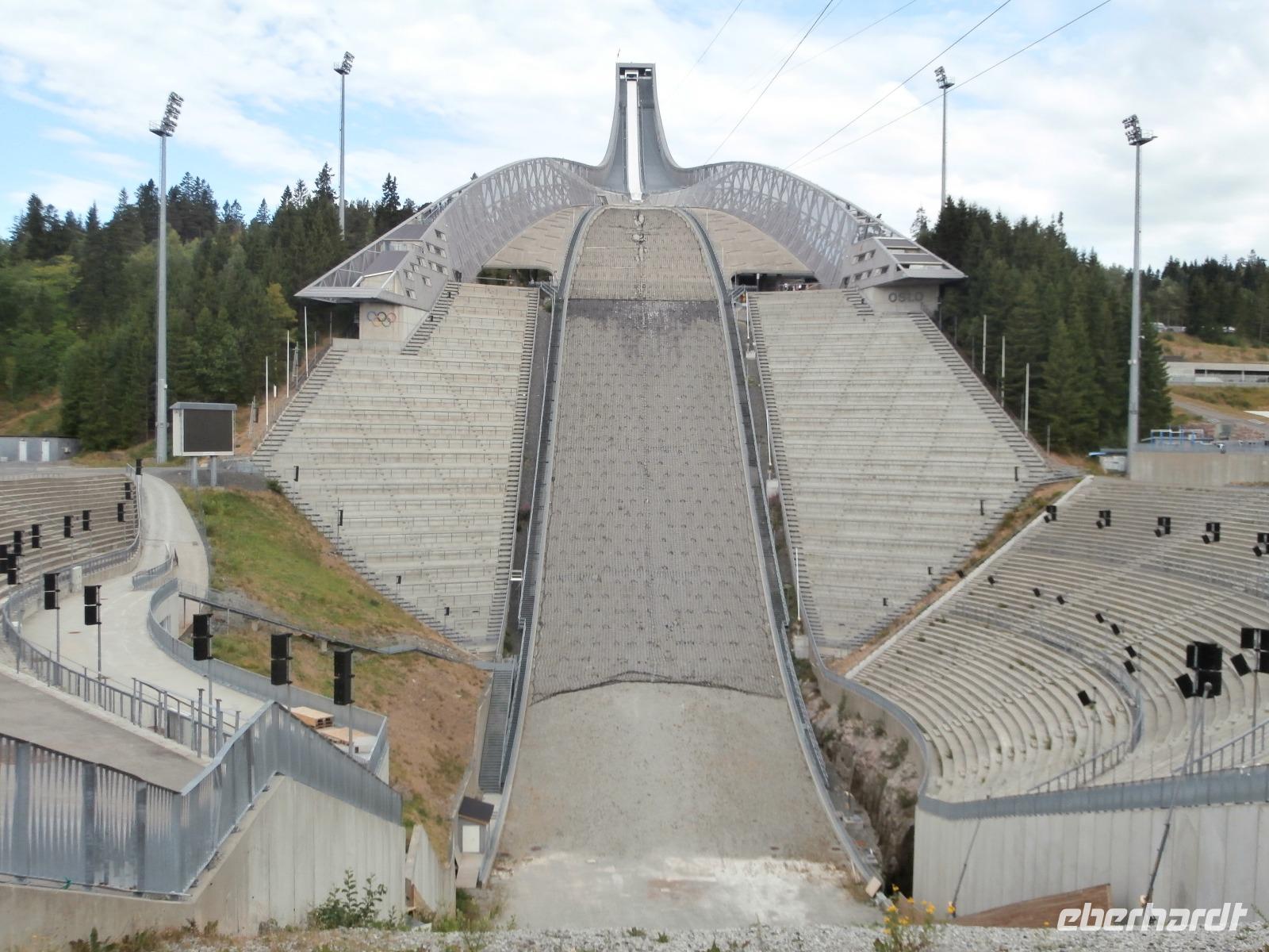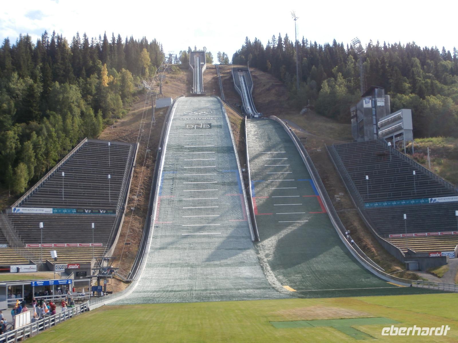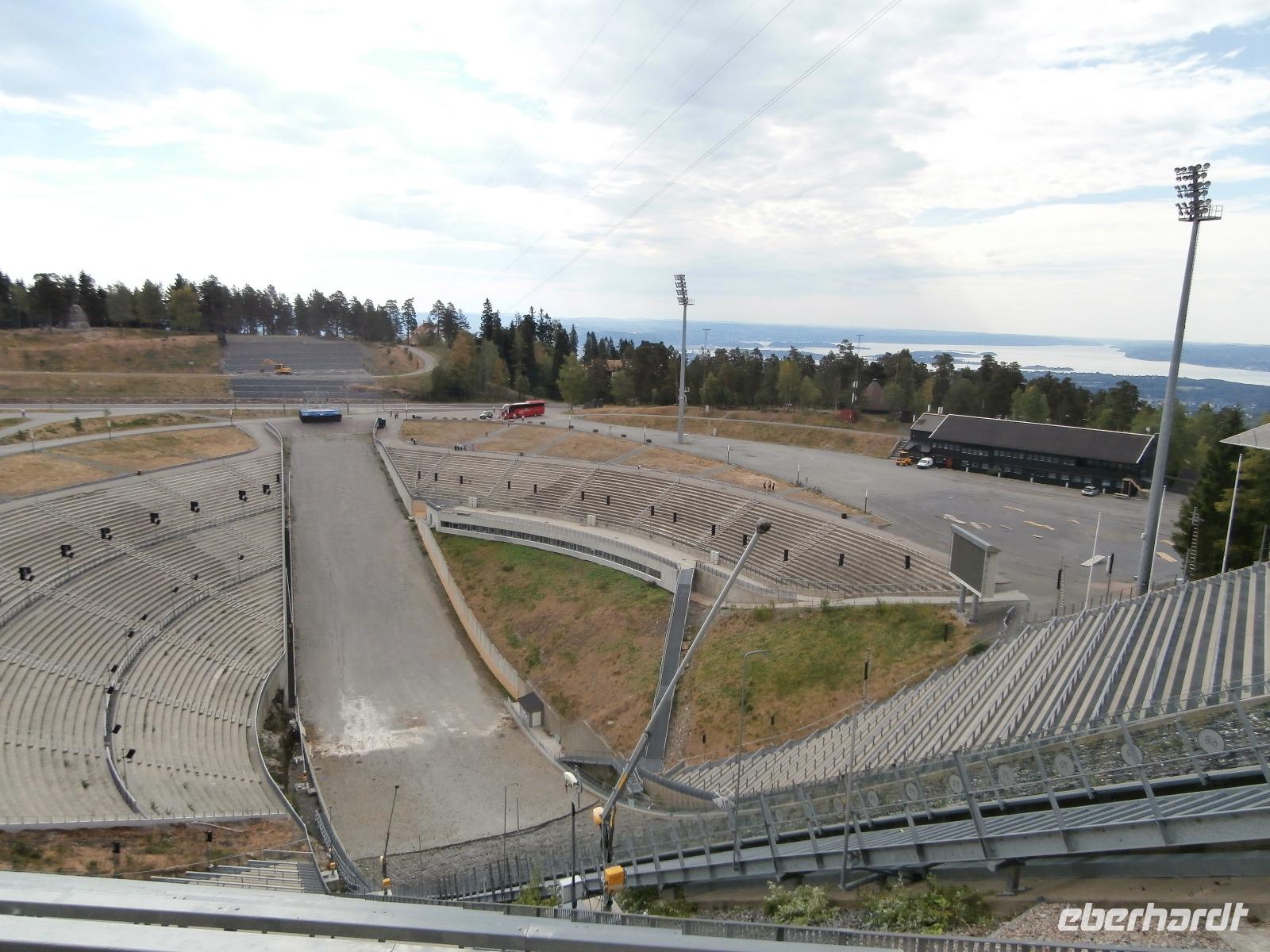 Gepäckverladung und Sortierung nach Ausstieg und schon geht es wieder weiter auf unserer Rundreise. Auch heute Morgen scheint die Sonne und lässt die Tagestemperaturen wieder in Richtung 30 Grad gehen. In Oslo nehmen wir gleich Kurs auf den Holmenkollen. Bei guter Sicht wollen wir uns allumfassend mit dem Skispringen auseinandersetzen. Die Fahrt mit dem Lift innerhalb der Sprungschanze bis nach Oben ist ein Erlebnis. Der Blick geht weit hinunter über Oslo und den Oslofjord und die Schärenwelt. Mit einem Zwischenstopp in Halden geht unsere Fahrt in Norwegen zu Ende. Etwas Stau unterwegs in Richtung Svinesund macht uns keine Sorgen, wir haben genügend Fahrzeit bis zum Fährhafen in Göteborg eingeplant. Kurz vor Ankunft in Göteborg entdecke ich auf der linken Seite gleich neben der Autobahn E6 zwei Elche. Sie sind flott unterwegs, rennen in Richtung des Wildzaunes direkt neben der Bahn. Endlich Elche gesehen, also wir haben auch diesen Programmpunkt auf unserer Reise erfüllt. Ankunft in Göteborg, wir gehen sofort an Bord von Stena Line und beziehen unsere Kabinen der Stena Germanica. 18.45 Uhr treffen wir uns im Restaurant, um wieder ein schmackhaftes skandinavisches Büffet zu genießen. Bei Wein und Bier erleben wir das Auslaufen unserer Fähre. Schon Morgen sind wir alle wieder zu haus, schnell wird der Alltag uns wieder einholen, aber schöne Eindrücke bleiben und müssen erst einmal verarbeitet werden. 417 km