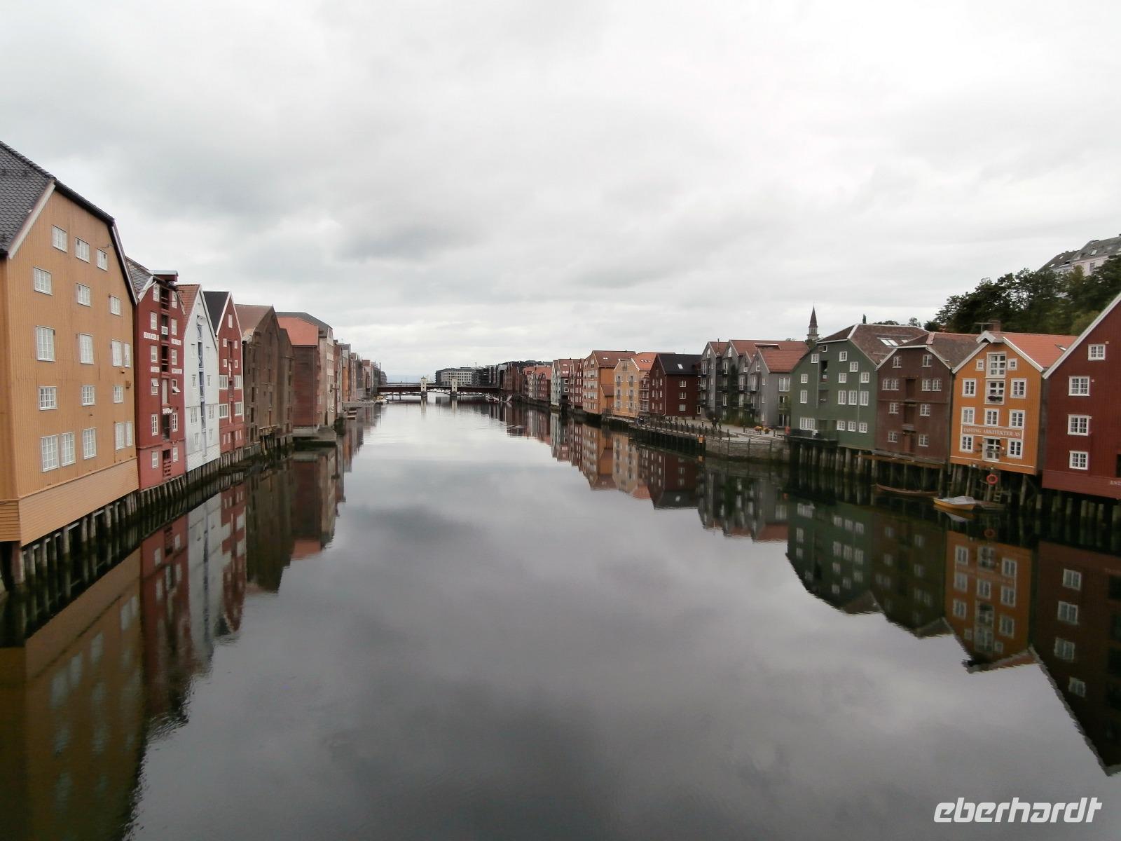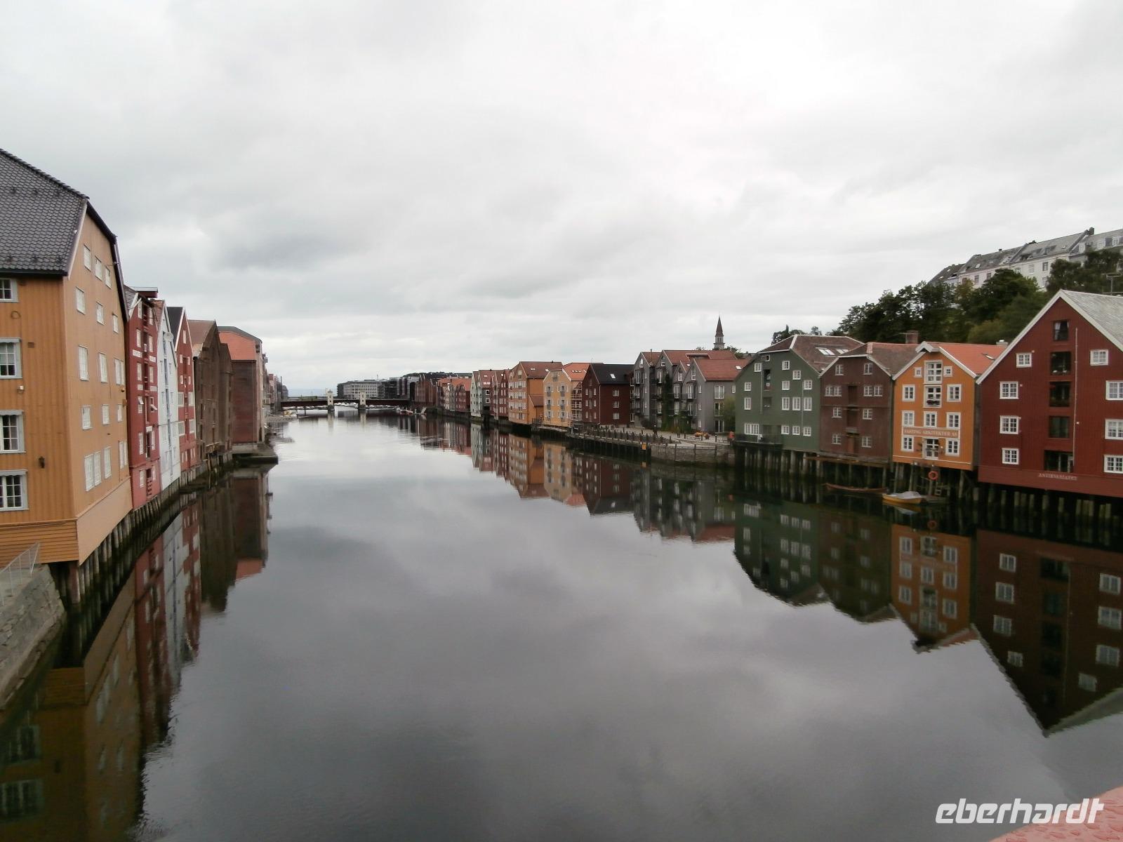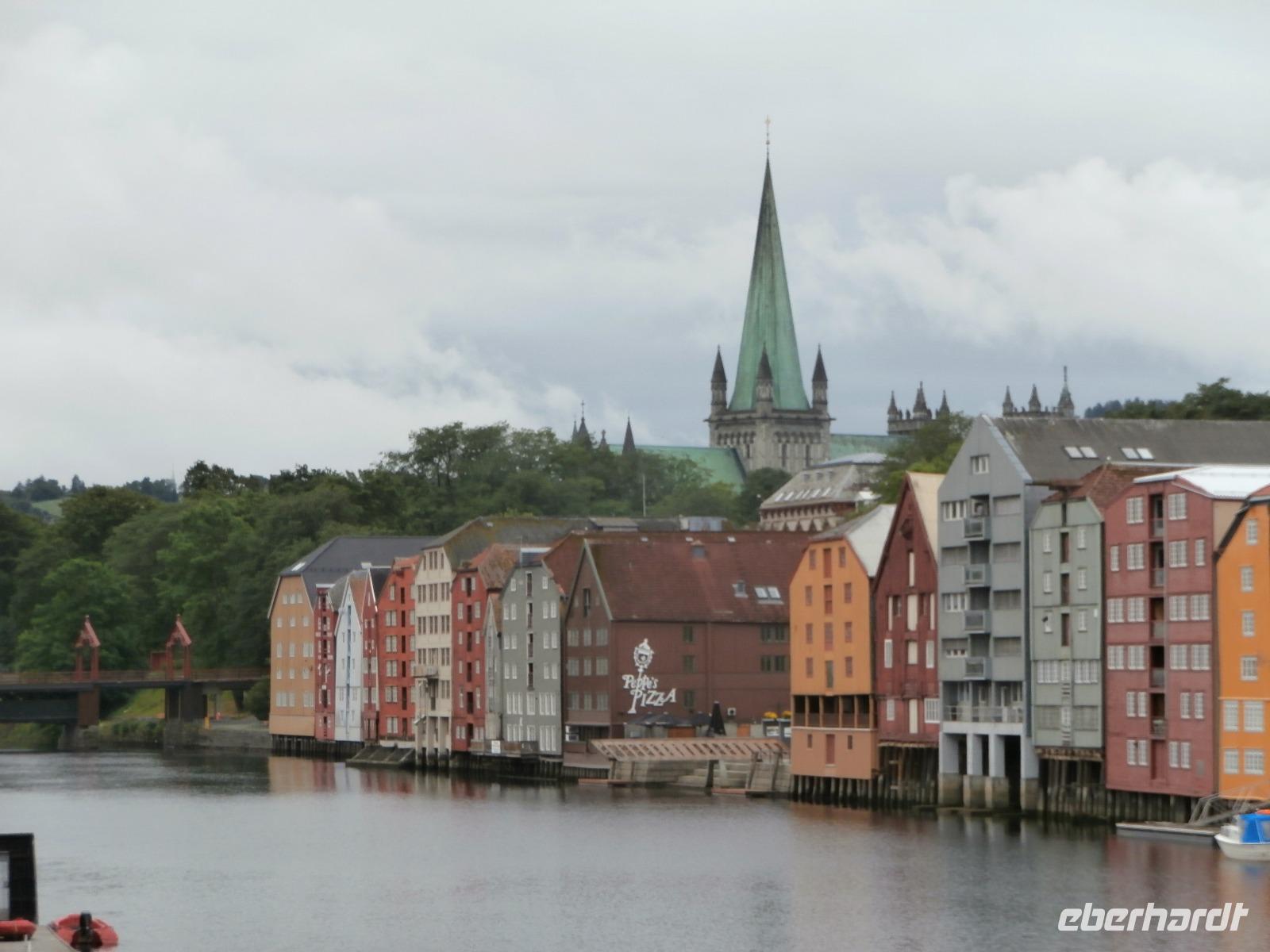 Erster großer Höhepunkt unserer Reise ist heute der Besuch der Schanzenanlagen in Lillehammer. Zuvor machen wir einen Fotostopp am Mjösasee mit schönem Blick zu den Schanzenanlagen. Es ist heute Morgen eine ganz besondere Stimmung am See. An den Schanzen von Lillehammer herrscht gute Sicht, einige Reisegäste fahren mit dem Lift nach Oben und wir können alle die schöne Anlage betrachten und fotografieren. Der Besuch des Freilichtmuseums Maihaugen ist für uns alle ein besonderes Erlebnis. Unsere Führerin Elena erwartet uns schon, wir beginnen unseren Rundgang mit dem Besuch des Pfarrhauses. Eine elegante Einrichtung bestaunen wir und lauschen den Ausführungen der örtlichen Guide. Vor der alten Schule treten wir in Reih und Glied an, nach Kontrolle der Hände und der Sauberkeit bis hinter den Ohren, lernen wir etwas norwegisch und bekommen Einblick in das Schulleben weit vor unserer Zeit. Auf dem alten Bauernhof treffen wir uns zum Schluss. Hier bekommen wir einen kurzen Einblick in die Geschichte Norwegens und das Leben auf den Höfen im Gudbrandsdal in der Vergangenheit. Die Stabkirche von Garmo betrachten sich auch viele Reisegäste. Wir sehen hier im Freilichtmuseum viele grasbedeckte Häuser, nun etwas zum Verfahren des Dachdeckens dieser typischen Häuser mit Erde und Grasnarbe. Sieben Mal wird Birkenrinde in Lagen aufgebracht, dann Grasnarbe mit Wurzeln nach Oben und noch eine Schicht davon zum Abschluss mit Erde nach Unten wegen der Isolierung und damit die Wurzeln nicht die Birkenrinde zerstören. Dem Postzug statten viele von uns noch einen Besuch ab. Weiter geht es auf der E6 in Richtung Norden durch Norwegens bekanntes Tal, das Gudbrandsdal, es ist Schauplatz vieler alter Legenden, von Kunst und Kultur, hier verläuft auch der Peer Gyntvegen. In die Stabkirche zu Ringebu schauen Einige von uns nach der Mittagspause am Bus hinein. Den ältesten Nationalpark Norwegens, das Rondane Gebirge, lassen wir östlich liegen. Über das einsam wirkende Dovrefjell setzen wir die Fahrt nach Trondheim fort. Schon immer mussten die Könige den beschwerlichen Weg auf dem Fjell nehmen, um in Trondheim ihre Weihe zu bekommen. Es ist daher auch der Königswegen-der historische Königs- und Pilgerweg nach Trondheim. Am Aussichtspunkt mit Blick zum Snöhetta, er zeigt sich fast wolkenfrei, stoppen wir für paar schöne Fotos. Wir haben unterwegs wieder Großbaustellen und so ist die Ankunft in Trondheim erst spät. Gegen sieben Uhr beziehen wir im Scandic Bakklandet unsere Zimmer, ein schönes Hotel direkt am Nidelv gelegen. Den Abend lassen unsere Gäste bei einem Spaziergang zum Dom und den alten Speicherhäusern am Nidelv ausklingen. 428 km