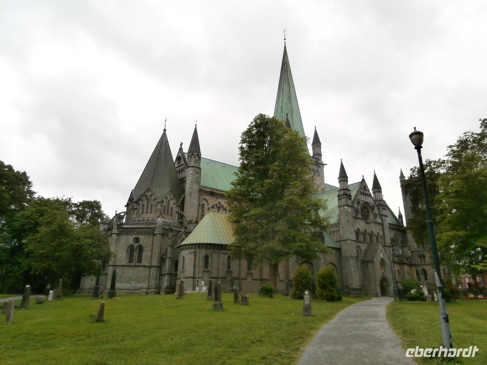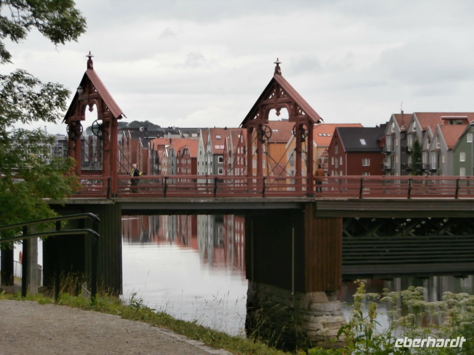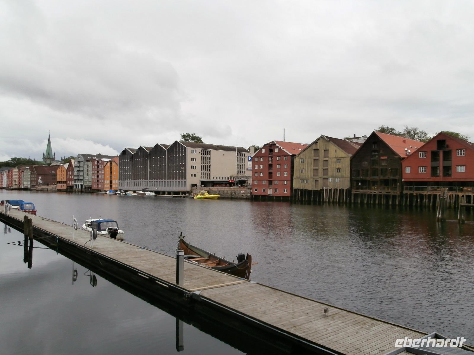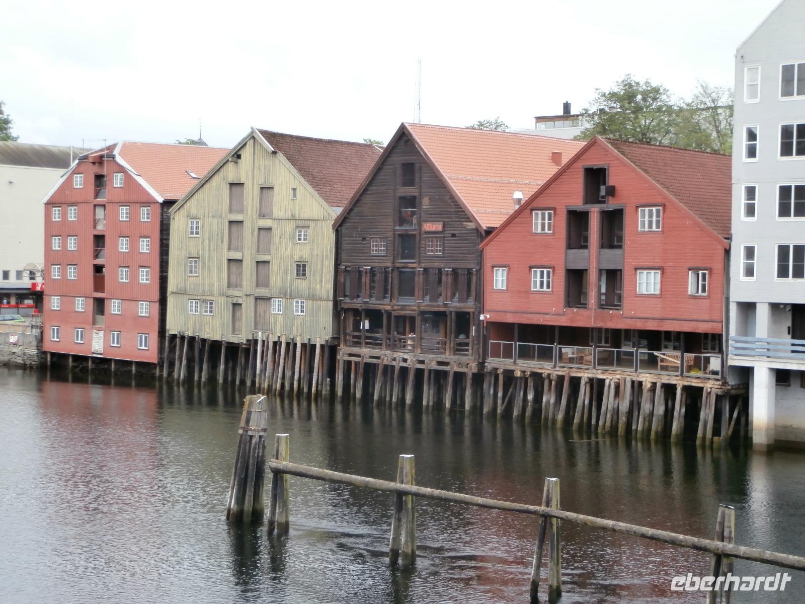Erster großer Höhepunkt unserer Reise ist heute der Besuch der Schanzenanlagen in Lillehammer. Zuvor machen wir einen Fotostopp am Mjösasee mit schönem Blick zu den Schanzenanlagen. Es ist heute Morgen eine ganz besondere Stimmung am See. An den Schanzen von Lillehammer herrscht gute Sicht, einige Reisegäste fahren mit dem Lift nach Oben und wir können alle die schöne Anlage betrachten und fotografieren. Der Besuch des Freilichtmuseums Maihaugen ist für uns alle ein besonderes Erlebnis. Unsere Führerin Elena erwartet uns schon, wir beginnen unseren Rundgang mit dem Besuch des Pfarrhauses. Eine elegante Einrichtung bestaunen wir und lauschen den Ausführungen der örtlichen Guide. Vor der alten Schule treten wir in Reih und Glied an, nach Kontrolle der Hände und der Sauberkeit bis hinter den Ohren, lernen wir etwas norwegisch und bekommen Einblick in das Schulleben weit vor unserer Zeit. Auf dem alten Bauernhof treffen wir uns zum Schluss. Hier bekommen wir einen kurzen Einblick in die Geschichte Norwegens und das Leben auf den Höfen im Gudbrandsdal in der Vergangenheit. Die Stabkirche von Garmo betrachten sich auch viele Reisegäste. Wir sehen hier im Freilichtmuseum viele grasbedeckte Häuser, nun etwas zum Verfahren des Dachdeckens dieser typischen Häuser mit Erde und Grasnarbe. Sieben Mal wird Birkenrinde in Lagen aufgebracht, dann Grasnarbe mit Wurzeln nach Oben und noch eine Schicht davon zum Abschluss mit Erde nach Unten wegen der Isolierung und damit die Wurzeln nicht die Birkenrinde zerstören. Dem Postzug statten viele von uns noch einen Besuch ab. Weiter geht es auf der E6 in Richtung Norden durch Norwegens bekanntes Tal, das Gudbrandsdal, es ist Schauplatz vieler alter Legenden, von Kunst und Kultur, hier verläuft auch der Peer Gyntvegen. In die Stabkirche zu Ringebu schauen Einige von uns nach der Mittagspause am Bus hinein. Den ältesten Nationalpark Norwegens, das Rondane Gebirge, lassen wir östlich liegen. Über das einsam wirkende Dovrefjell setzen wir die Fahrt nach Trondheim fort. Schon immer mussten die Könige den beschwerlichen Weg auf dem Fjell nehmen, um in Trondheim ihre Weihe zu bekommen. Es ist daher auch der Königswegen-der historische Königs- und Pilgerweg nach Trondheim. Am Aussichtspunkt mit Blick zum Snöhetta, er zeigt sich fast wolkenfrei, stoppen wir für paar schöne Fotos. Wir haben unterwegs wieder Großbaustellen und so ist die Ankunft in Trondheim erst spät. Gegen sieben Uhr beziehen wir im Scandic Bakklandet unsere Zimmer, ein schönes Hotel direkt am Nidelv gelegen. Den Abend lassen unsere Gäste bei einem Spaziergang zum Dom und den alten Speicherhäusern am Nidelv ausklingen. 428 km