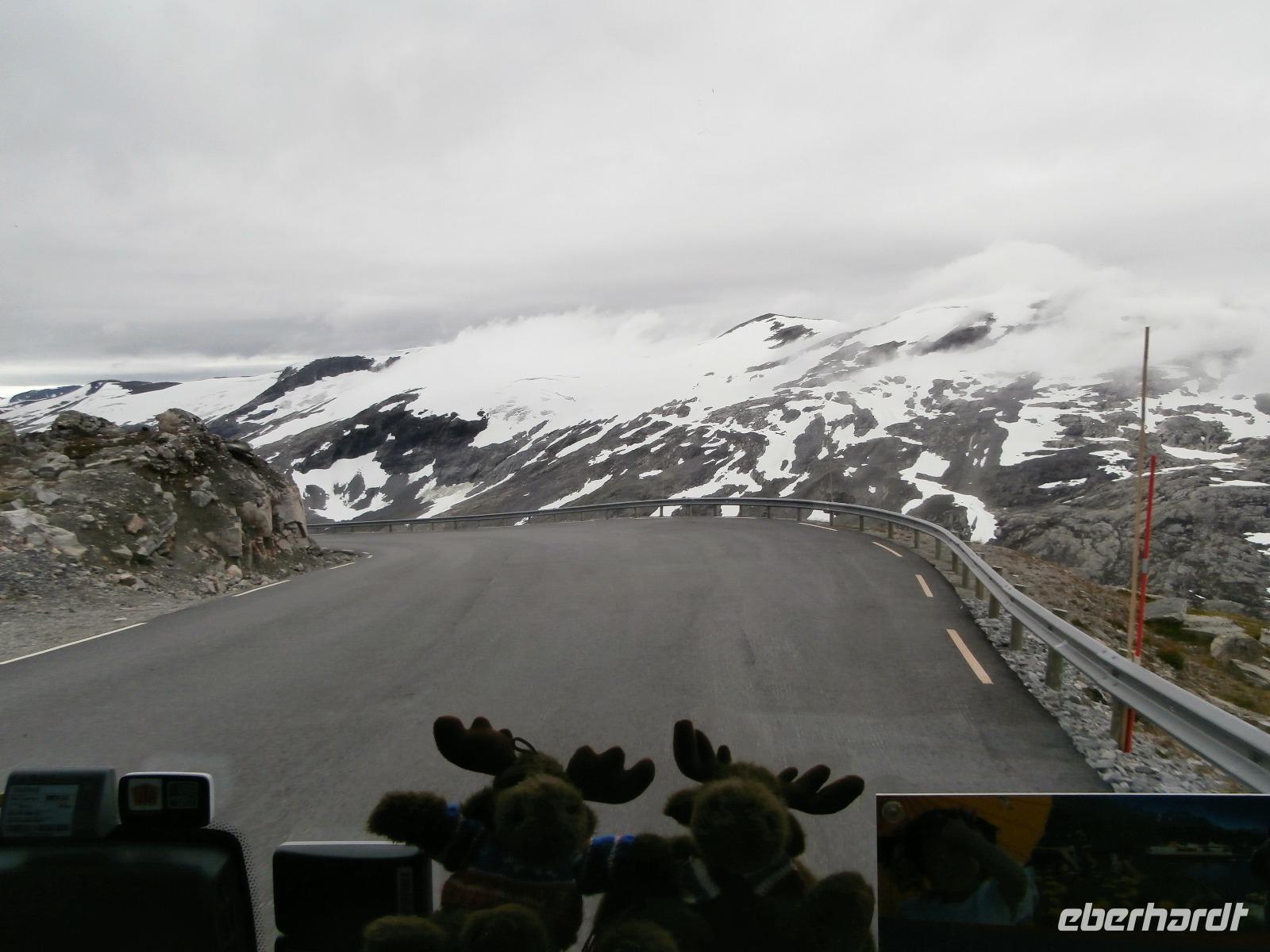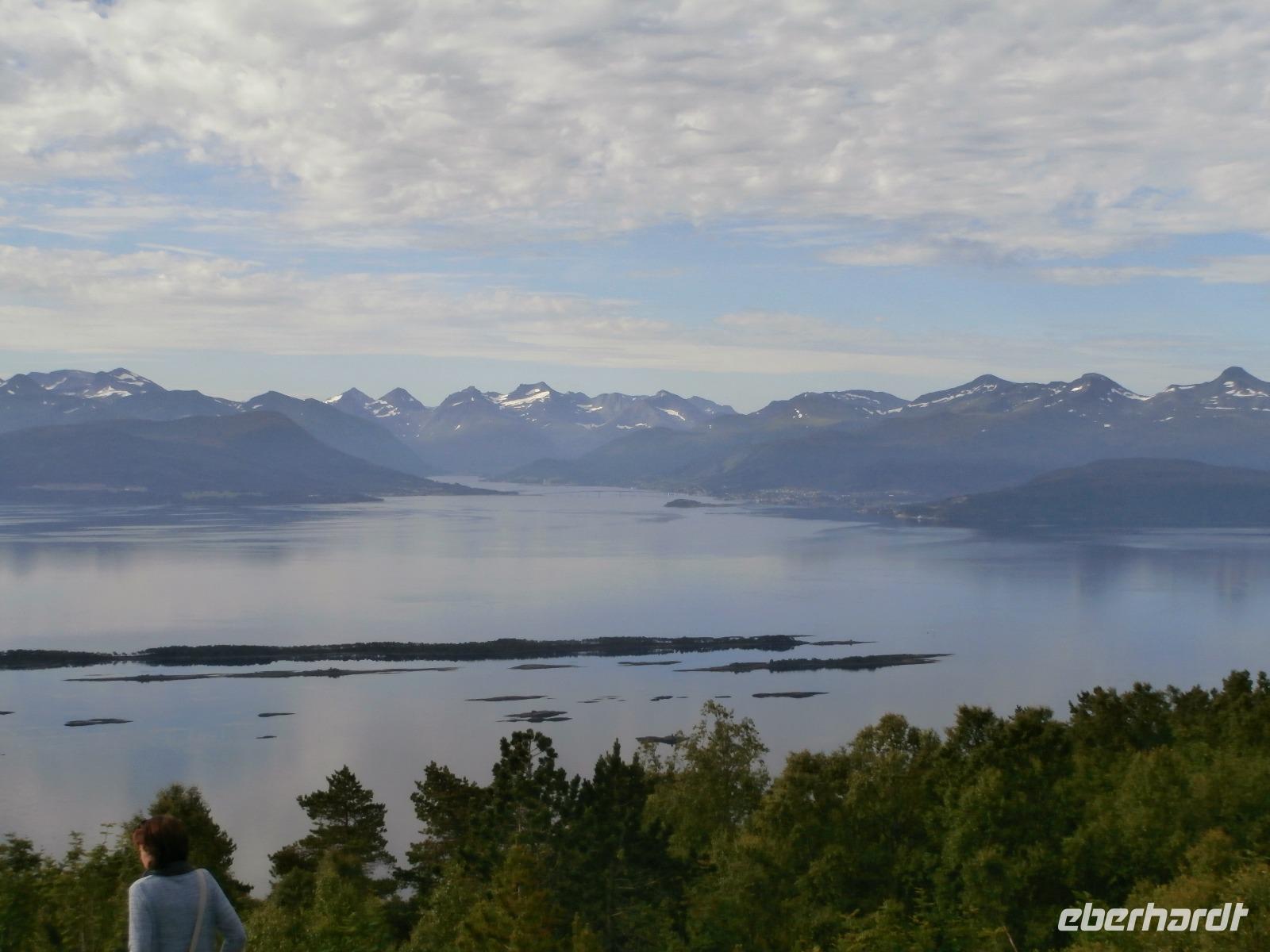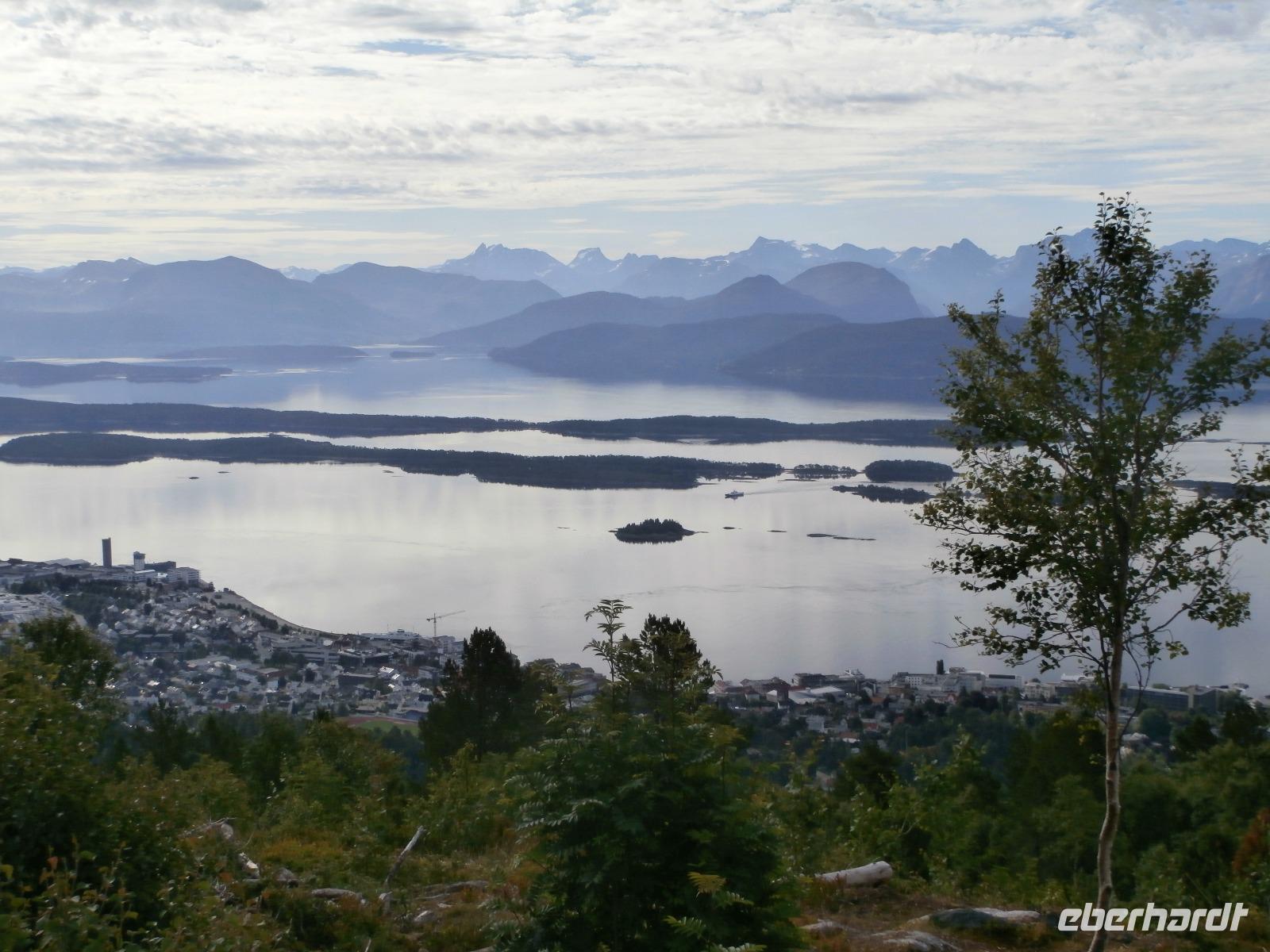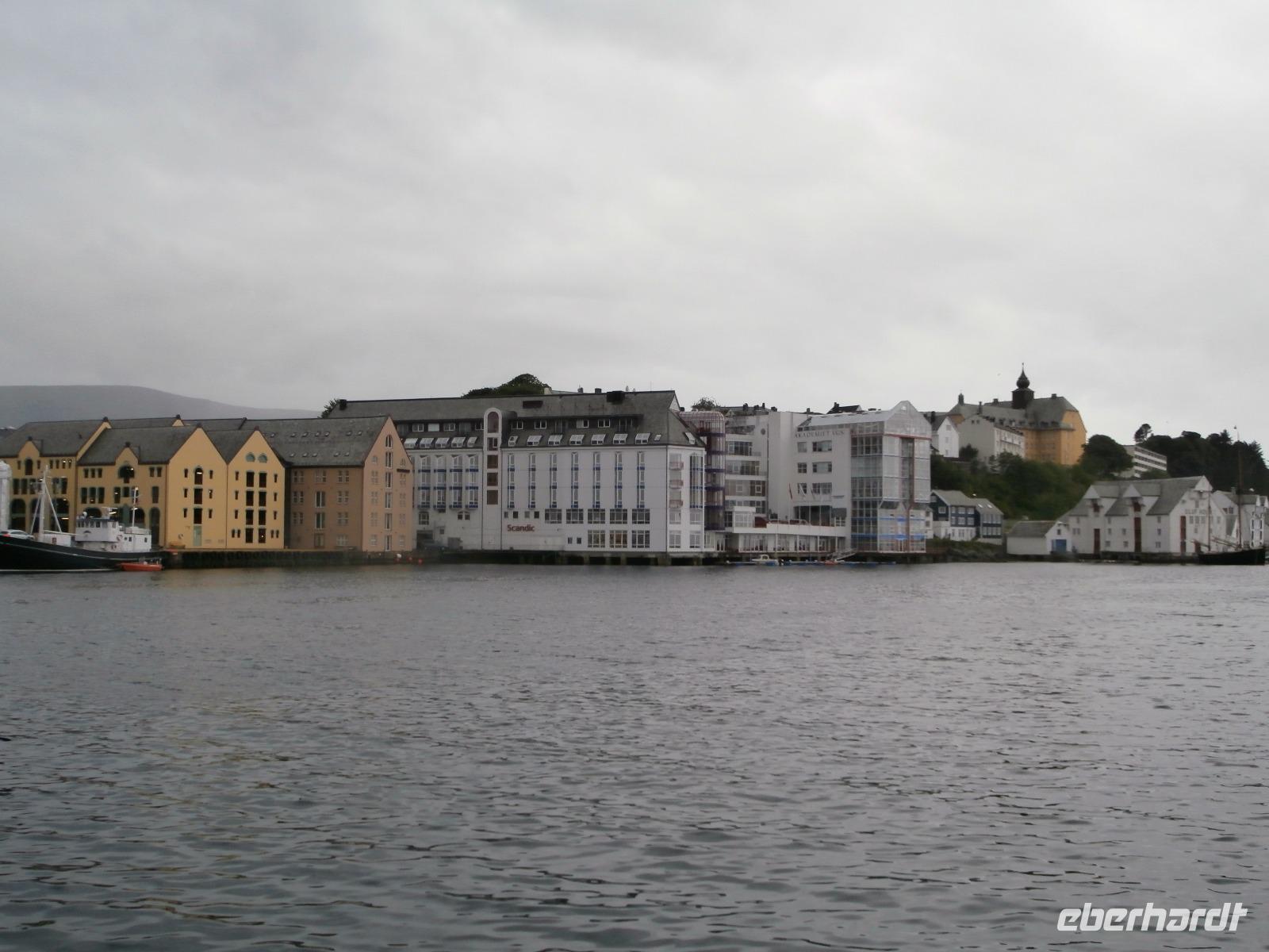 Gute Sicht und angenehm warm, so starten wir zuversichtlich in den neuen Tag. Nach einem guten Frühstück verstauen wir wieder unsere Koffer im Bus und auf geht die Fahrt hinauf zum Varden, den Hausberg von Molde. Herrliche Ausblicke in das Gebiet der Romsdalsalpen und auf Molde können wir genießen und im Bild festhalten. Am heutigen Tag haben wir auch eine kurze Fährüberfahrt von Sølsnes nach Afarnes, ein ganz neues Erlebnis für unsere Reisegäste. Das Erklimmen der "Trollstigen" ist unser nächster Höhepunkt. Vorbei an Andalsnes, hier ist der Endpunkt der Raumabahn, die eine der schönsten Eisenbahnstrecken Norwegens ist. An der Trollwand legen wir einen Fotostopp ein. Danach machen wir uns auf den Weg, die von hohen Gipfeln und tiefen Schluchten umgebene Bergstraße Trollstige, die ihren Namen von der Volkssage um die dort "hausenden Trolle" erhalten hat, zu erkunden. Die 11 Haarnadelkurven überwinden wir mit Hochachtung vor der Fahrkunst unseres Fahrers Falk. Auf dem Plateau ist gute Sicht in das Tal und in die Wassermassen des Trollstigfossen. Weiter geht die Fahrt durch das Meierdal, wir sehen noch ein wenig Schnee und vorbei am Canyon Gudbrandsjuvet, hier machen wir wieder Halt für Fotos. Danach geht es hinunter ins romantische Valldal, ins Zentrum des Erdbeeranbaus und hier ist die Ernte voll im Gange. Sie schmecken lecker, die eingekauften Erdbeeren. Dann kommen wir an den großartigen Taffjord, der ein Seitenarm des Storfjordes ist. Unsere Ankunft in Alesund ist heute nicht so spät und so nutzen die Gäste die Freizeit zum Erkunden der Fischereihauptstadt im Jugendstil, sie ist 1904 bei einem großen Brand fast völlig zerstört wurden. Leider setzt Regen ein und so macht das Erkunden dieser schönen Stadt weniger Spaß. 217 km