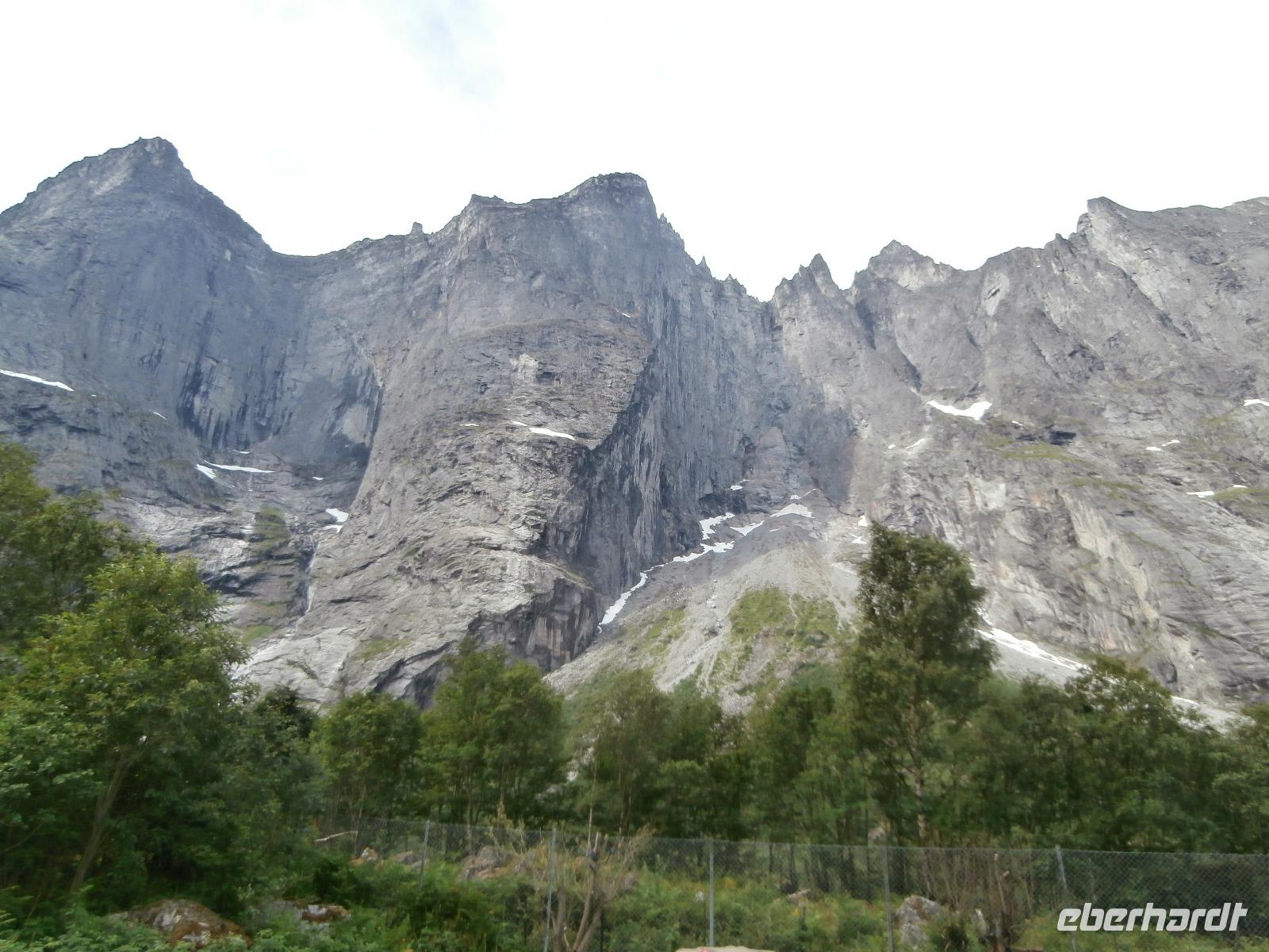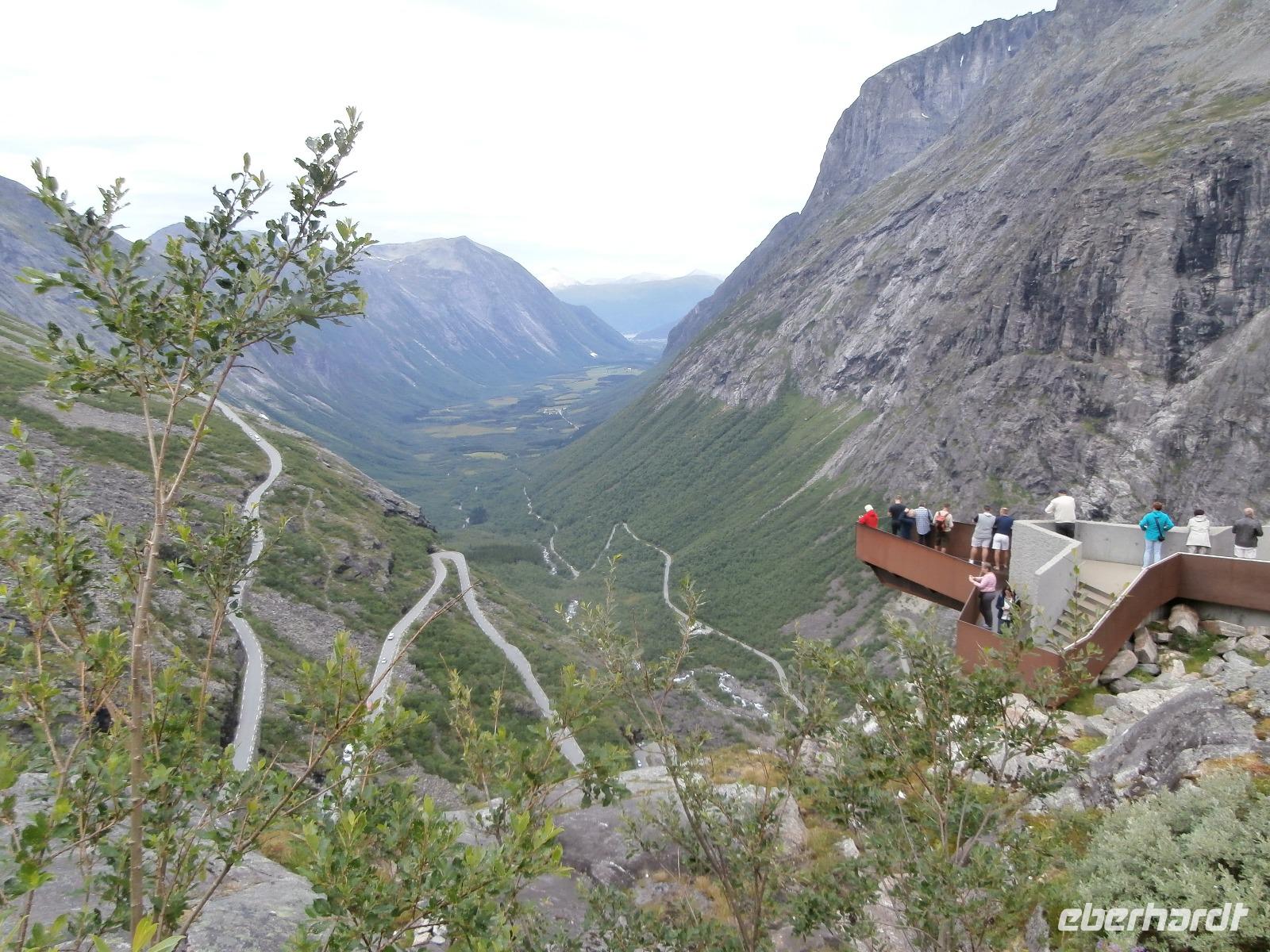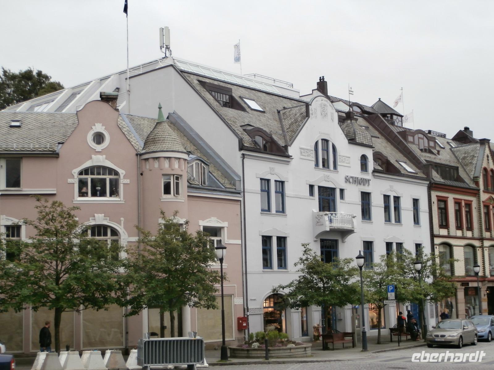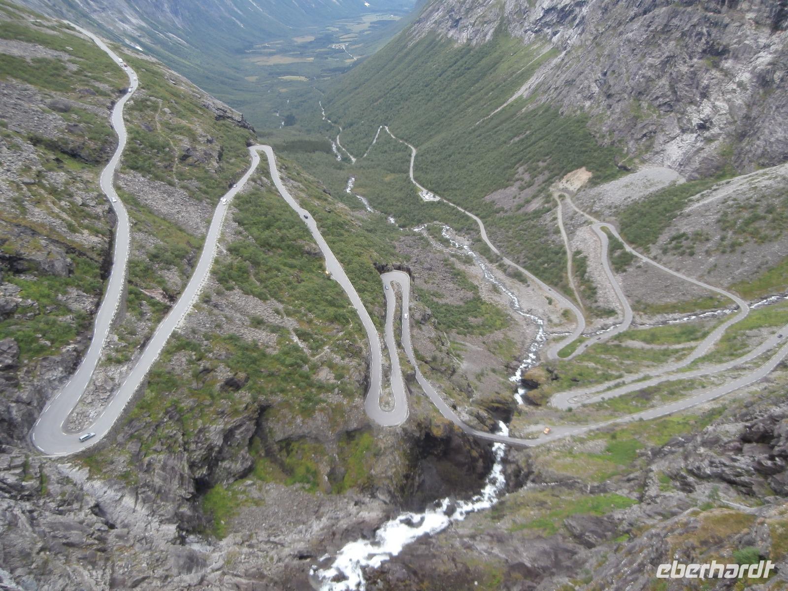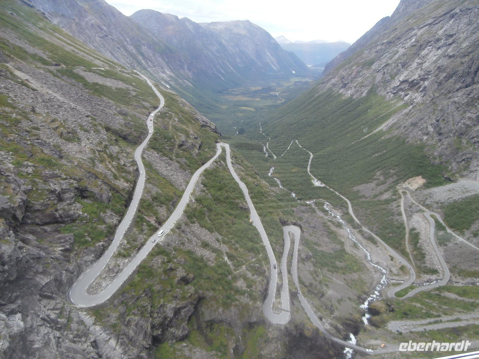 Gute Sicht und angenehm warm, so starten wir zuversichtlich in den neuen Tag. Nach einem guten Frühstück verstauen wir wieder unsere Koffer im Bus und auf geht die Fahrt hinauf zum Varden, den Hausberg von Molde. Herrliche Ausblicke in das Gebiet der Romsdalsalpen und auf Molde können wir genießen und im Bild festhalten. Am heutigen Tag haben wir auch eine kurze Fährüberfahrt von Sølsnes nach Afarnes, ein ganz neues Erlebnis für unsere Reisegäste. Das Erklimmen der "Trollstigen" ist unser nächster Höhepunkt. Vorbei an Andalsnes, hier ist der Endpunkt der Raumabahn, die eine der schönsten Eisenbahnstrecken Norwegens ist. An der Trollwand legen wir einen Fotostopp ein. Danach machen wir uns auf den Weg, die von hohen Gipfeln und tiefen Schluchten umgebene Bergstraße Trollstige, die ihren Namen von der Volkssage um die dort "hausenden Trolle" erhalten hat, zu erkunden. Die 11 Haarnadelkurven überwinden wir mit Hochachtung vor der Fahrkunst unseres Fahrers Falk. Auf dem Plateau ist gute Sicht in das Tal und in die Wassermassen des Trollstigfossen. Weiter geht die Fahrt durch das Meierdal, wir sehen noch ein wenig Schnee und vorbei am Canyon Gudbrandsjuvet, hier machen wir wieder Halt für Fotos. Danach geht es hinunter ins romantische Valldal, ins Zentrum des Erdbeeranbaus und hier ist die Ernte voll im Gange. Sie schmecken lecker, die eingekauften Erdbeeren. Dann kommen wir an den großartigen Taffjord, der ein Seitenarm des Storfjordes ist. Unsere Ankunft in Alesund ist heute nicht so spät und so nutzen die Gäste die Freizeit zum Erkunden der Fischereihauptstadt im Jugendstil, sie ist 1904 bei einem großen Brand fast völlig zerstört wurden. Leider setzt Regen ein und so macht das Erkunden dieser schönen Stadt weniger Spaß. 217 km