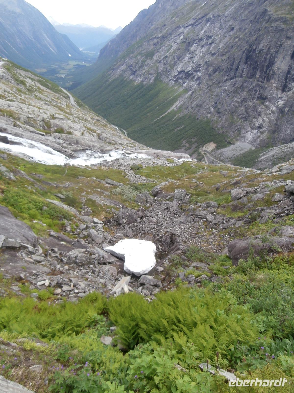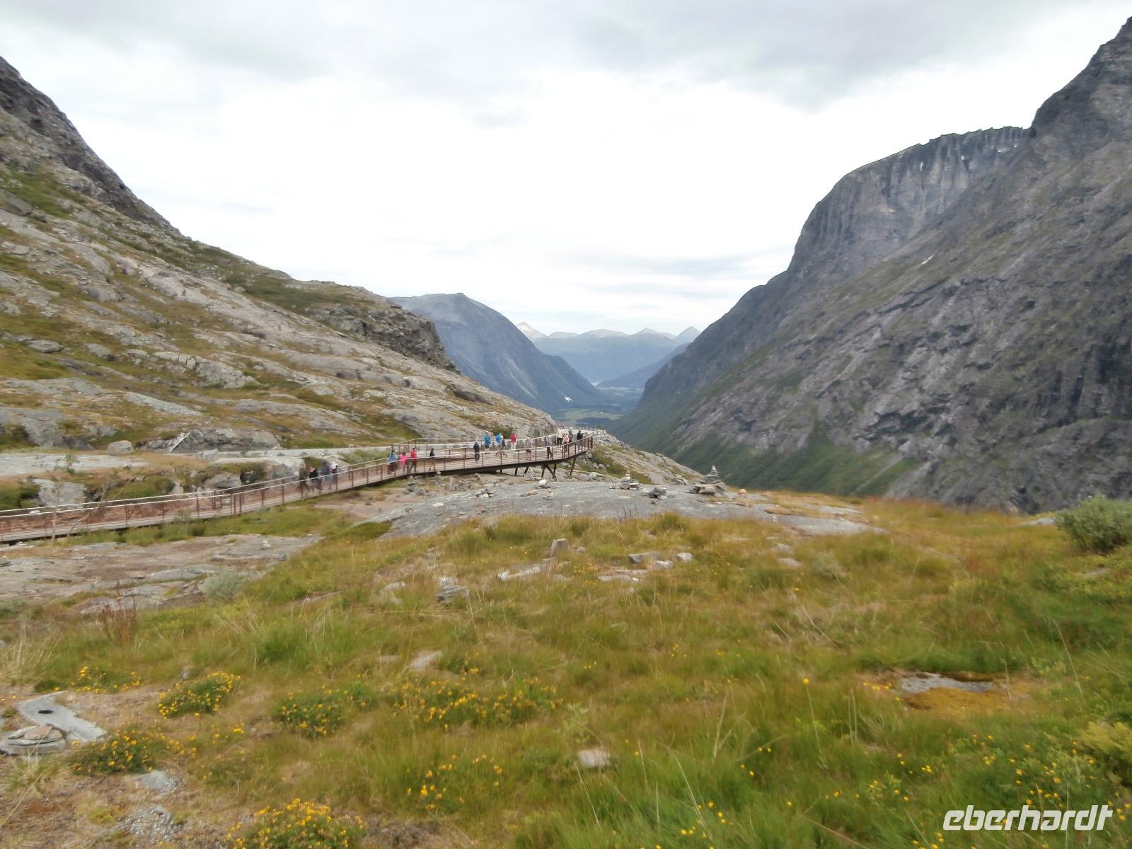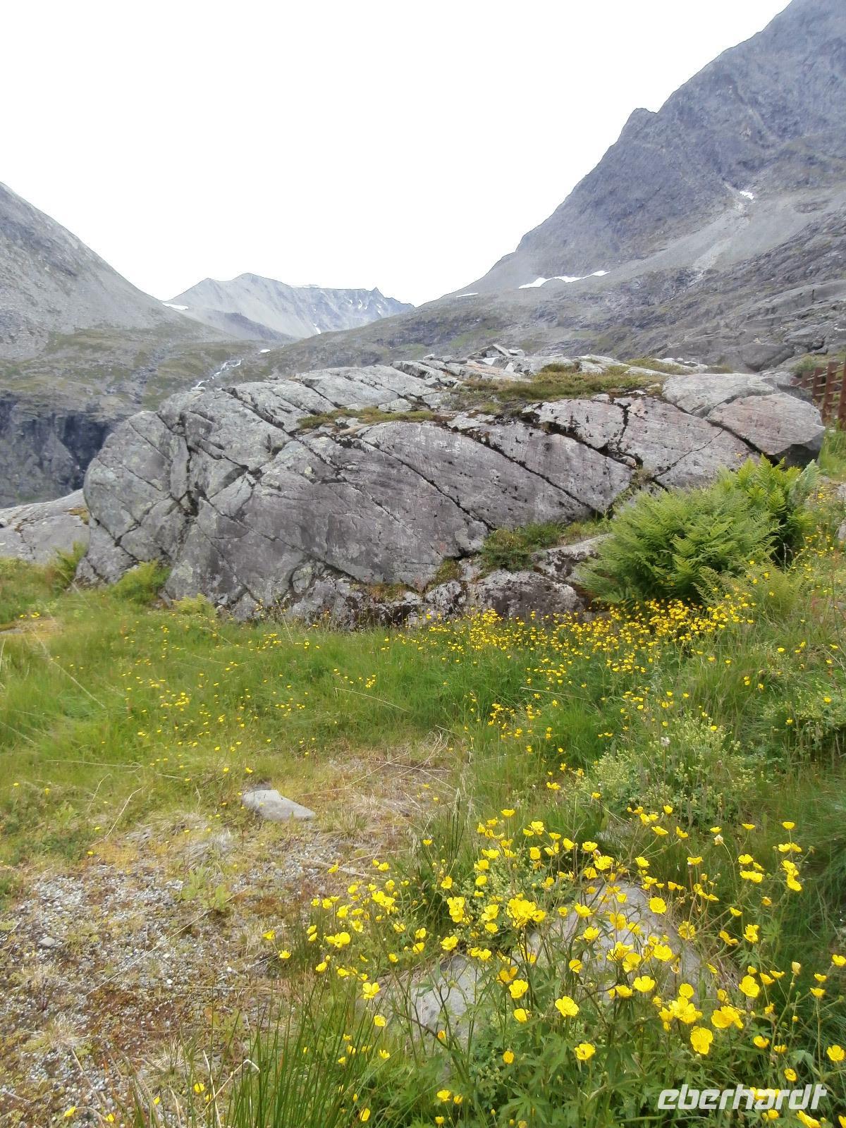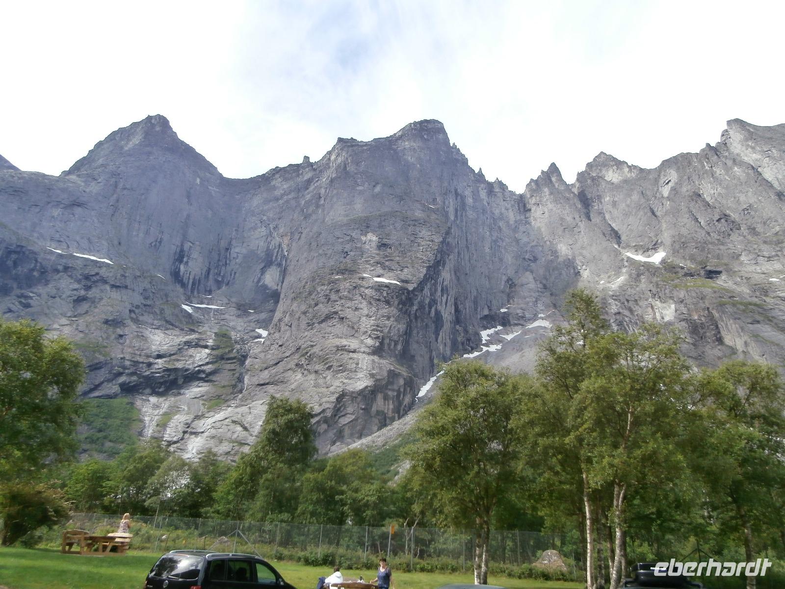 Gute Sicht und angenehm warm, so starten wir zuversichtlich in den neuen Tag. Nach einem guten Frühstück verstauen wir wieder unsere Koffer im Bus und auf geht die Fahrt hinauf zum Varden, den Hausberg von Molde. Herrliche Ausblicke in das Gebiet der Romsdalsalpen und auf Molde können wir genießen und im Bild festhalten. Am heutigen Tag haben wir auch eine kurze Fährüberfahrt von Sølsnes nach Afarnes, ein ganz neues Erlebnis für unsere Reisegäste. Das Erklimmen der "Trollstigen" ist unser nächster Höhepunkt. Vorbei an Andalsnes, hier ist der Endpunkt der Raumabahn, die eine der schönsten Eisenbahnstrecken Norwegens ist. An der Trollwand legen wir einen Fotostopp ein. Danach machen wir uns auf den Weg, die von hohen Gipfeln und tiefen Schluchten umgebene Bergstraße Trollstige, die ihren Namen von der Volkssage um die dort "hausenden Trolle" erhalten hat, zu erkunden. Die 11 Haarnadelkurven überwinden wir mit Hochachtung vor der Fahrkunst unseres Fahrers Falk. Auf dem Plateau ist gute Sicht in das Tal und in die Wassermassen des Trollstigfossen. Weiter geht die Fahrt durch das Meierdal, wir sehen noch ein wenig Schnee und vorbei am Canyon Gudbrandsjuvet, hier machen wir wieder Halt für Fotos. Danach geht es hinunter ins romantische Valldal, ins Zentrum des Erdbeeranbaus und hier ist die Ernte voll im Gange. Sie schmecken lecker, die eingekauften Erdbeeren. Dann kommen wir an den großartigen Taffjord, der ein Seitenarm des Storfjordes ist. Unsere Ankunft in Alesund ist heute nicht so spät und so nutzen die Gäste die Freizeit zum Erkunden der Fischereihauptstadt im Jugendstil, sie ist 1904 bei einem großen Brand fast völlig zerstört wurden. Leider setzt Regen ein und so macht das Erkunden dieser schönen Stadt weniger Spaß. 217 km