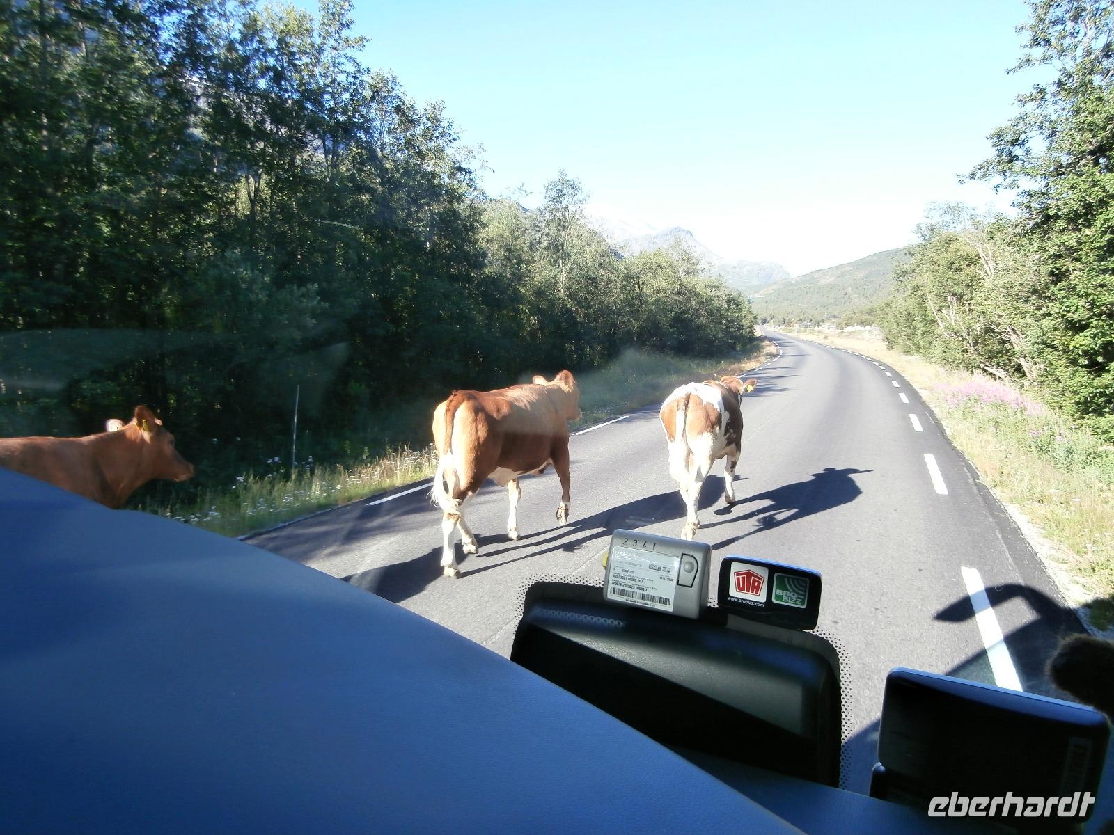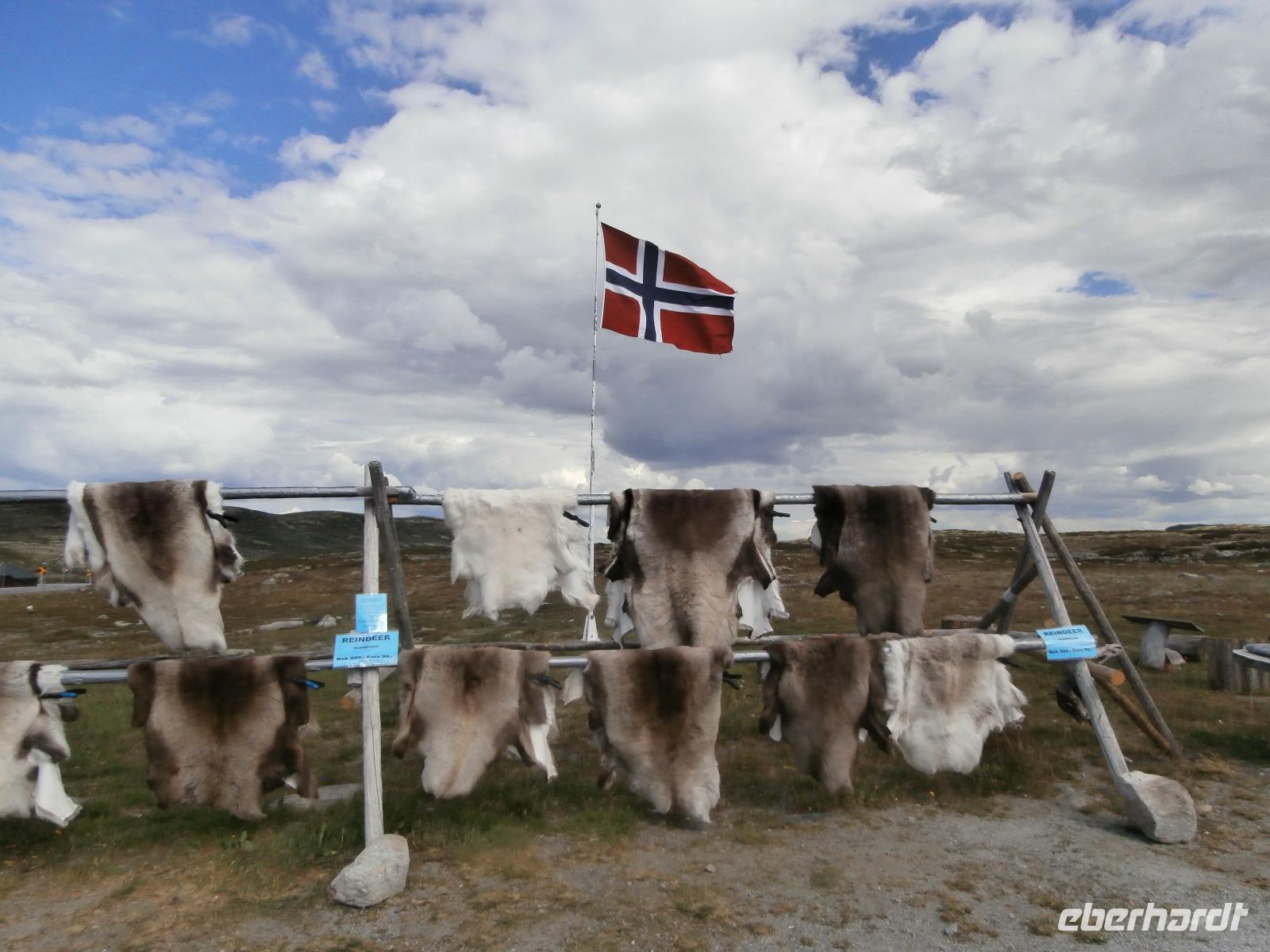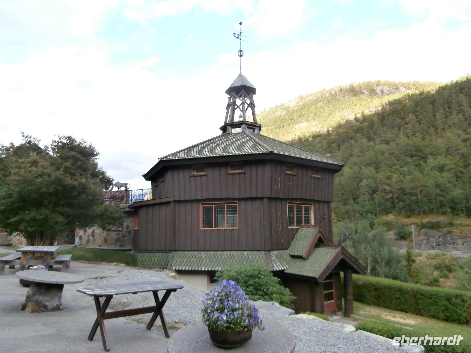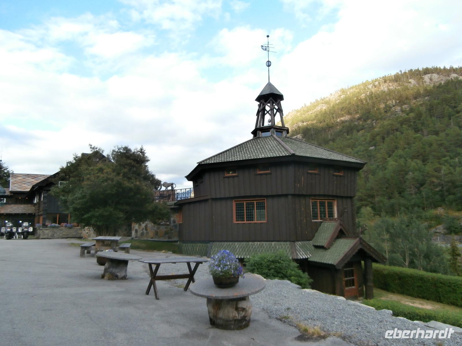 Unser Tagesprogramm startet bewölkt und regnerisch. Wir haben als Erstes eine kurze Fährüberfahrt von Magerholm nach Ørsneset. Sonne und etwas Blau am Himmel, schön ist unsere Fahrt mit Blick in teilweise sichtbar werdende Berge und so erreichen wir Hellesylt. Der Start für die Kreuzfahrt auf dem Geirangerfjord steht als Höhepunkt auf dem Programm. Mit Sonne und fast windstill beginnen wir die Minikreuzfahrt im Geirangerfjord. Er zählt wohl zu den schönsten und meistbesuchten Fjorden mit bis zu 800 Meter hohen Felswänden zu beiden Seiten und den in die Tiefe tosenden Wasserfällen mit Namen "Die sieben Schwestern" oder "Der Freier". In Geiranger verlassen wir die Fähre und hier liegen zwei Kreuzfahrtschiffe im Hafen. In mächtigen Spitzkehren mit einigen Bussen im Gegenverkehr schrauben wir uns durch das Bergmassiv. Bei einem Fotostopp weit oberhalb vom Geirangerfjord genießen wir atemberaubende Blicke in den smaragdgrünen Fjord, auf die Adlerstraße und die Kreuzfahrtschiffe. Unsere Fahrt geht immer weiter auf der im Jahre 1885 fertiggestellten Straße RV 63 mit 8% Steigung, 20 engen Kehren und 1000m Höhenunterschied. Es wird auf der ca. 17 km langen Strecke vom Fjord wegführend rauer, ein mit etwas Schnee durchsetztes Gebirgsklima empfängt uns in der Höhe. An der Djupvathytta auf 1038m verweilen wir, unser Mittagessen aus dem Bus lassen wir uns hier schmecken. Der Blick auf den gleichnamigen See ist sehr schön. Bei schönem Wetter laden wir unsere Gäste zur Fahrt auf der mautpflichtigen Passstraße zum Dalsnibba ein. Teilweise geben die Wolken den Blick auf Berge und hinunter zum Geirangerfjord frei. Über Grotli, vorüber an einigen großen Seen, fahren wir durch das Ottadalen. Bei einem Picknick mit Rentier- und Elchsalami sowie Multe Marmelade und Knäckebrot und Kaviar begeistern wir unsere Gäste mit einheimischen Produkten. Einen Fotostopp in Dönfoss am Campingplatz mit Schwimmbad und der wilden Otta leisten wir uns bei angenehmen Temperaturen. Bis hinein nach Lom geht es nun, die Stabkirche besichtigen wir bei einer Führung. Lars gibt uns Einblicke in die einzigartige Holzbauweise mit liebevollen Details, wie z.B. die Drachenköpfe an den Giebeln, aber auch viel zur Geschichte erfahren wir von ihm. Von Lom weg fahren wir noch bis zum Elveseter Turisthotel. Hier wohnen wir heute fast wie im Museum. Mit viel Liebe haben die Besitzer wertvolle Gegenstände zusammengetragen und fabelhaft die Räume gestaltet. Eine alte Sagasäule steht am großen Platz und gibt Einblicke in die norwegische Geschichte. Heute ruhen wir am Busen der Natur, ein großer Bach fließt direkt am Hotel vorüber. 236 km