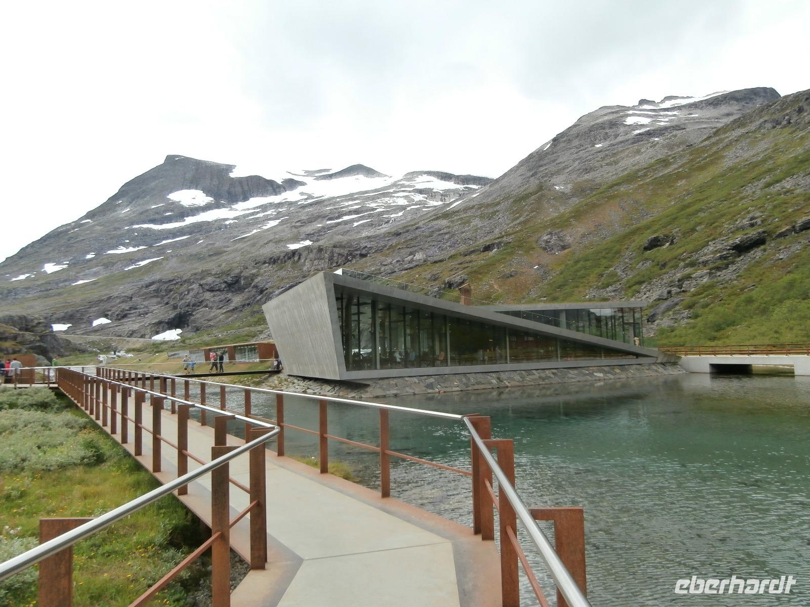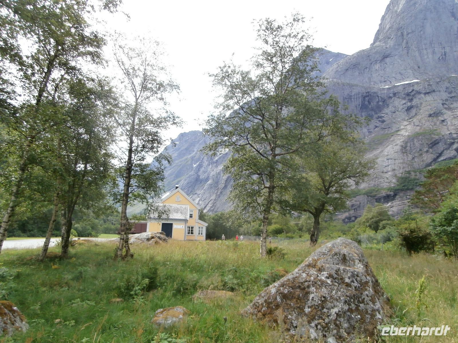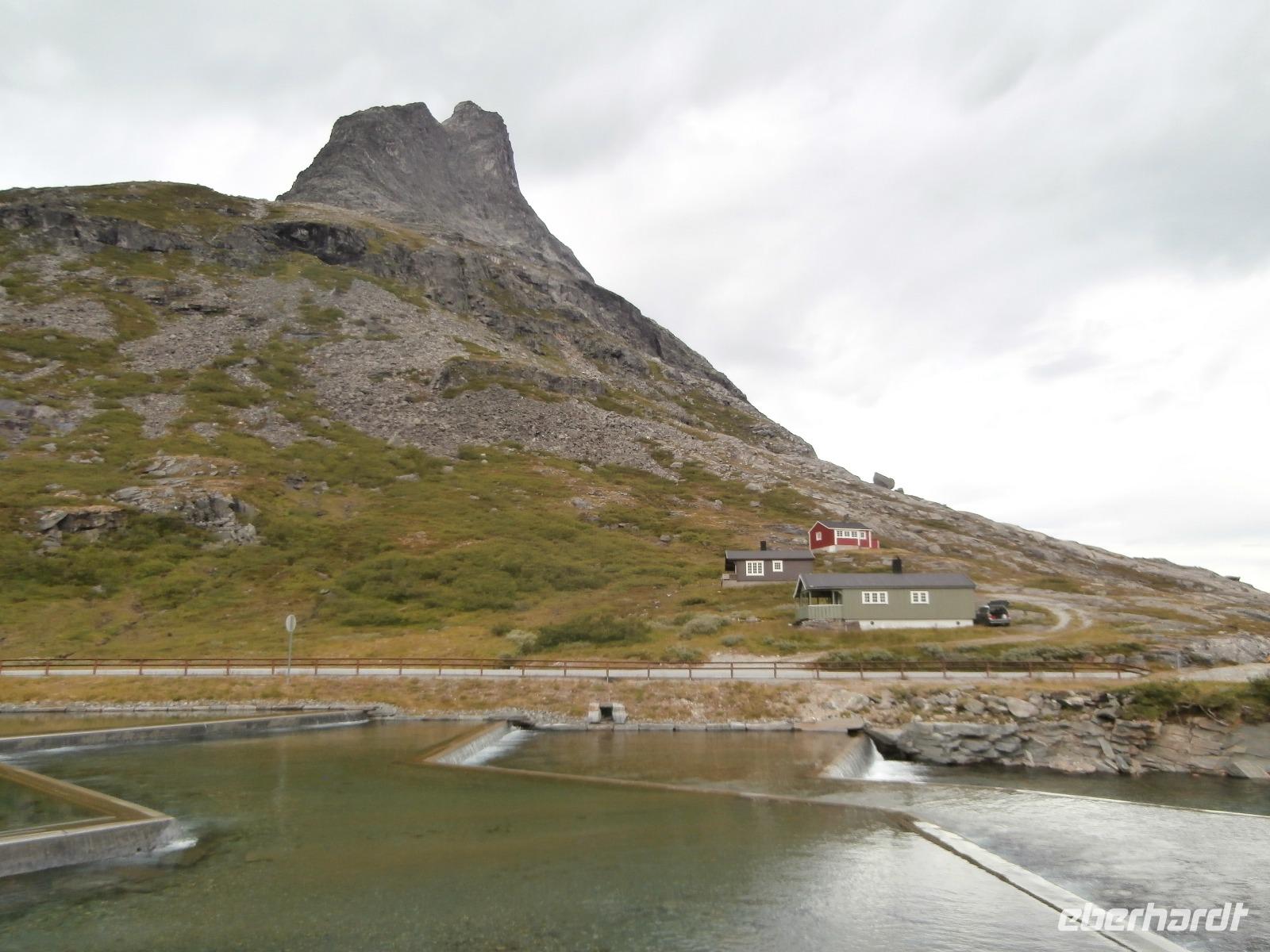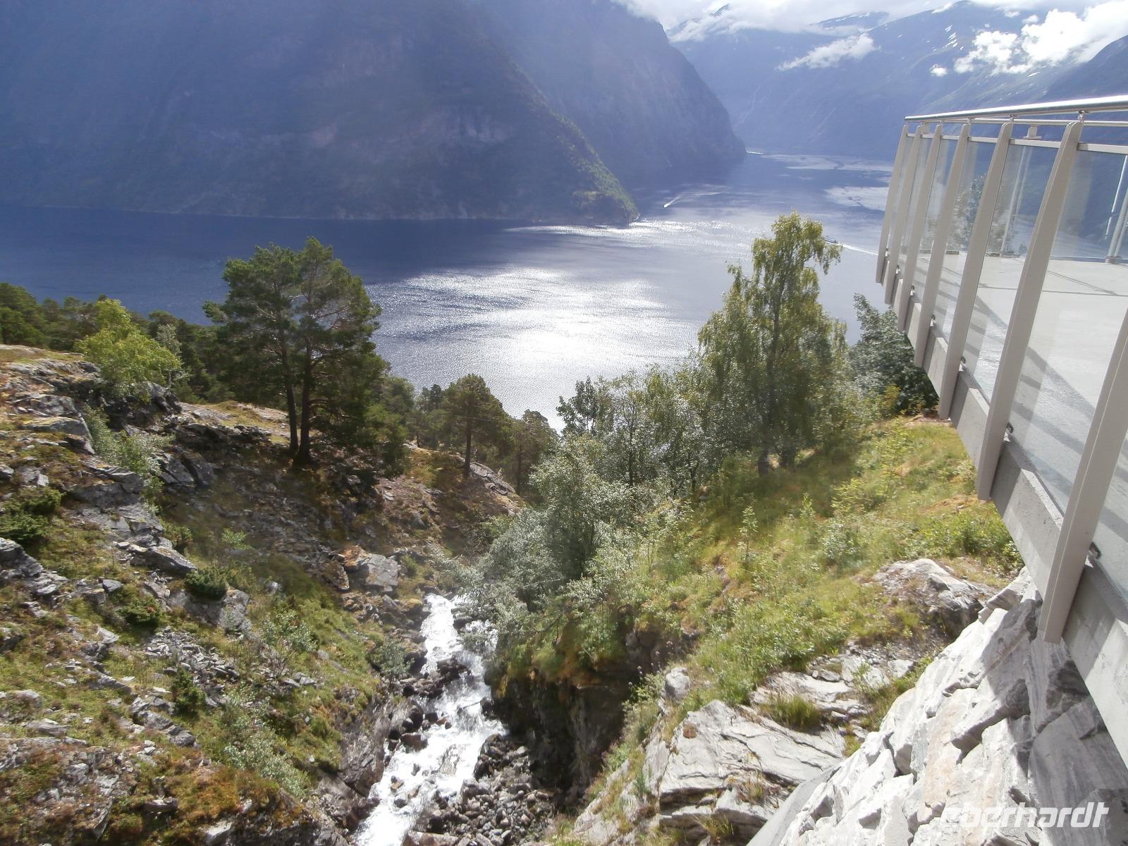 Unser Tagesprogramm startet bewölkt und regnerisch. Wir haben als Erstes eine kurze Fährüberfahrt von Magerholm nach Ørsneset. Sonne und etwas Blau am Himmel, schön ist unsere Fahrt mit Blick in teilweise sichtbar werdende Berge und so erreichen wir Hellesylt. Der Start für die Kreuzfahrt auf dem Geirangerfjord steht als Höhepunkt auf dem Programm. Mit Sonne und fast windstill beginnen wir die Minikreuzfahrt im Geirangerfjord. Er zählt wohl zu den schönsten und meistbesuchten Fjorden mit bis zu 800 Meter hohen Felswänden zu beiden Seiten und den in die Tiefe tosenden Wasserfällen mit Namen "Die sieben Schwestern" oder "Der Freier". In Geiranger verlassen wir die Fähre und hier liegen zwei Kreuzfahrtschiffe im Hafen. In mächtigen Spitzkehren mit einigen Bussen im Gegenverkehr schrauben wir uns durch das Bergmassiv. Bei einem Fotostopp weit oberhalb vom Geirangerfjord genießen wir atemberaubende Blicke in den smaragdgrünen Fjord, auf die Adlerstraße und die Kreuzfahrtschiffe. Unsere Fahrt geht immer weiter auf der im Jahre 1885 fertiggestellten Straße RV 63 mit 8% Steigung, 20 engen Kehren und 1000m Höhenunterschied. Es wird auf der ca. 17 km langen Strecke vom Fjord wegführend rauer, ein mit etwas Schnee durchsetztes Gebirgsklima empfängt uns in der Höhe. An der Djupvathytta auf 1038m verweilen wir, unser Mittagessen aus dem Bus lassen wir uns hier schmecken. Der Blick auf den gleichnamigen See ist sehr schön. Bei schönem Wetter laden wir unsere Gäste zur Fahrt auf der mautpflichtigen Passstraße zum Dalsnibba ein. Teilweise geben die Wolken den Blick auf Berge und hinunter zum Geirangerfjord frei. Über Grotli, vorüber an einigen großen Seen, fahren wir durch das Ottadalen. Bei einem Picknick mit Rentier- und Elchsalami sowie Multe Marmelade und Knäckebrot und Kaviar begeistern wir unsere Gäste mit einheimischen Produkten. Einen Fotostopp in Dönfoss am Campingplatz mit Schwimmbad und der wilden Otta leisten wir uns bei angenehmen Temperaturen. Bis hinein nach Lom geht es nun, die Stabkirche besichtigen wir bei einer Führung. Lars gibt uns Einblicke in die einzigartige Holzbauweise mit liebevollen Details, wie z.B. die Drachenköpfe an den Giebeln, aber auch viel zur Geschichte erfahren wir von ihm. Von Lom weg fahren wir noch bis zum Elveseter Turisthotel. Hier wohnen wir heute fast wie im Museum. Mit viel Liebe haben die Besitzer wertvolle Gegenstände zusammengetragen und fabelhaft die Räume gestaltet. Eine alte Sagasäule steht am großen Platz und gibt Einblicke in die norwegische Geschichte. Heute ruhen wir am Busen der Natur, ein großer Bach fließt direkt am Hotel vorüber. 236 km