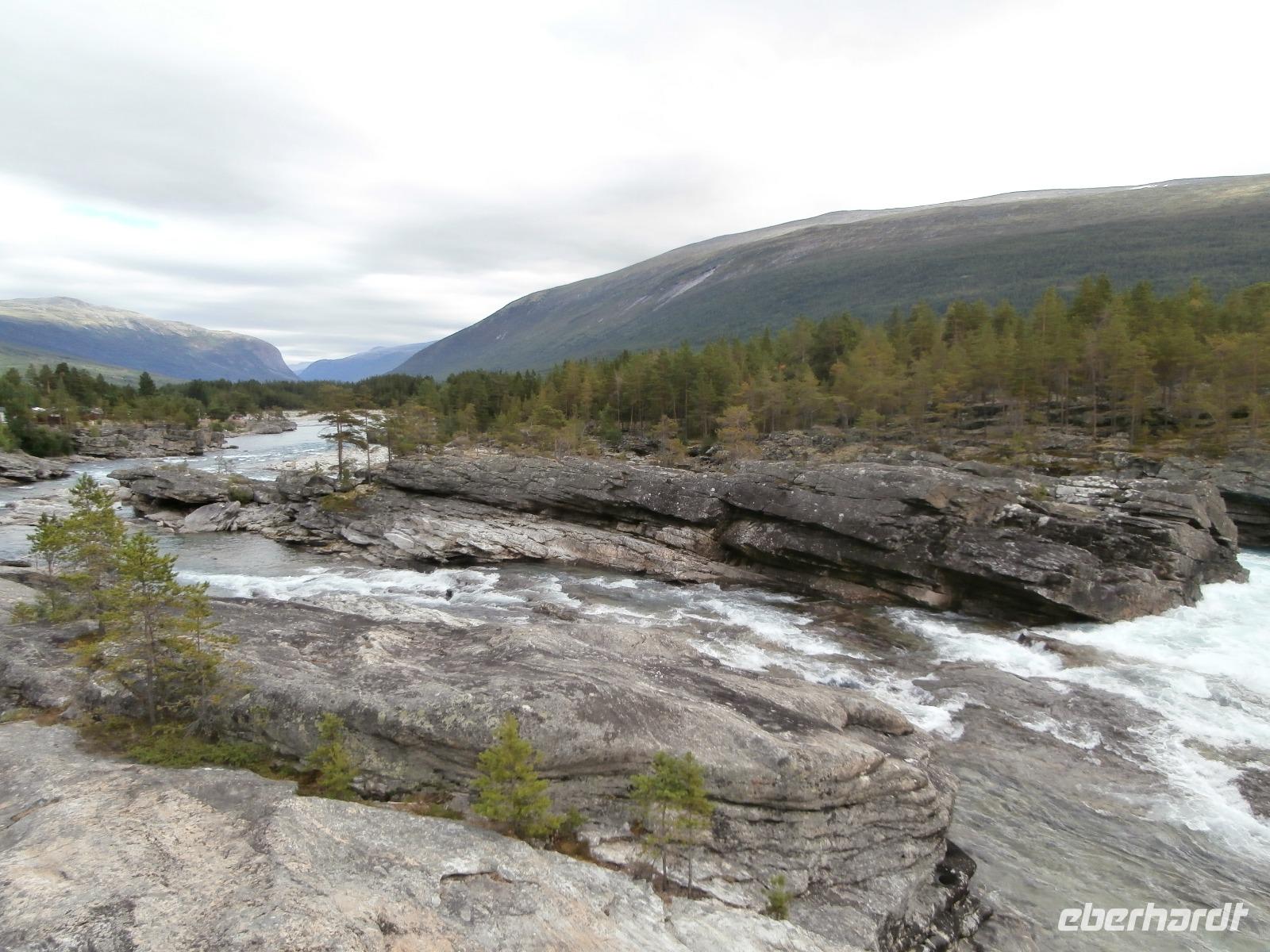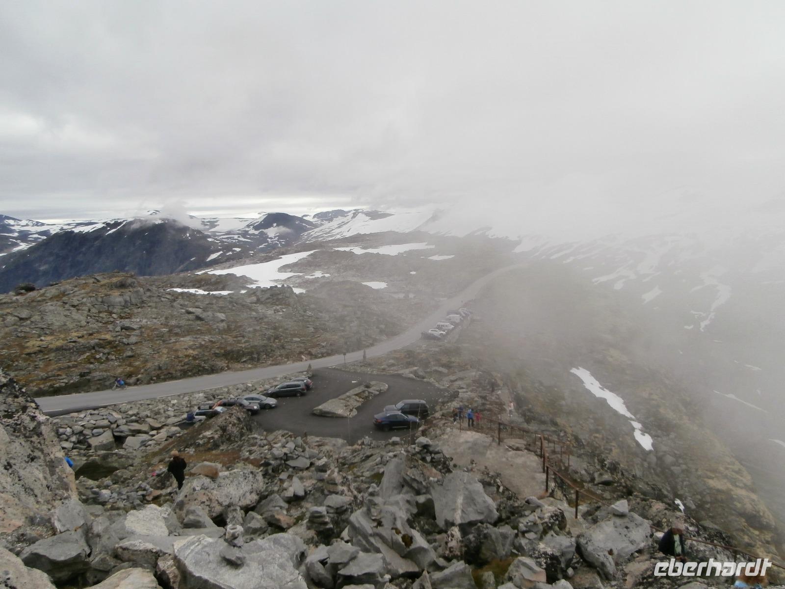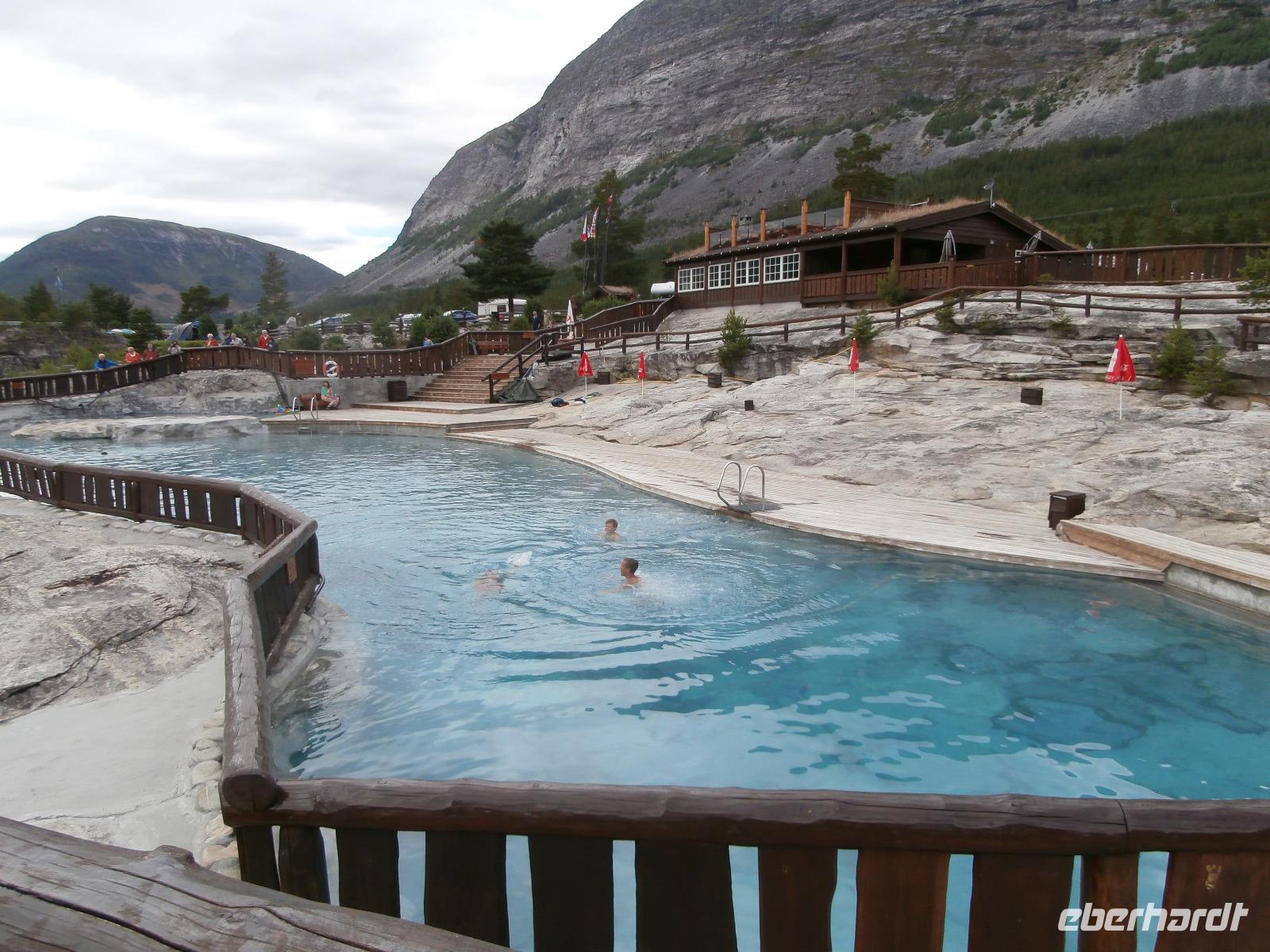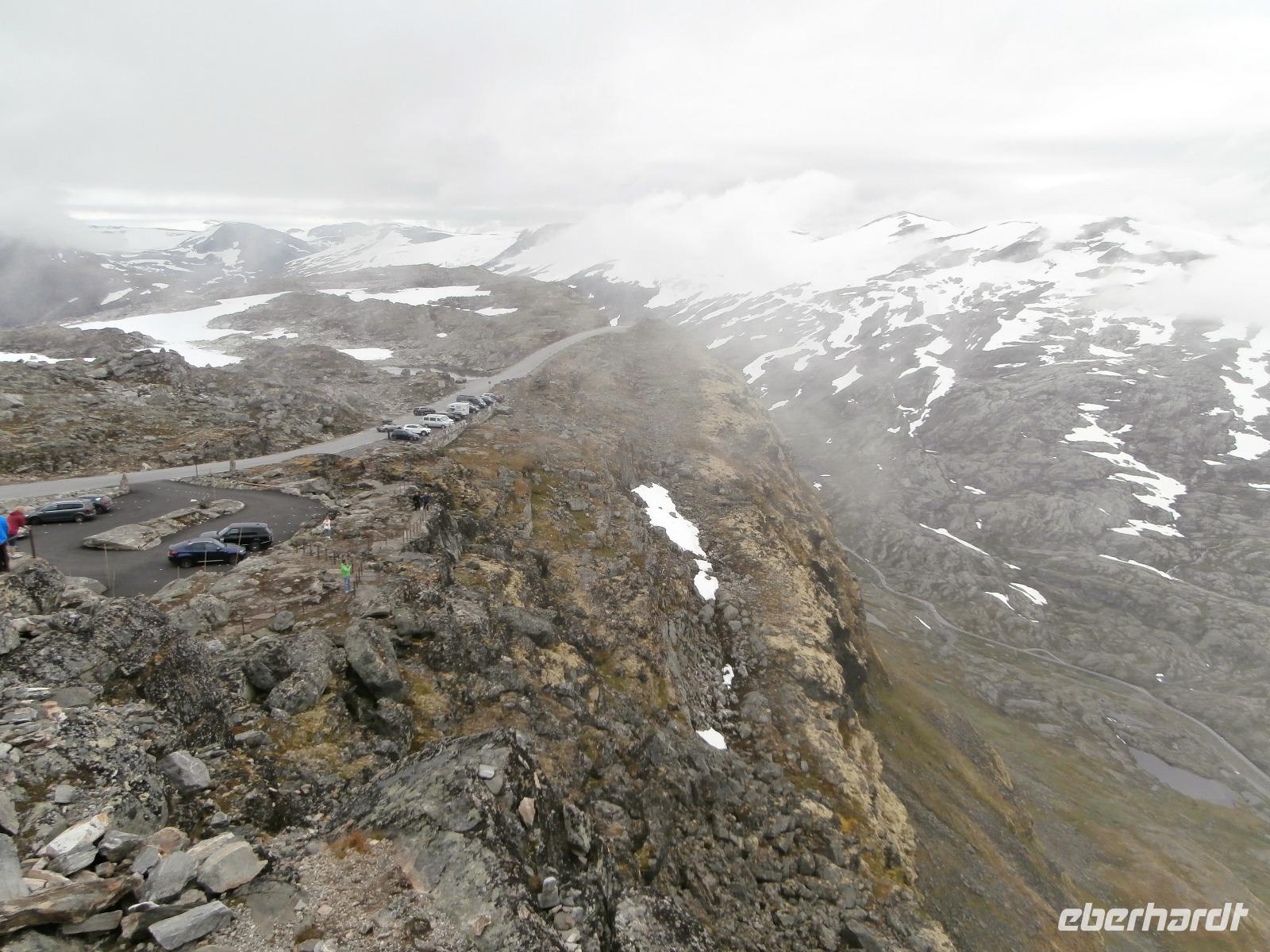 Unser Tagesprogramm startet bewölkt und regnerisch. Wir haben als Erstes eine kurze Fährüberfahrt von Magerholm nach Ørsneset. Sonne und etwas Blau am Himmel, schön ist unsere Fahrt mit Blick in teilweise sichtbar werdende Berge und so erreichen wir Hellesylt. Der Start für die Kreuzfahrt auf dem Geirangerfjord steht als Höhepunkt auf dem Programm. Mit Sonne und fast windstill beginnen wir die Minikreuzfahrt im Geirangerfjord. Er zählt wohl zu den schönsten und meistbesuchten Fjorden mit bis zu 800 Meter hohen Felswänden zu beiden Seiten und den in die Tiefe tosenden Wasserfällen mit Namen "Die sieben Schwestern" oder "Der Freier". In Geiranger verlassen wir die Fähre und hier liegen zwei Kreuzfahrtschiffe im Hafen. In mächtigen Spitzkehren mit einigen Bussen im Gegenverkehr schrauben wir uns durch das Bergmassiv. Bei einem Fotostopp weit oberhalb vom Geirangerfjord genießen wir atemberaubende Blicke in den smaragdgrünen Fjord, auf die Adlerstraße und die Kreuzfahrtschiffe. Unsere Fahrt geht immer weiter auf der im Jahre 1885 fertiggestellten Straße RV 63 mit 8% Steigung, 20 engen Kehren und 1000m Höhenunterschied. Es wird auf der ca. 17 km langen Strecke vom Fjord wegführend rauer, ein mit etwas Schnee durchsetztes Gebirgsklima empfängt uns in der Höhe. An der Djupvathytta auf 1038m verweilen wir, unser Mittagessen aus dem Bus lassen wir uns hier schmecken. Der Blick auf den gleichnamigen See ist sehr schön. Bei schönem Wetter laden wir unsere Gäste zur Fahrt auf der mautpflichtigen Passstraße zum Dalsnibba ein. Teilweise geben die Wolken den Blick auf Berge und hinunter zum Geirangerfjord frei. Über Grotli, vorüber an einigen großen Seen, fahren wir durch das Ottadalen. Bei einem Picknick mit Rentier- und Elchsalami sowie Multe Marmelade und Knäckebrot und Kaviar begeistern wir unsere Gäste mit einheimischen Produkten. Einen Fotostopp in Dönfoss am Campingplatz mit Schwimmbad und der wilden Otta leisten wir uns bei angenehmen Temperaturen. Bis hinein nach Lom geht es nun, die Stabkirche besichtigen wir bei einer Führung. Lars gibt uns Einblicke in die einzigartige Holzbauweise mit liebevollen Details, wie z.B. die Drachenköpfe an den Giebeln, aber auch viel zur Geschichte erfahren wir von ihm. Von Lom weg fahren wir noch bis zum Elveseter Turisthotel. Hier wohnen wir heute fast wie im Museum. Mit viel Liebe haben die Besitzer wertvolle Gegenstände zusammengetragen und fabelhaft die Räume gestaltet. Eine alte Sagasäule steht am großen Platz und gibt Einblicke in die norwegische Geschichte. Heute ruhen wir am Busen der Natur, ein großer Bach fließt direkt am Hotel vorüber. 236 km