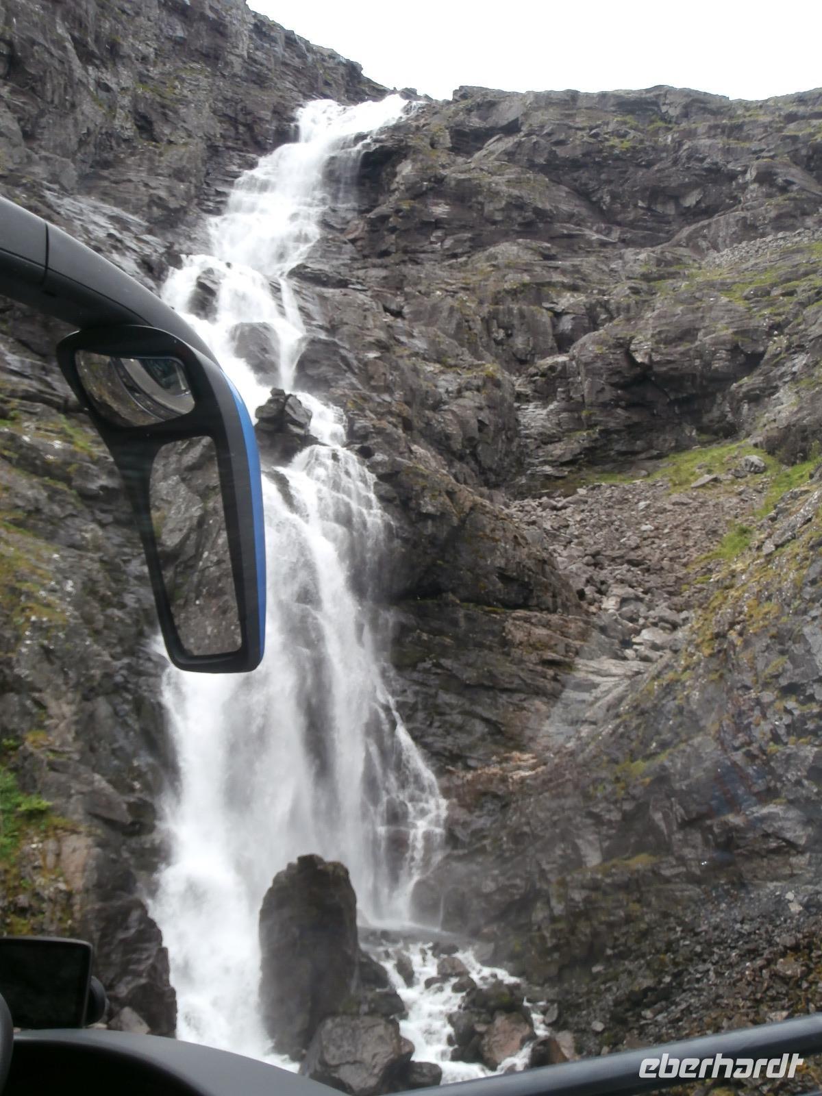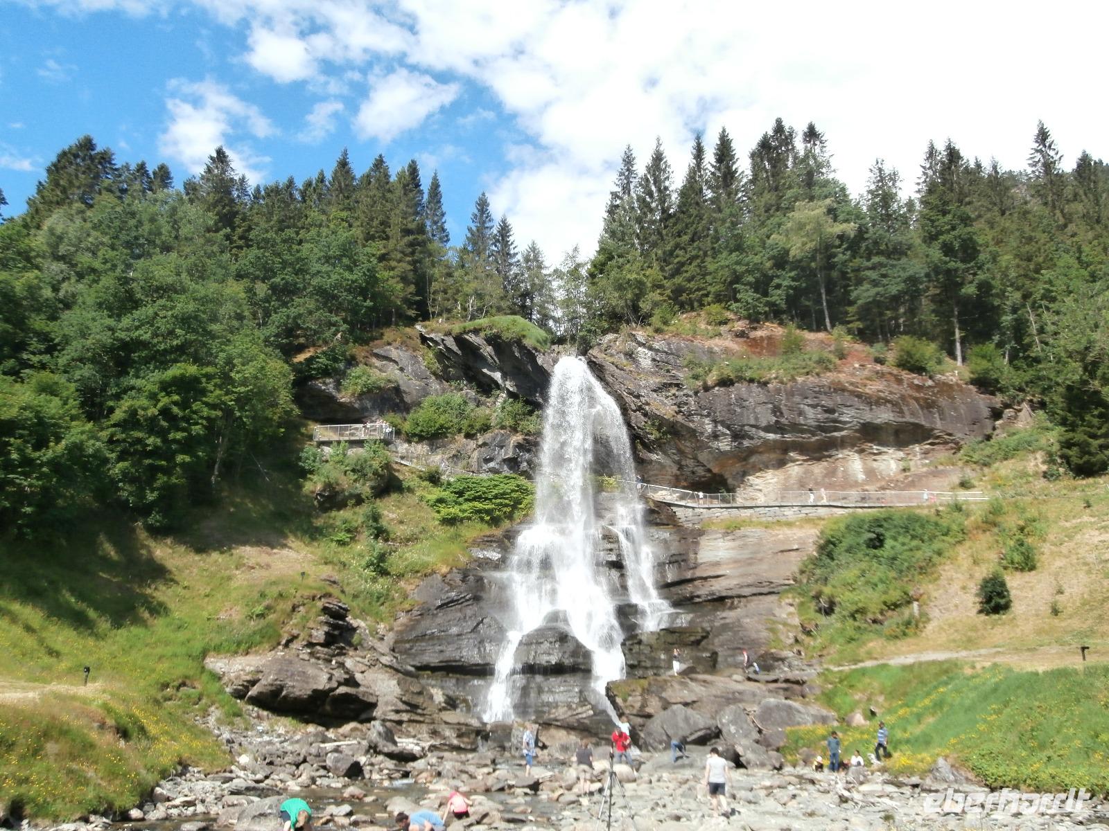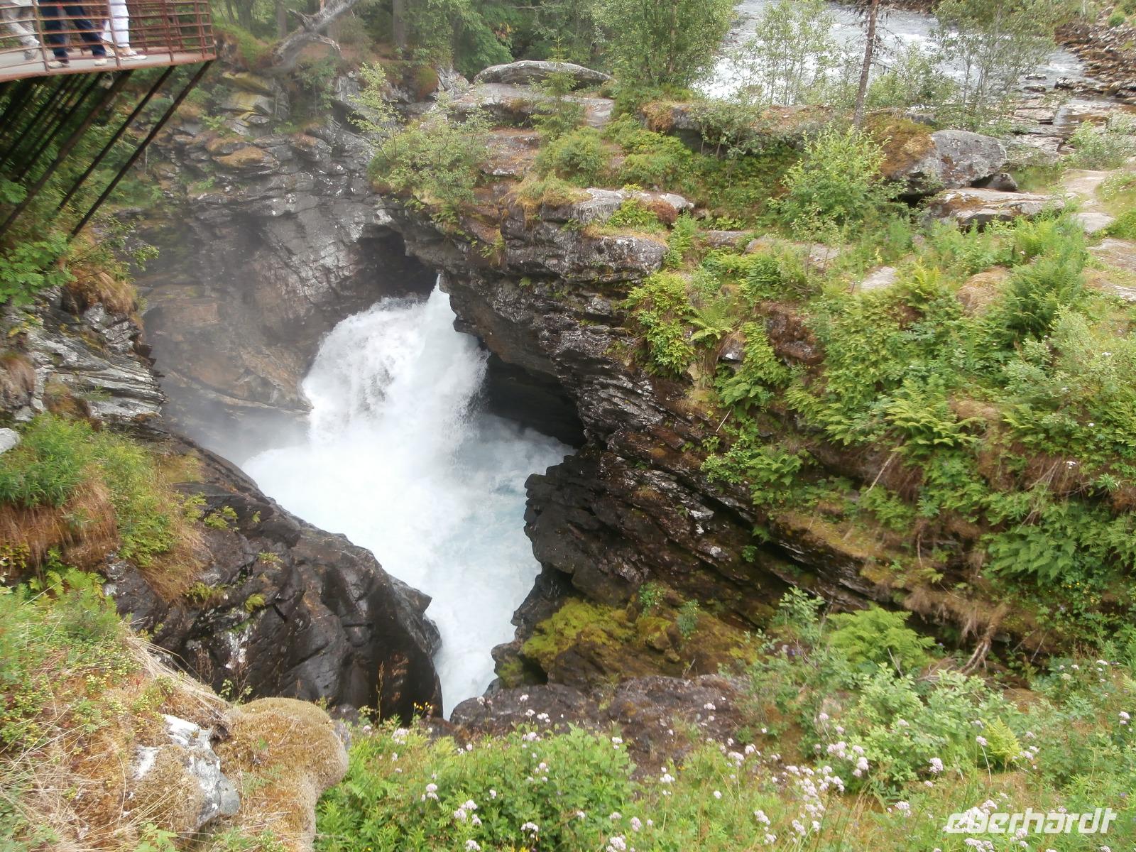 Mit unserem Reiseleiter Matthias Klemenc erleben wir heute Morgen die Stadtrundfahrt durch Bergen und die Führung im hanseatischen Viertel. Die Stadt ist fast schon südländisch geprägt, versprüht ein maritimes Flair-hier ist auch der Anfang der Linie der Hurtigruten und mit der Bergenbahn fährt man von hier bis in den Osten nach Oslo. Während der Hansezeit war sie die größte Stadt Skandinaviens. Die Freizeit in Bergen beenden wir bei Sonnenschein und Wärme, wir verlassen Bergen und setzen die Fahrt entlang des Hardangerfjordes fort. Am Steindalsfossen lassen wir unsere Gäste mal hinter einen Wasserfall schauen, die Legende sagt: Wer sich hier küsst, soll die ewige Liebe verspüren. Die Fahrt auf der Neuen Brücke über den Hardangerfjord bringt uns weg aus Fjordnorwegen bis hin zum Dach dieses Traumlandes. Wir schrauben uns in einem gewaltigen Tunnelsystem im Mabödalen nach oben und bei Sommerwetter und guten Sichtverhältnissen erleben wir heute den Wasserfall Vøringfossen, er ergießt sich in eine Schlucht, 182m im freien Fall. Die neue Zuführung zum Wasserfall ist fertig gebaut, ein fantastisches Besucher Plateau ist entstanden und der Blick zum Wasserfall gigantisch. Leichter Regenfall ist nur von kurzer Dauer. Die Straße Nr.7 bringt uns direkt durch das weite Gebiet der Hardangervidda, diese beeindruckende Hochebene präsentiert sich als eine seen- und moorreiche, fast baum-und strauchlose Fjell-Landschaft. Wir können heute den Gletscher Hardangerjokülen wunderbar sehen, Falk stoppt für ein tolles Foto extra den Bus. Am Samenshop schauen wir noch in die Hütte, hier hat es tolle Sachen. Zu kaufen gibt es Rentierfelle, Geweihe und auch tollen Silberschmuck. Durch Geilo-auch das "Zermatt Norwegens" genannt, fahren wir weiter nach Noresund. Im Sole Hotel Gjestegard übernachten wir ein letztes Mal in Norwegen. Am See Kröderen lassen wir bei angenehmen Temperaturen diesen langen Sommertag ausklingen. 418 km