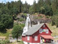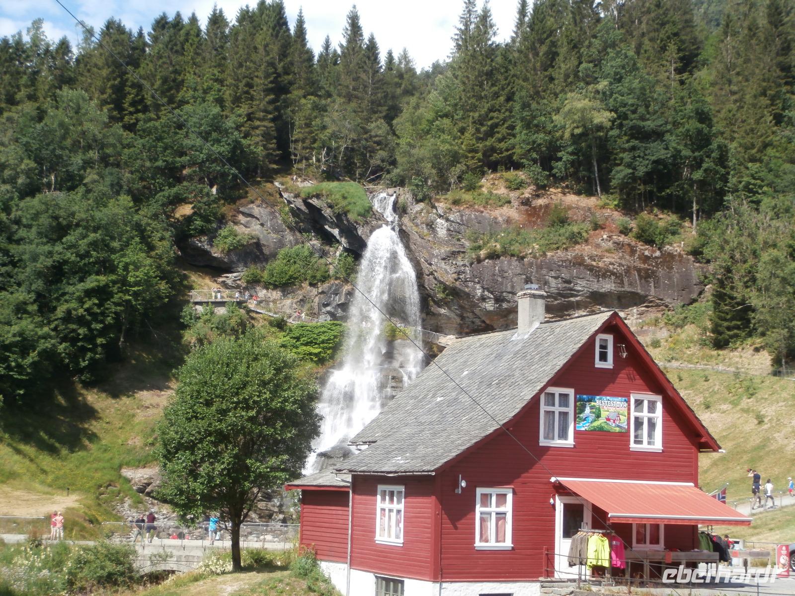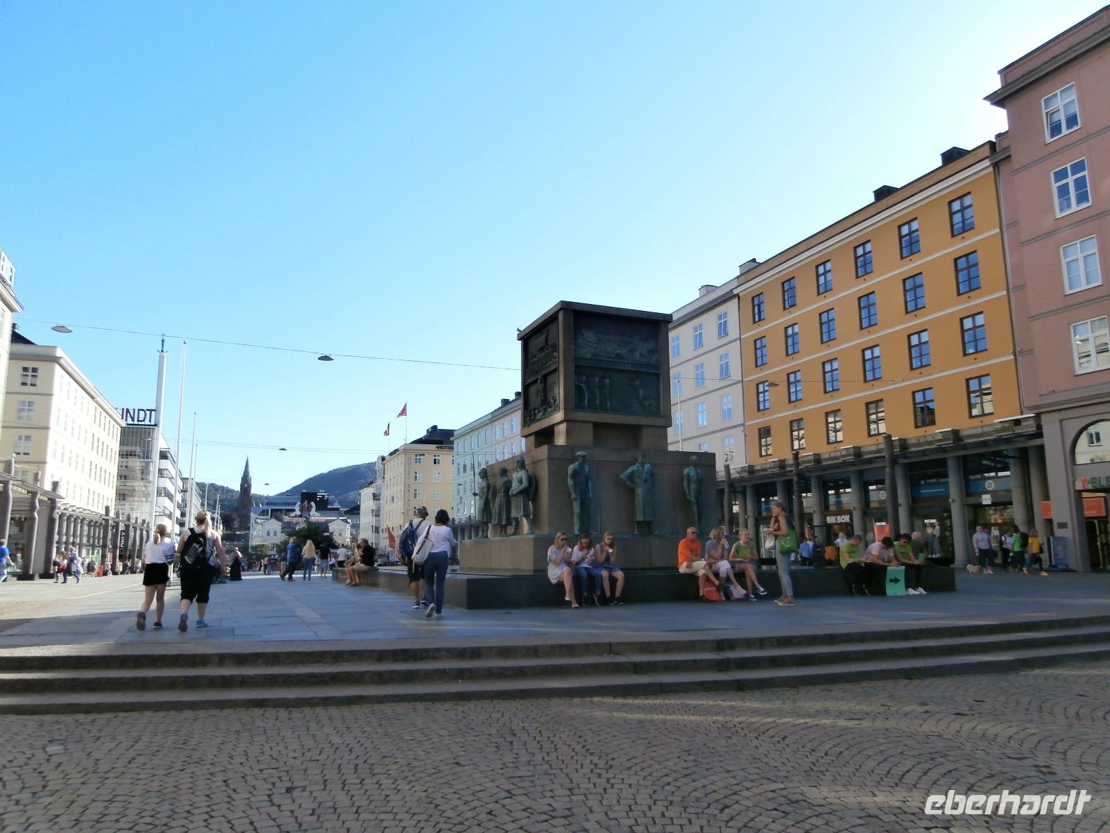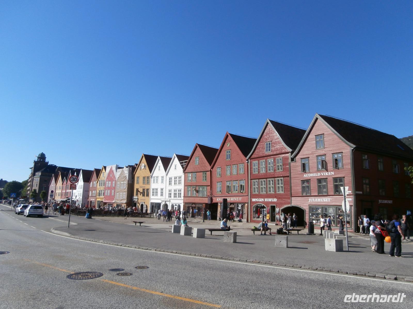 Im Hotel Elveseter starten wir bei Sonnenschein und azurblauen Himmel. Durch den Nationalpark Jotunheimen, er besteht schon seit 1980 und ist Heimat der 2 höchsten Gipfel Norwegens-der Galdhöpiggen mit 2468m und der Glittertind mit 2452m, geht die Fahrt weiter auf dem Sognefjellvegen. Unser fantastisches Sommerwetter läßt viele Fotostopps zu, begeistert lassen wir unsere Reisegäste im Sognefjell die Panoramen einfangen. Wir gelangen vorbei an Skjolden nach Luster am Lustrafjord und auch am Fjord hält Falk mit dem Bus zum Fotografieren an. Weiter geht die Fahrt vorbei an Kaupanger an den Sognefjord. Er ist mit 204 km Länge auch der am Längsten und Tiefsten in das Festland hineingehende Fjord der Welt. In Mannheller nehmen wir die Fähre hinüber nach Fodnes. Heute führt uns die Route nach Bergen durch zahlreiche Tunnel, der Längste ist der Fjälandstunnel mit 24,5km. In Flam stoppen wir für unsere Mittagspause, zum Einkaufen und auch die Flambahn können wir einfahren sehen. Wir schauen ins Museum der Flam Bahn. Am fantastischen Wasserfall Tvindefossen legen wir noch einen Fotostopp ein, er hat in diesem Jahr wenig Wasser, denn der Sommer und die Trockenheit halten in Norwegen schon alle Weile an. 17 Uhr erreichen wir bei hitzigen Temperaturen Bergen, gelegen auf mehreren Inseln und gerahmt von 7 Bergen. Nach dem Abendessen gehen einige Gäste mit mir durch die Stadt bis zur Talstation des Fløyen. Mit der Standseilbahn fahren unsere Reisegäste hinauf und genießen die Sicht über die Stadt Bergen und in die Schärenwelt. 354 km