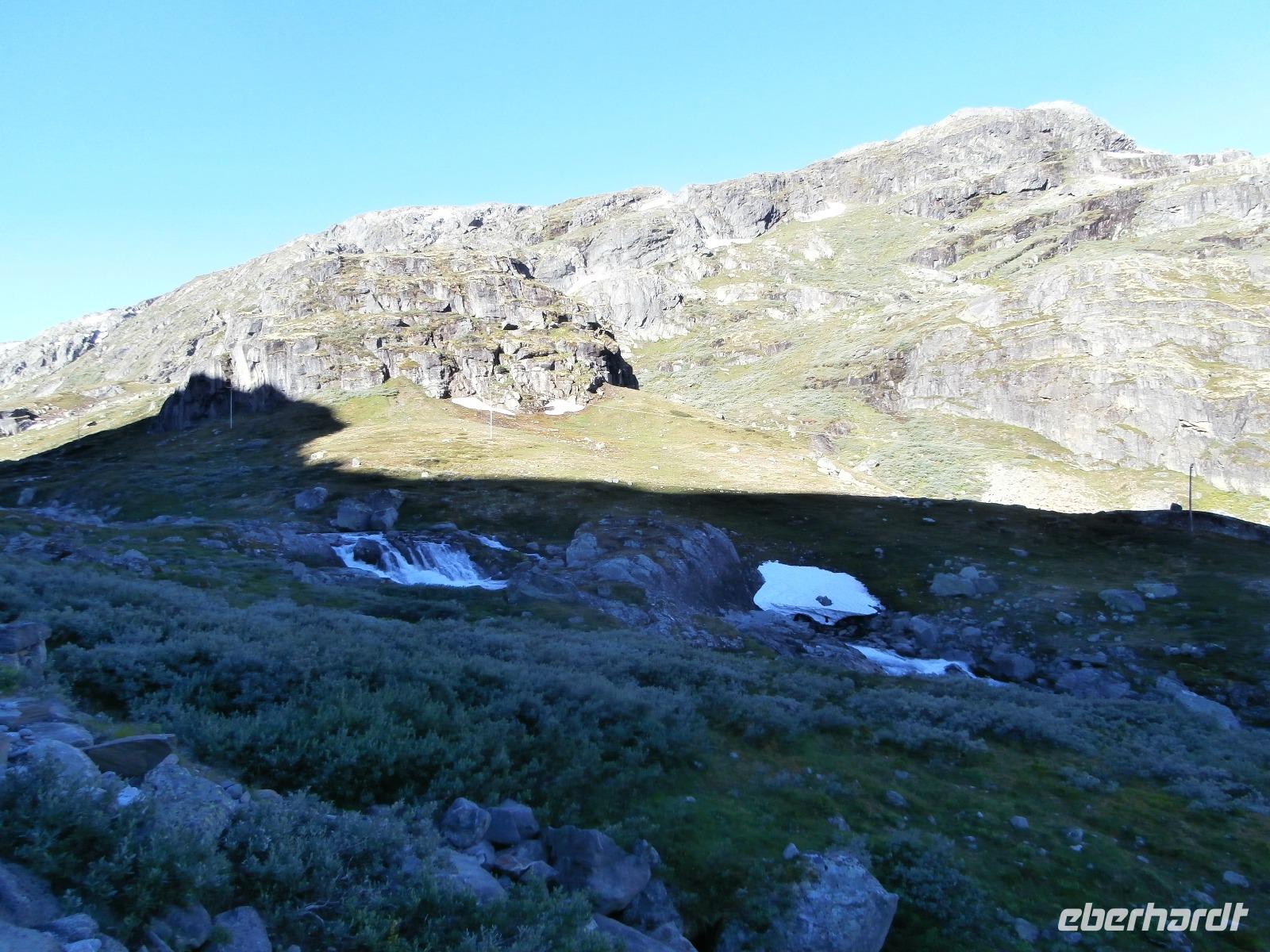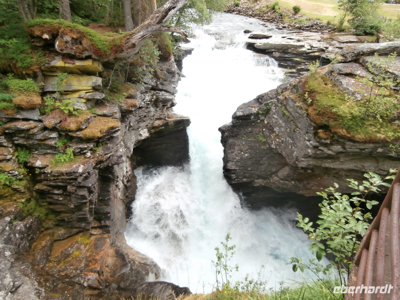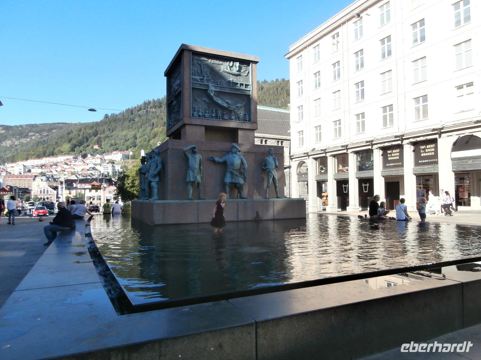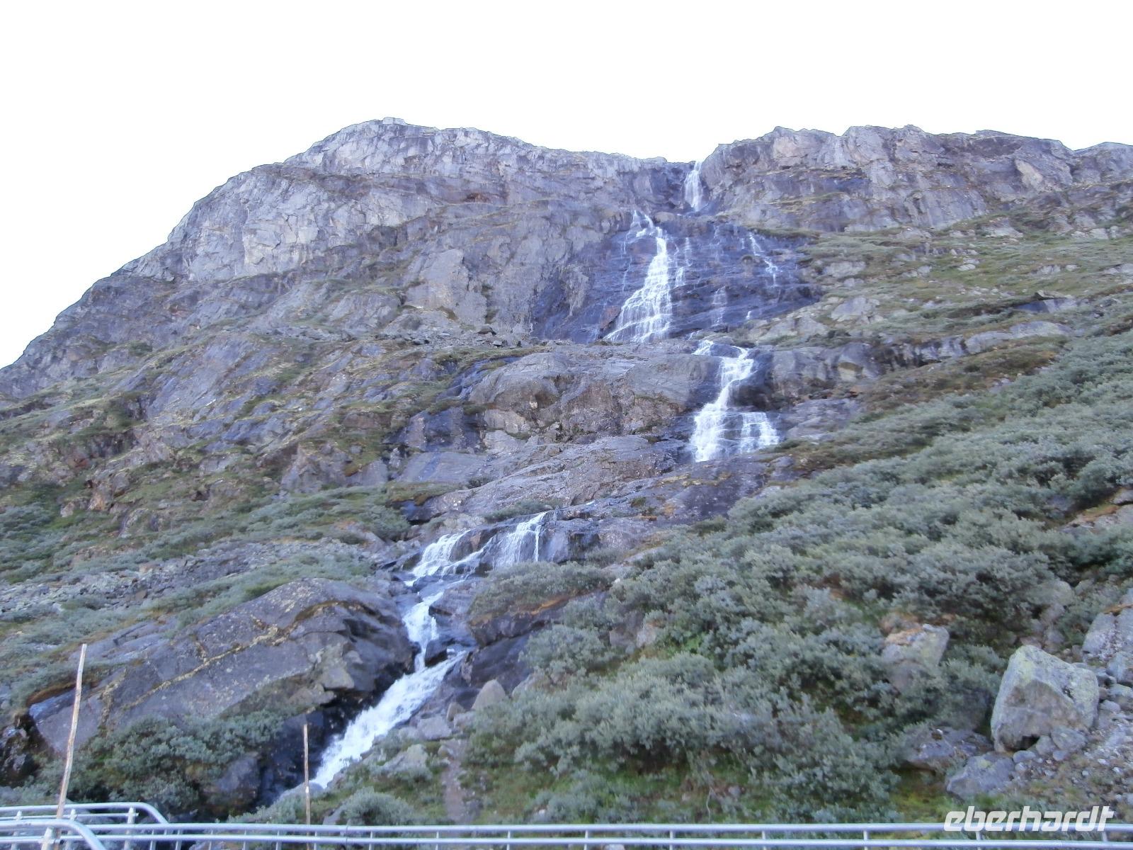 Im Hotel Elveseter starten wir bei Sonnenschein und azurblauen Himmel. Durch den Nationalpark Jotunheimen, er besteht schon seit 1980 und ist Heimat der 2 höchsten Gipfel Norwegens-der Galdhöpiggen mit 2468m und der Glittertind mit 2452m, geht die Fahrt weiter auf dem Sognefjellvegen. Unser fantastisches Sommerwetter läßt viele Fotostopps zu, begeistert lassen wir unsere Reisegäste im Sognefjell die Panoramen einfangen. Wir gelangen vorbei an Skjolden nach Luster am Lustrafjord und auch am Fjord hält Falk mit dem Bus zum Fotografieren an. Weiter geht die Fahrt vorbei an Kaupanger an den Sognefjord. Er ist mit 204 km Länge auch der am Längsten und Tiefsten in das Festland hineingehende Fjord der Welt. In Mannheller nehmen wir die Fähre hinüber nach Fodnes. Heute führt uns die Route nach Bergen durch zahlreiche Tunnel, der Längste ist der Fjälandstunnel mit 24,5km. In Flam stoppen wir für unsere Mittagspause, zum Einkaufen und auch die Flambahn können wir einfahren sehen. Wir schauen ins Museum der Flam Bahn. Am fantastischen Wasserfall Tvindefossen legen wir noch einen Fotostopp ein, er hat in diesem Jahr wenig Wasser, denn der Sommer und die Trockenheit halten in Norwegen schon alle Weile an. 17 Uhr erreichen wir bei hitzigen Temperaturen Bergen, gelegen auf mehreren Inseln und gerahmt von 7 Bergen. Nach dem Abendessen gehen einige Gäste mit mir durch die Stadt bis zur Talstation des Fløyen. Mit der Standseilbahn fahren unsere Reisegäste hinauf und genießen die Sicht über die Stadt Bergen und in die Schärenwelt. 354 km