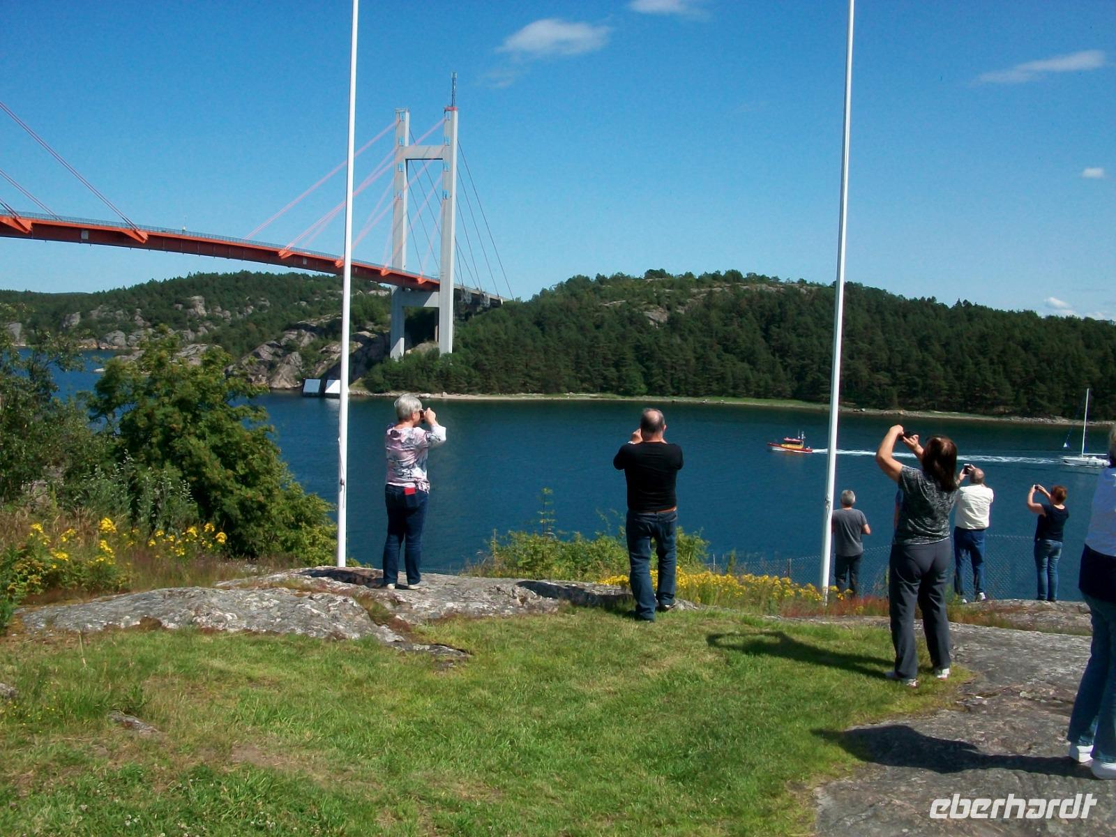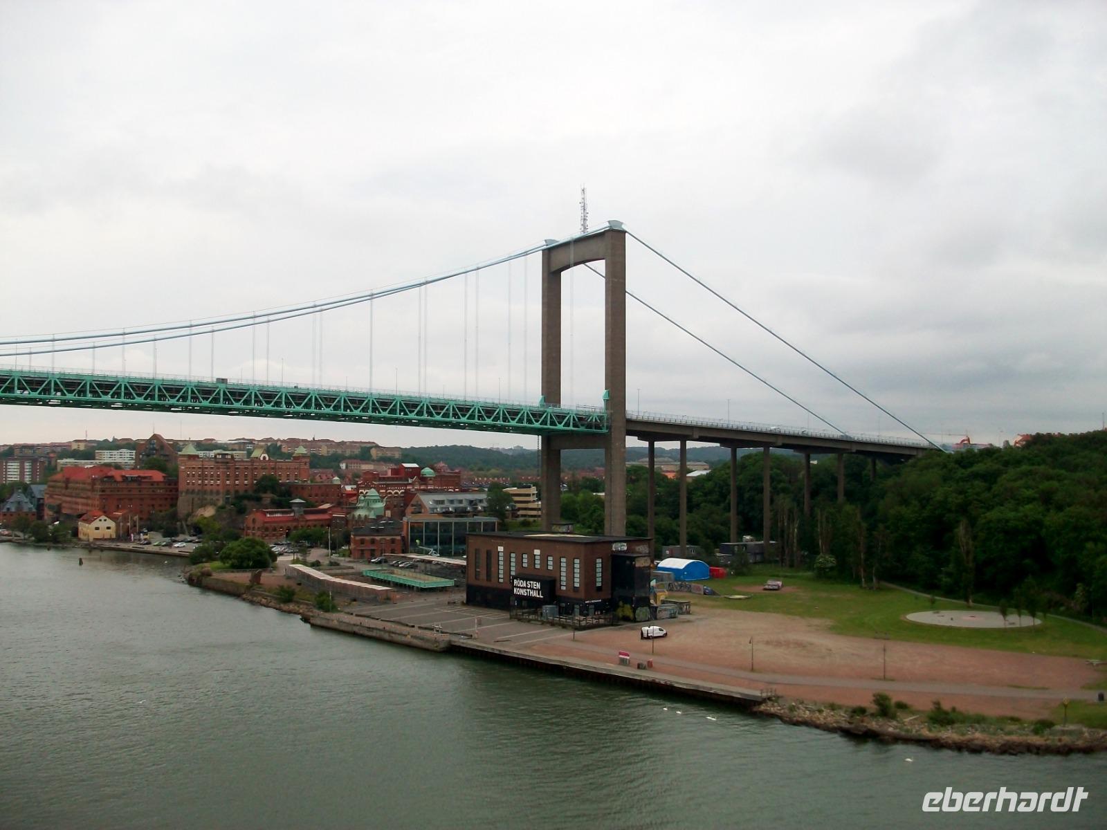 Gegen 9.15 Uhr können wir das Schiff verlassen, vorher haben wir uns von Deck aus die Einfahrt nach Göteborg und seinen Hafen nicht entgehen lassen. Hinter der großen Brücke hatte dann das Schiff fest gemacht und vor dem Terminal können wir dann wieder in den Bus steigen und unserem heutigen Ziel Oslo entgegen fahren. Leider regnet es nun wieder. Die Fahrt verläuft dennoch sehr angenehm; ausgedehnte Wälder lösen sich mit kleineren Seen ab, ein typisches Bild für das südliche Skandinavien.