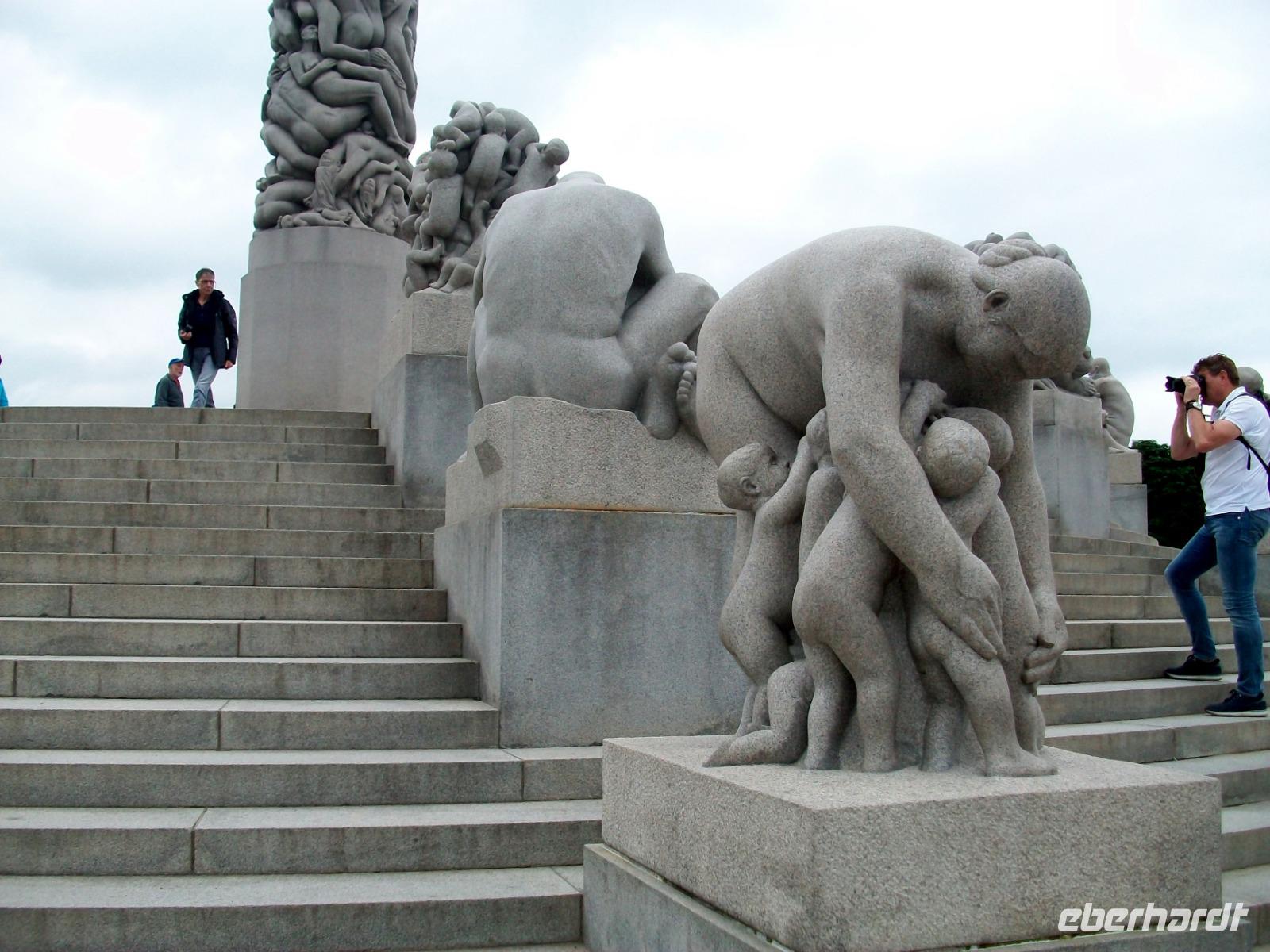 Dann verlassen wird die direkte Innenstadt und unser Weg führt uns in den Skulpturenpark den uns der Bildhauer Gustav Vigeland hinterließ. Wir staunen über die lebensechten Figuren und erahnen dabei die Symbolik, sie stellt den Kreis des Lebens dar.