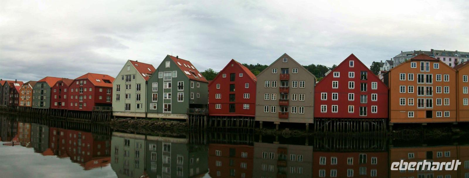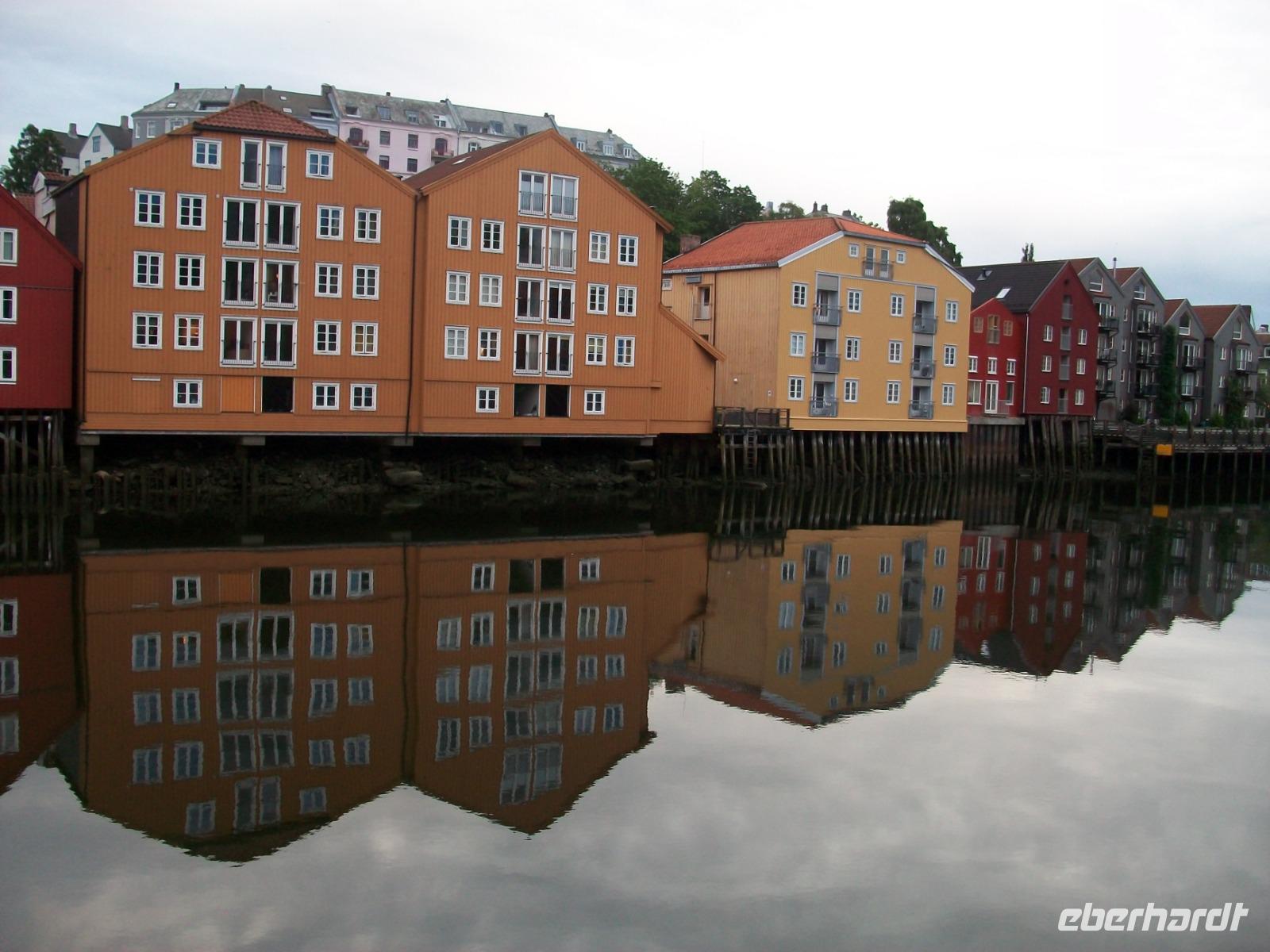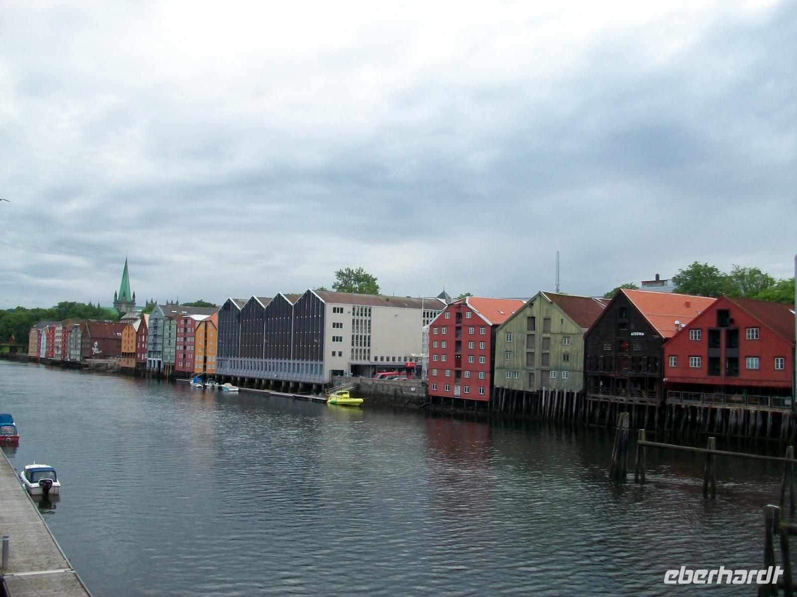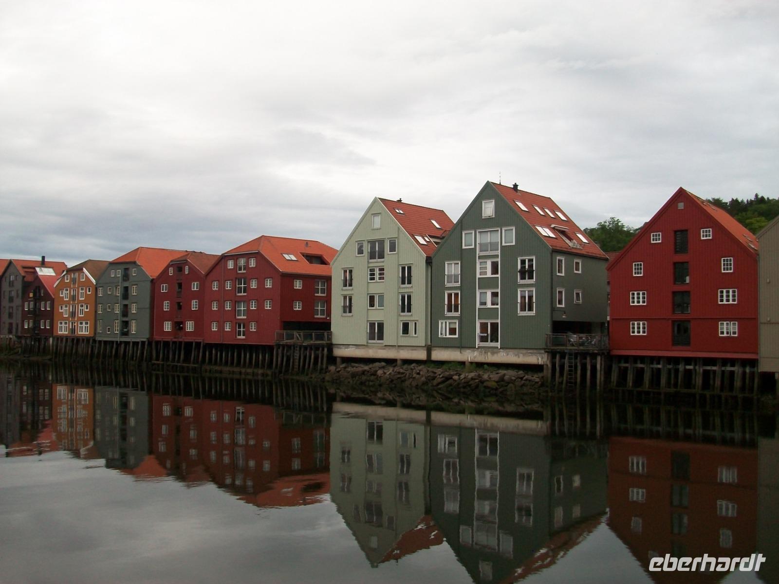 Kurz vor dem Mittag starten wir und gelangen bald durch das breite und sehr grüne Gudbrandstal. Hier wird ausgiebig Landwirtschaft betrieben und einer der Bauern soll Per Gynt gewesen sein. Doch unser Weg führt uns immer weiter bergauf; die ersten Schneeberge kommen uns entgegen und im Ort Dåmbas genehmigen wir uns eine Pause. Bei der Weiterfahrt ändert sich dann schlagartig die Vegetation; es wird kahler, die Bäume niedriger und der Blick wir frei über eine Tundra: Wir sind auf dem Dovrefjell angelangt. Ein faszinierender Blick im Reich der Moschusochsen, doch bald geht es bergab und der Baumbewuchs nimmt wieder zu. Entlang reißender Wildflüsse kommen wir dem Meer immer näher und im Zentrum von Trondheim endet die heutige Fahrt, wir haben unser Hotel inmitten der uralten und farbigen Holzhäuser, erreicht.