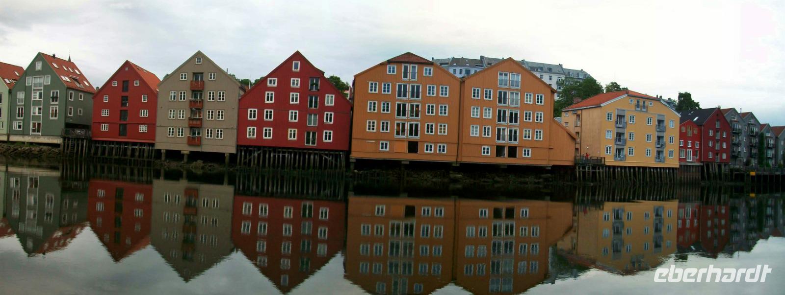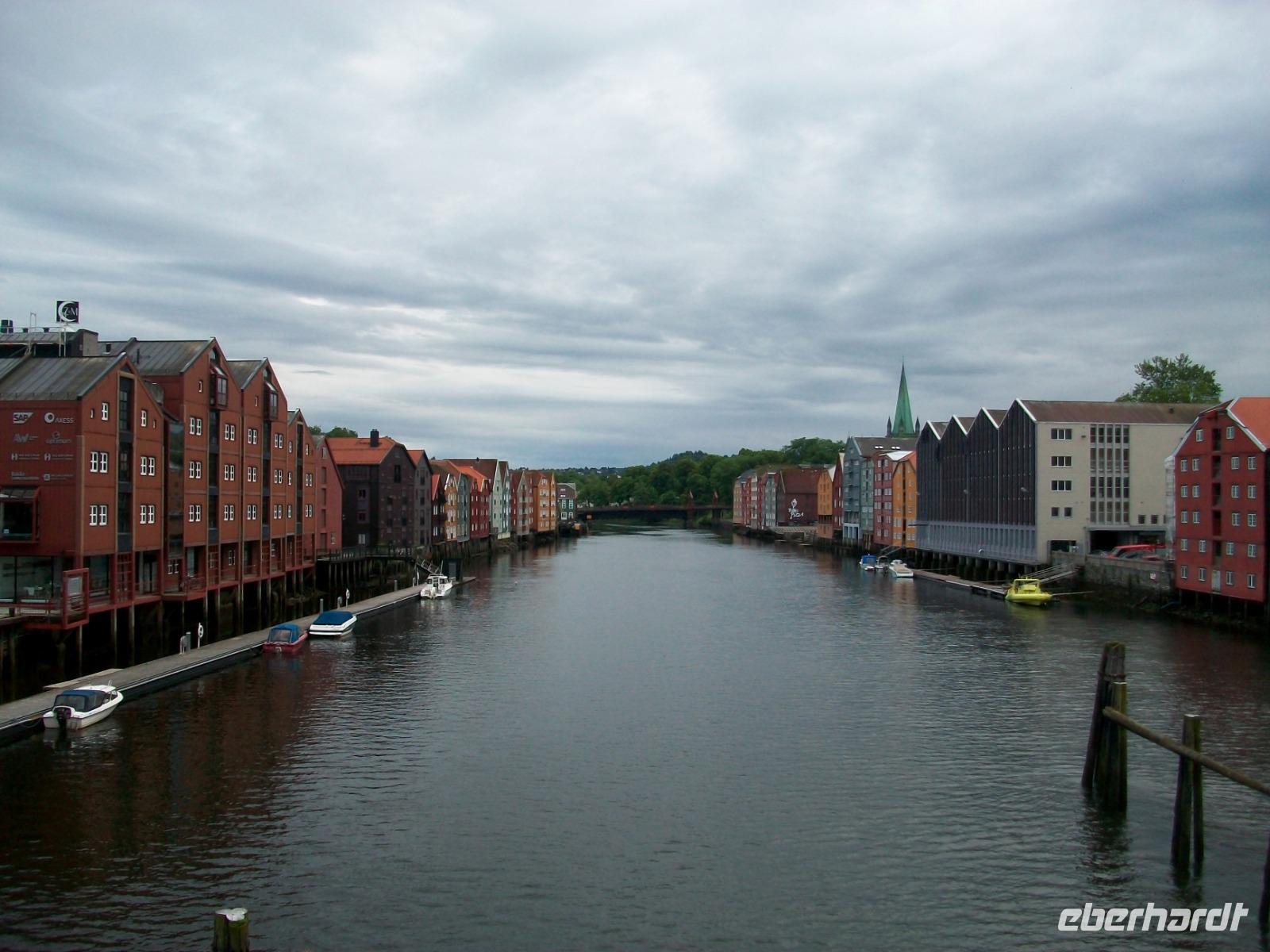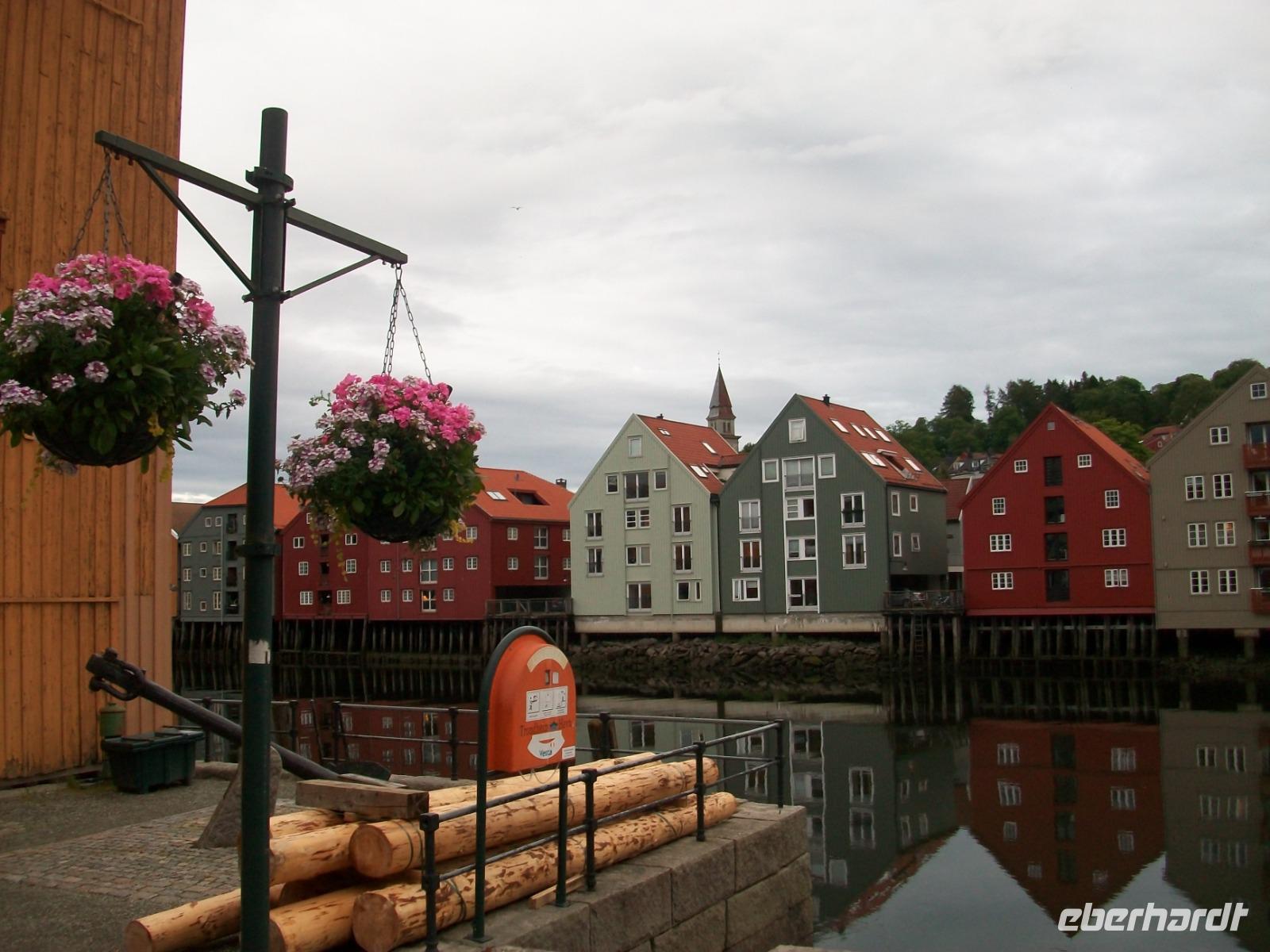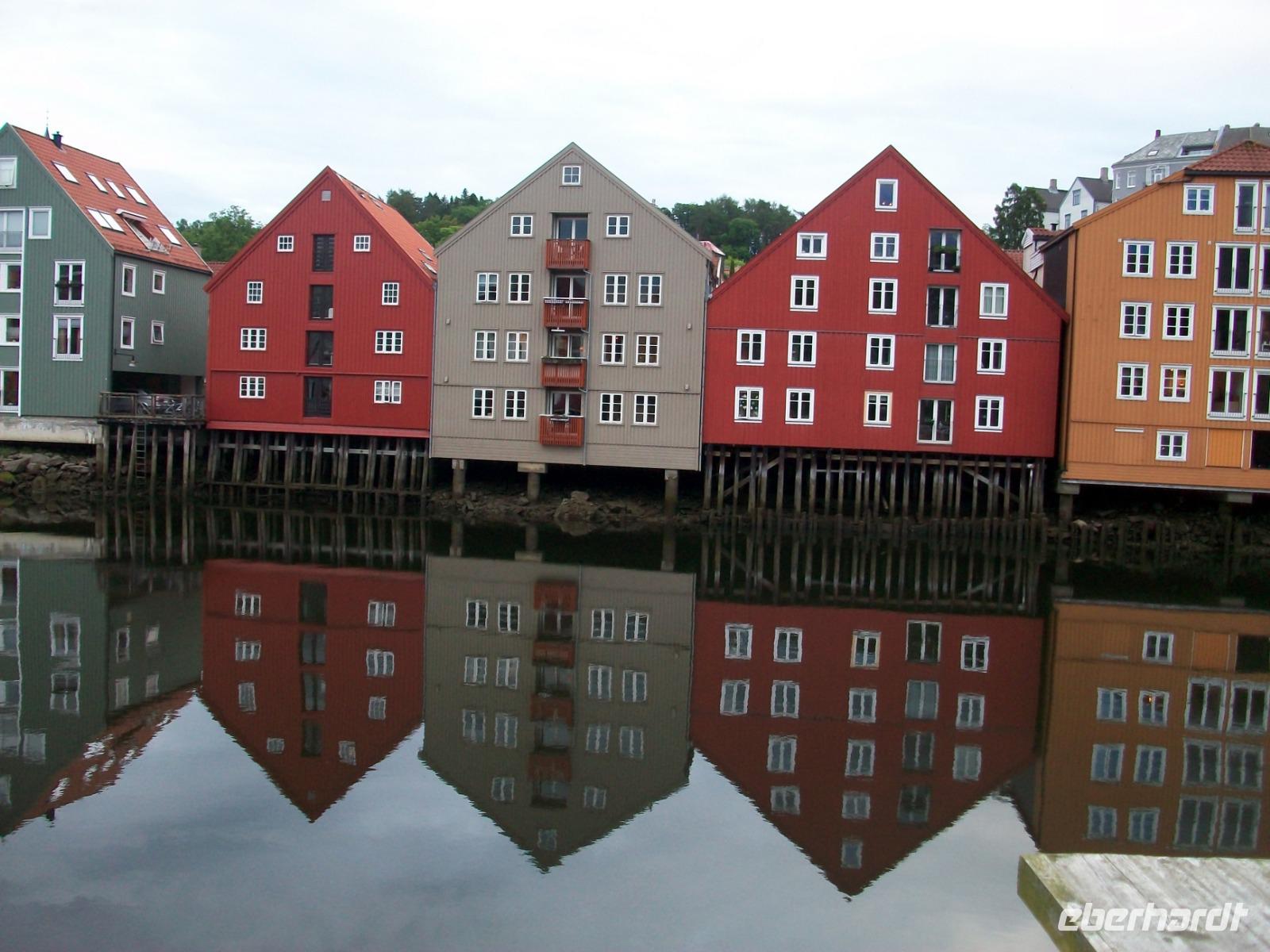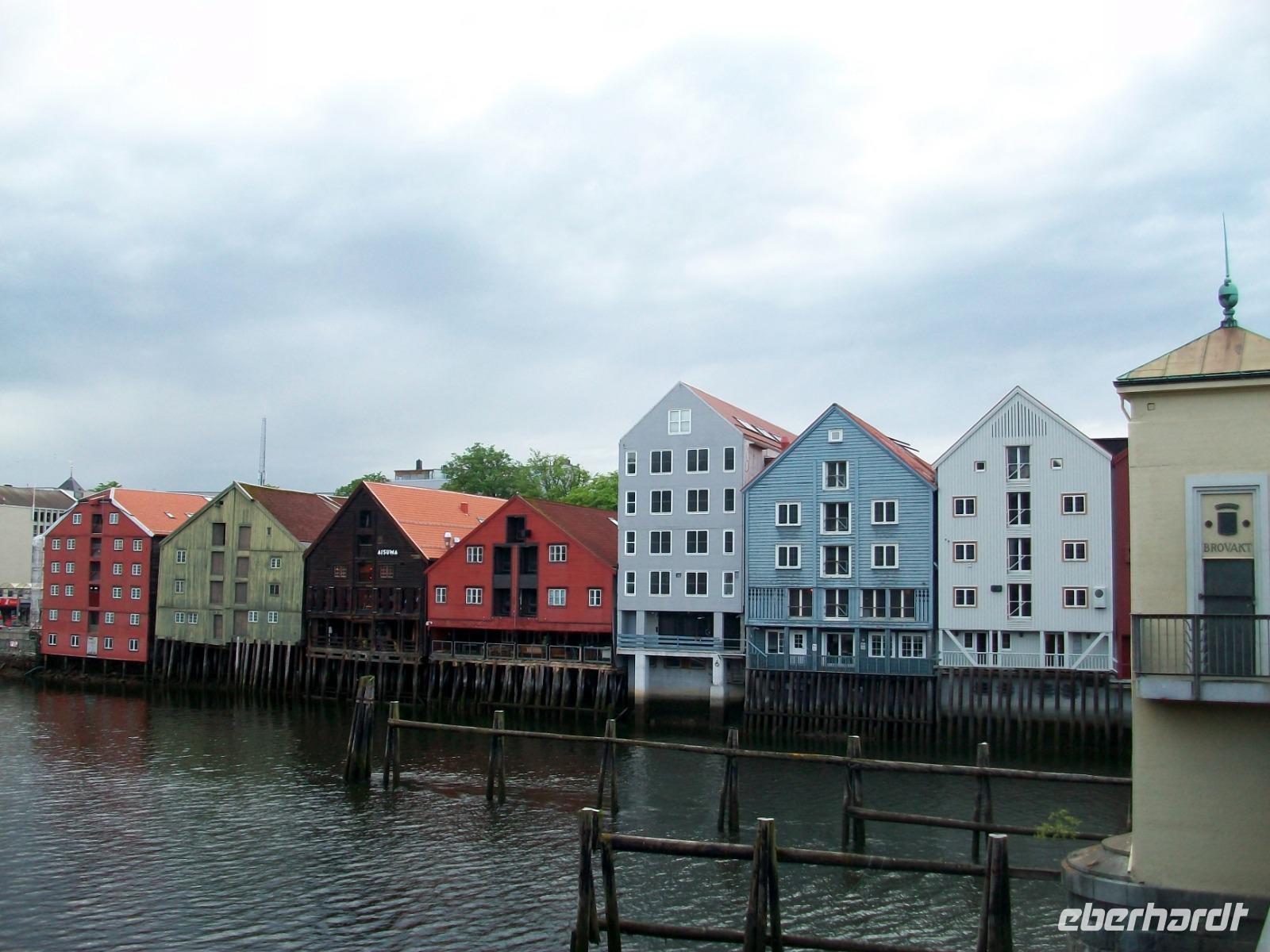 Kurz vor dem Mittag starten wir und gelangen bald durch das breite und sehr grüne Gudbrandstal. Hier wird ausgiebig Landwirtschaft betrieben und einer der Bauern soll Per Gynt gewesen sein. Doch unser Weg führt uns immer weiter bergauf; die ersten Schneeberge kommen uns entgegen und im Ort Dåmbas genehmigen wir uns eine Pause. Bei der Weiterfahrt ändert sich dann schlagartig die Vegetation; es wird kahler, die Bäume niedriger und der Blick wir frei über eine Tundra: Wir sind auf dem Dovrefjell angelangt. Ein faszinierender Blick im Reich der Moschusochsen, doch bald geht es bergab und der Baumbewuchs nimmt wieder zu. Entlang reißender Wildflüsse kommen wir dem Meer immer näher und im Zentrum von Trondheim endet die heutige Fahrt, wir haben unser Hotel inmitten der uralten und farbigen Holzhäuser, erreicht.