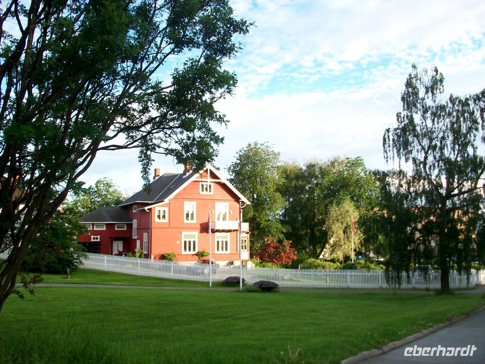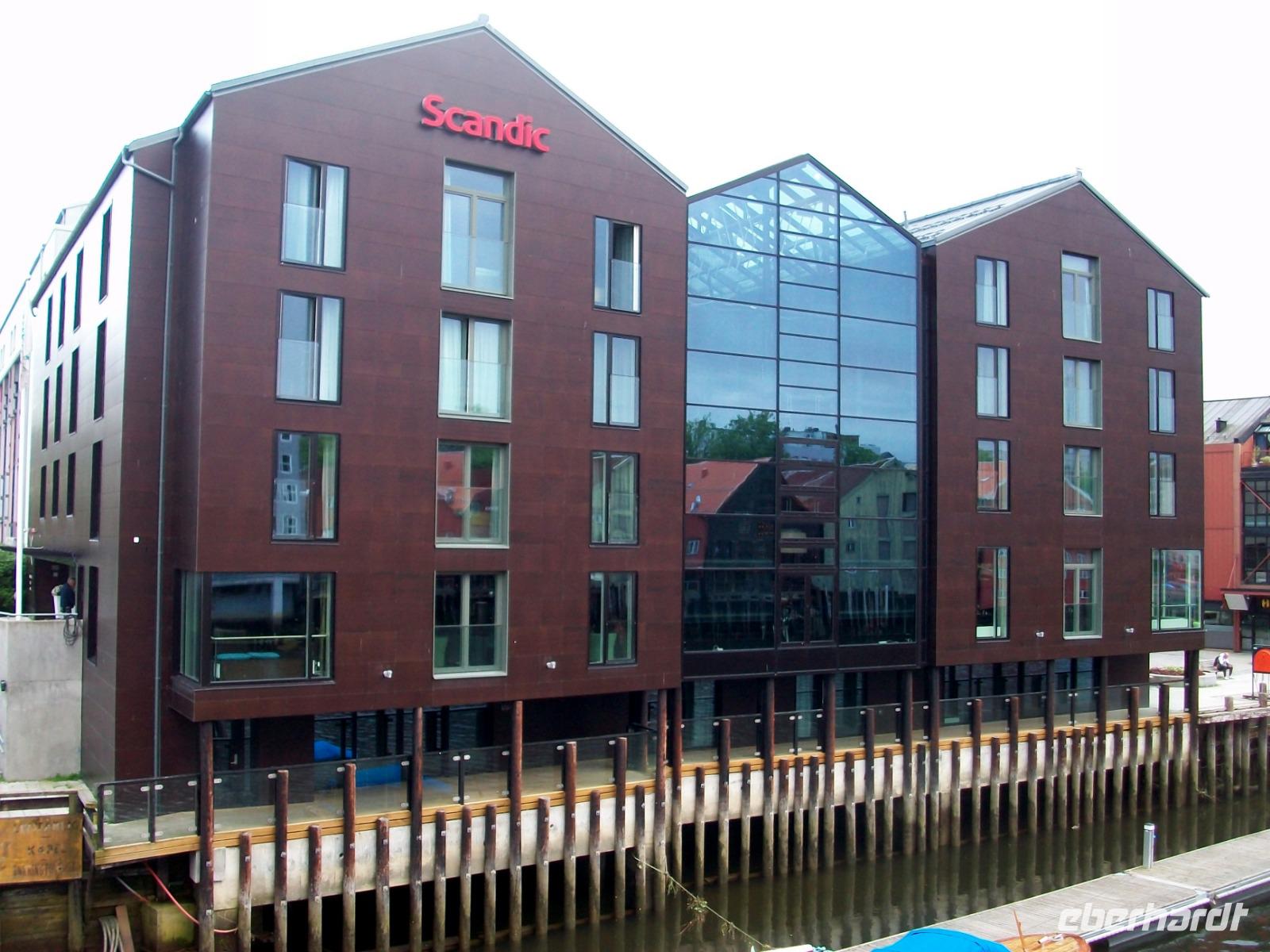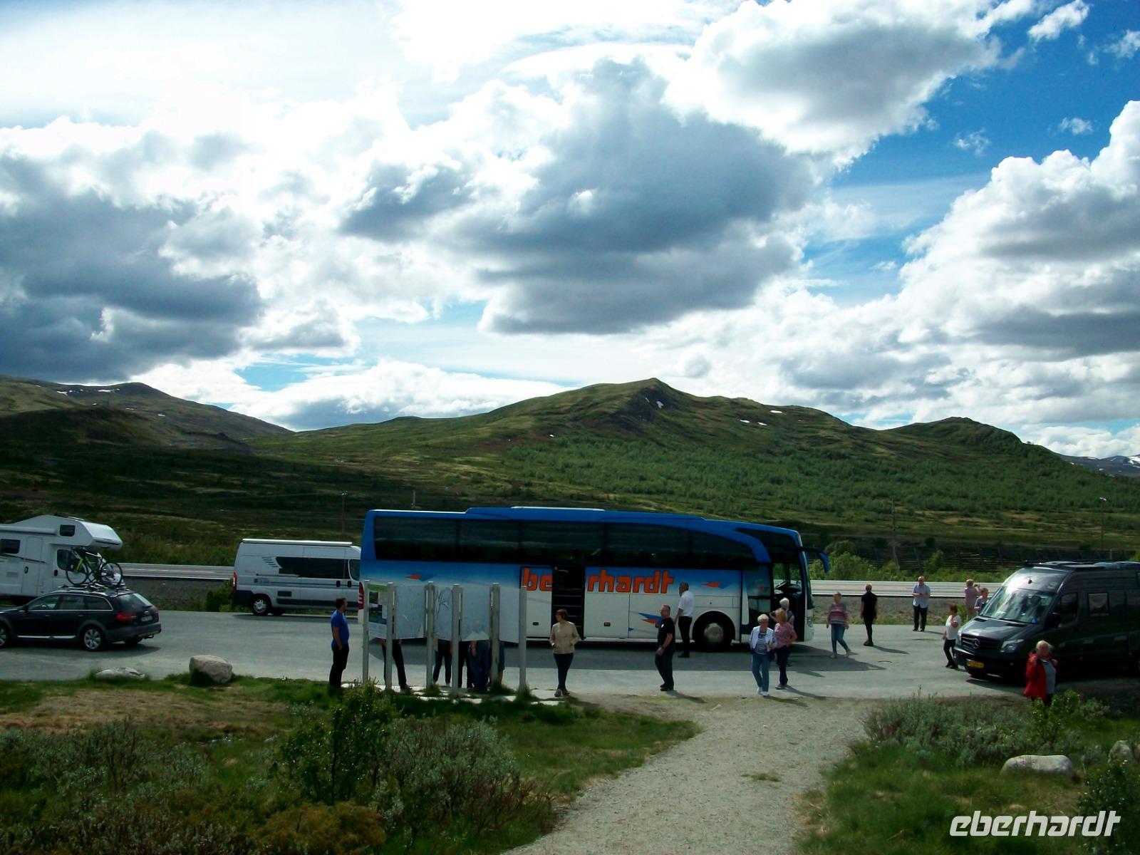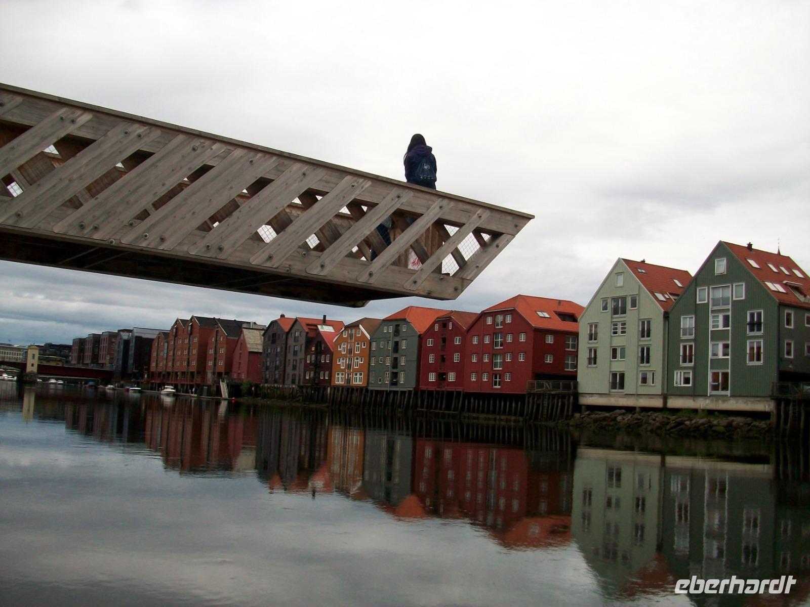 Kurz vor dem Mittag starten wir und gelangen bald durch das breite und sehr grüne Gudbrandstal. Hier wird ausgiebig Landwirtschaft betrieben und einer der Bauern soll Per Gynt gewesen sein. Doch unser Weg führt uns immer weiter bergauf; die ersten Schneeberge kommen uns entgegen und im Ort Dåmbas genehmigen wir uns eine Pause. Bei der Weiterfahrt ändert sich dann schlagartig die Vegetation; es wird kahler, die Bäume niedriger und der Blick wir frei über eine Tundra: Wir sind auf dem Dovrefjell angelangt. Ein faszinierender Blick im Reich der Moschusochsen, doch bald geht es bergab und der Baumbewuchs nimmt wieder zu. Entlang reißender Wildflüsse kommen wir dem Meer immer näher und im Zentrum von Trondheim endet die heutige Fahrt, wir haben unser Hotel inmitten der uralten und farbigen Holzhäuser, erreicht.