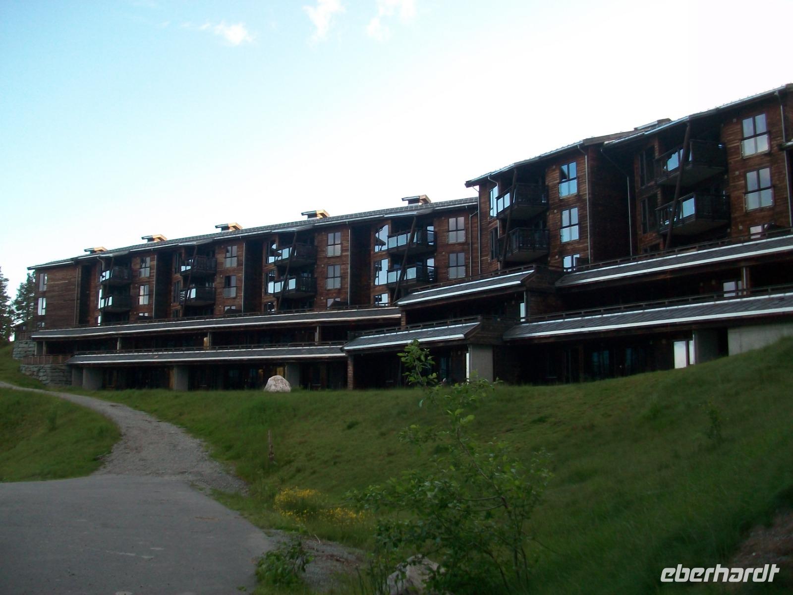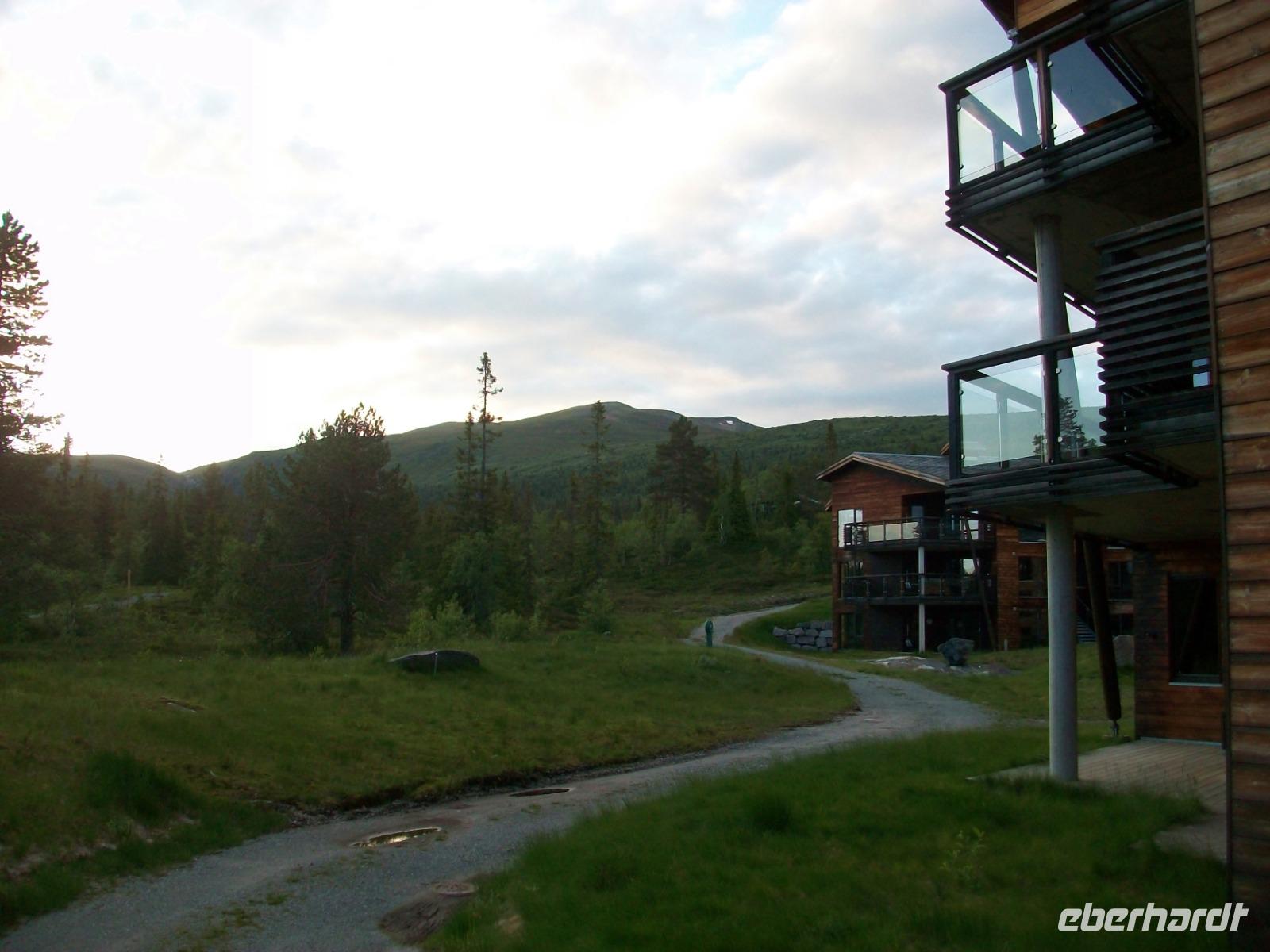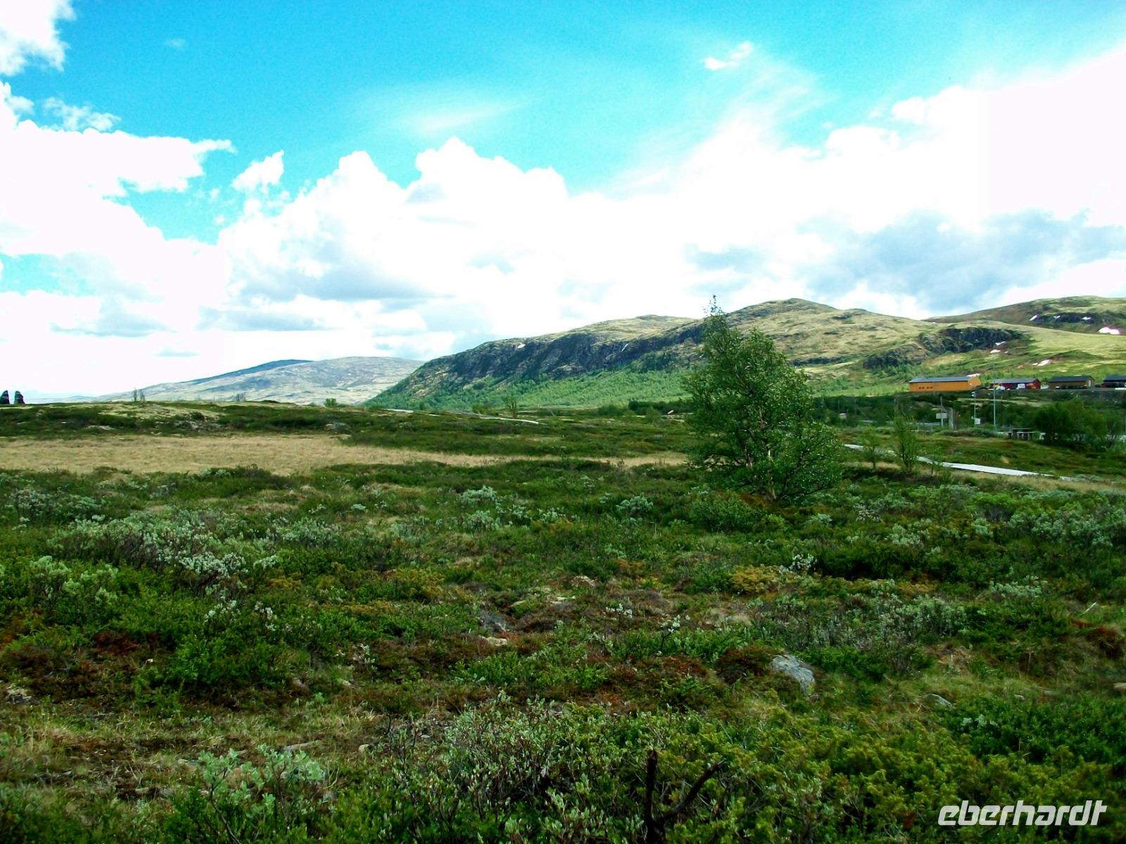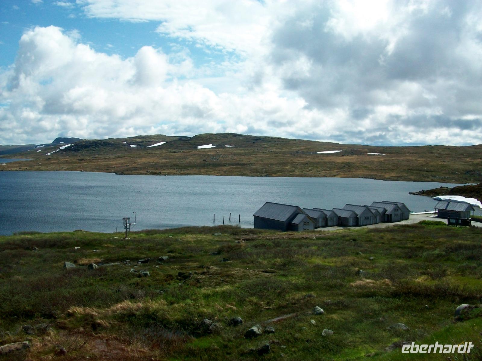 Dann geht es wieder bergab; durch das grüne Hallingtal gelangen wir zum Ort Noresund und erklimmen hier die Höhen wo im Winter Skisport betrieben wird. Hier oben, in der Einsamkeit der Berge, verbringen wir eine letzte schöne Nacht auf norwegischem Boden.