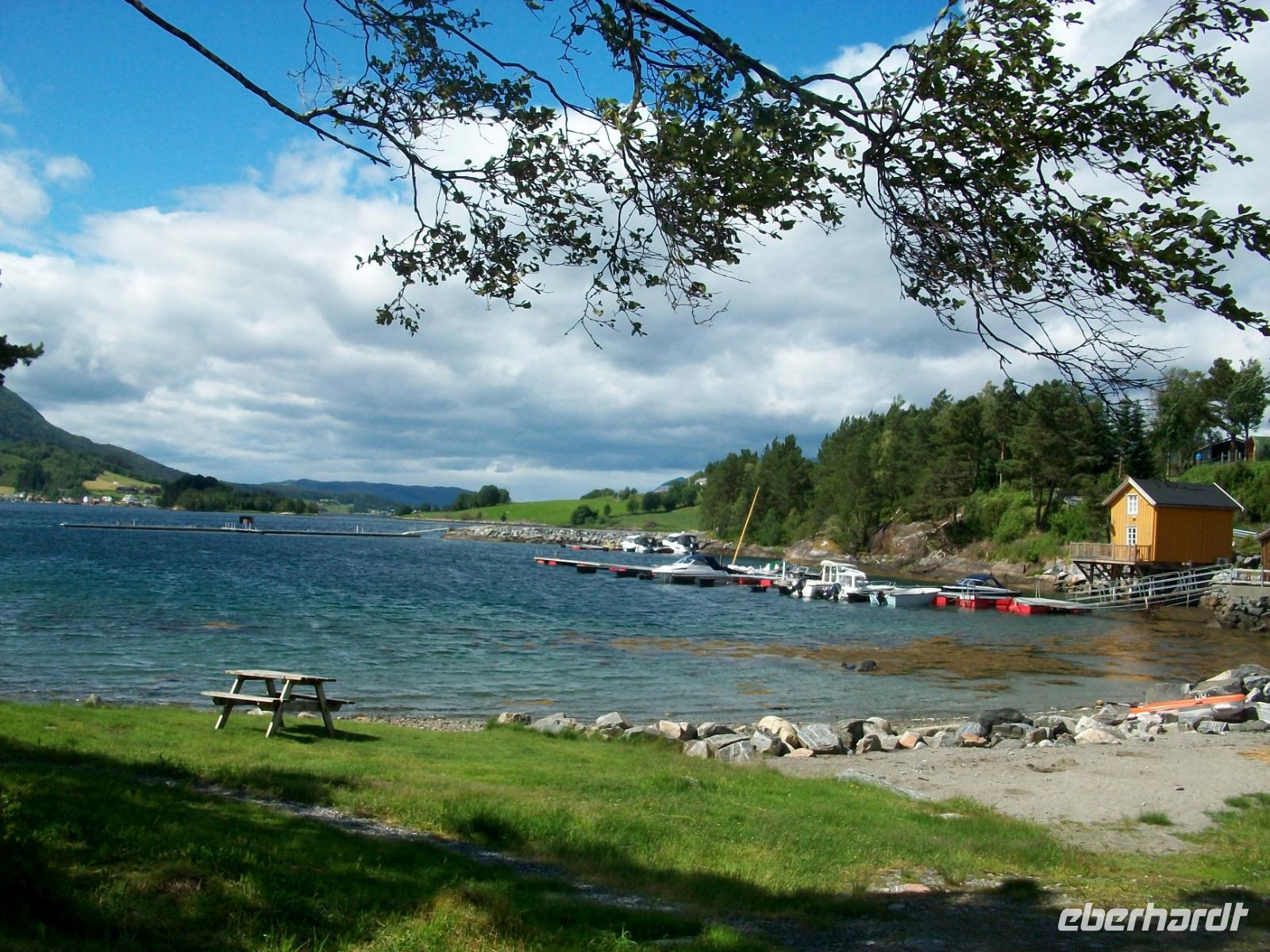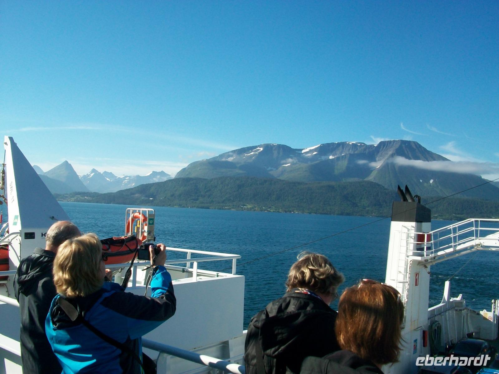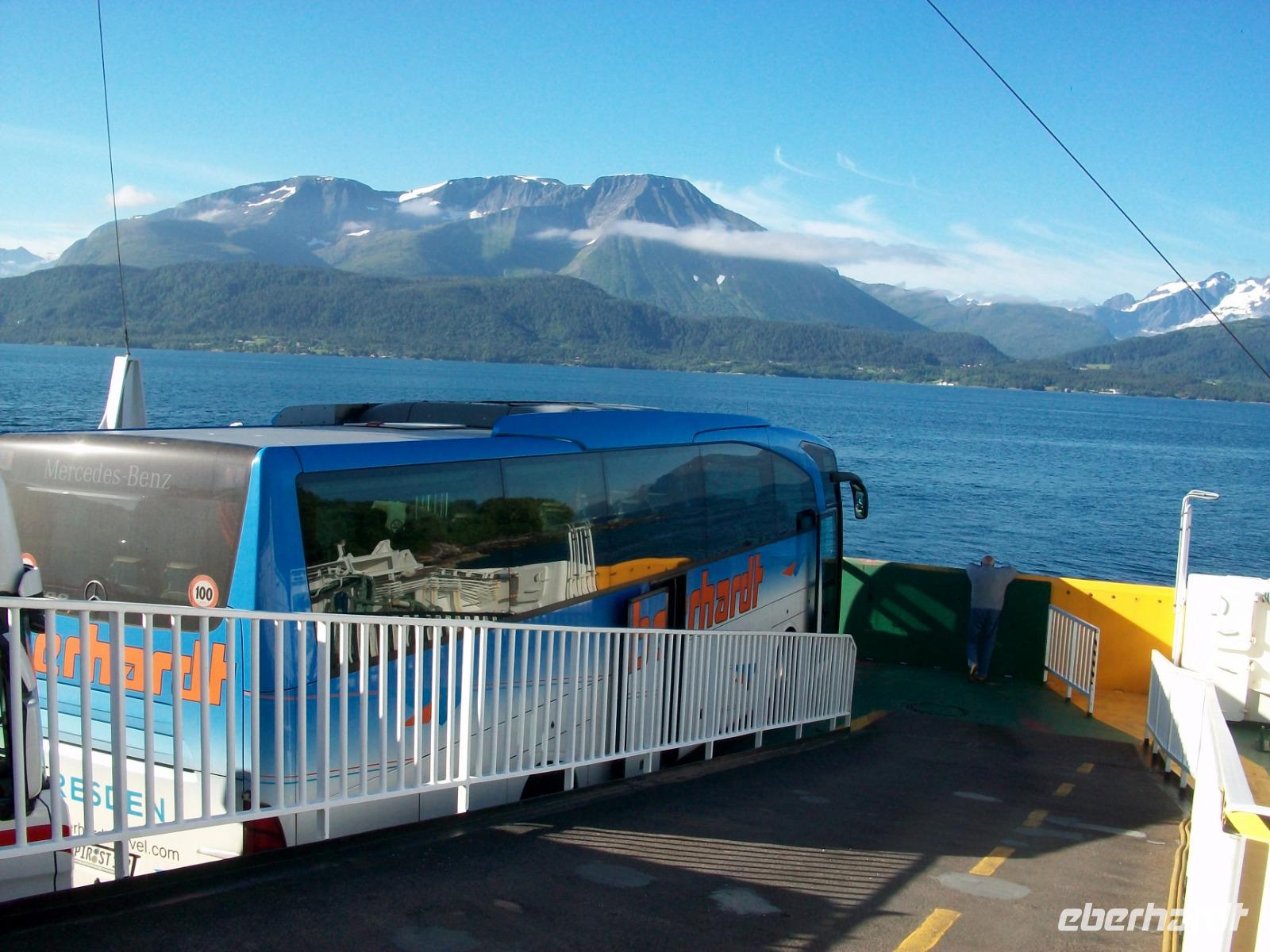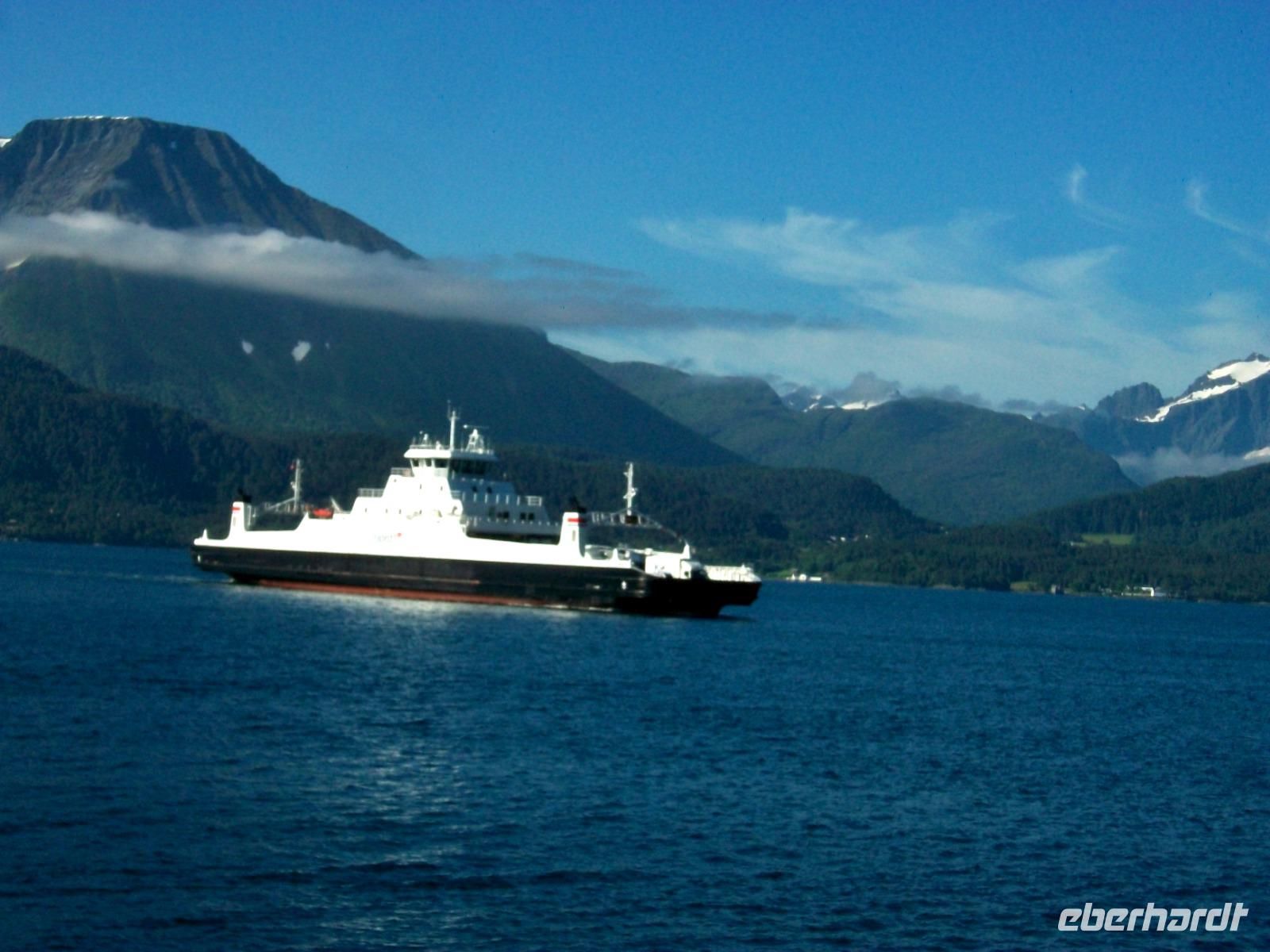 Gegen zehn beginnt dann die Führung im Dom; hier wird uns sehr anschaulich die Bedeutung dieses Gotteshauses in der Geschichte Norwegens nähergebracht und, wieder etwas klüger, nehmen wir eine Stunde später die Weiterfahrt auf. Nun geht es erneut durch die unberührte Natur Norwegens; an einem schönen See legen wir unsere Mittgaspause ein und nach wenigen Kilometern erwartet uns eine halbstündige Fährüberfahrt über den Halsafjord - eine kleine Seereise zwischendurch.