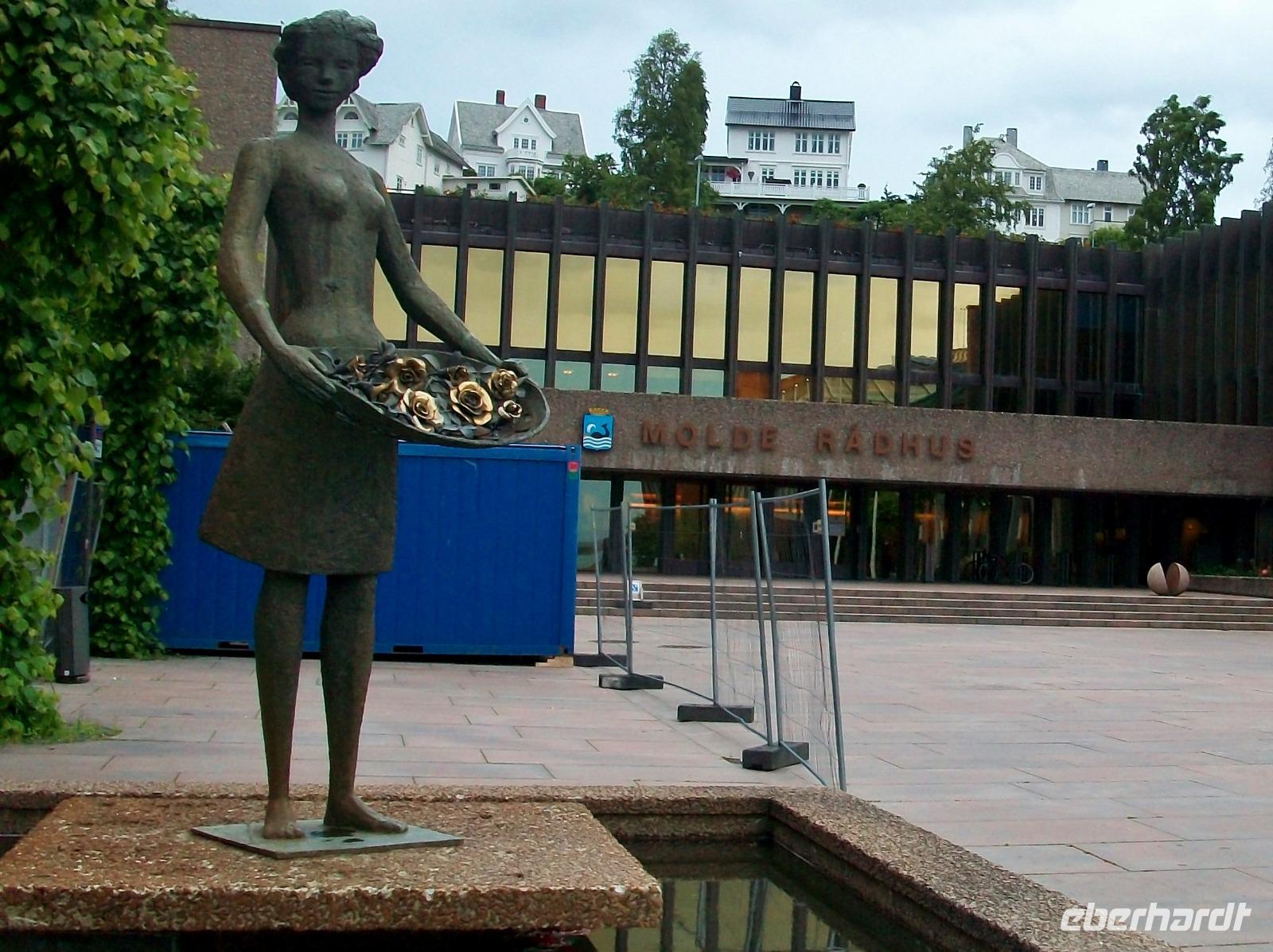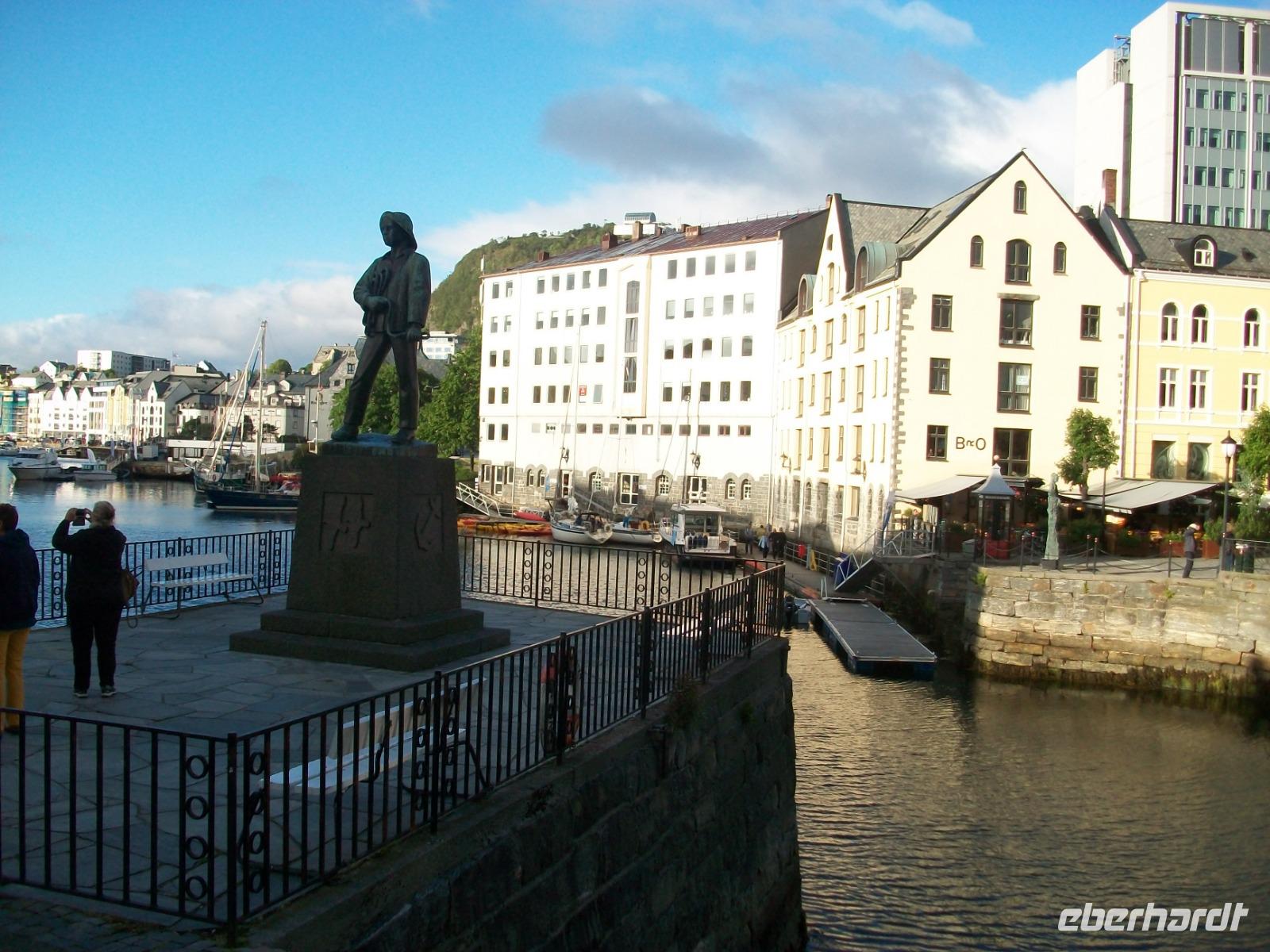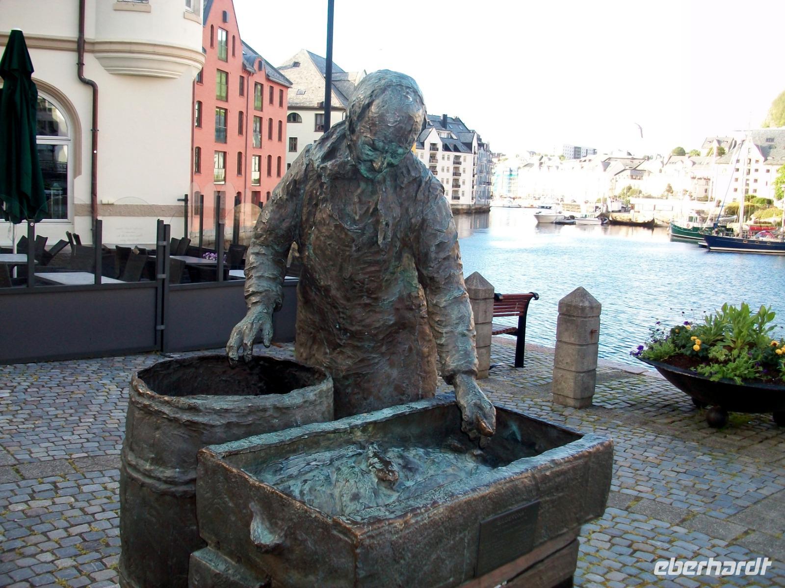 Unser Weg führt nun nach Kristiansund. Hier dreht sich alles um den Fischfang und in der Vergangenheit wurde hier Kabeljau getrocknet der dann als Klippfisch in alle Welt ging. Das schöne Denkmal von der Klippfischfrau legt davon noch heute Zeugnis ab.