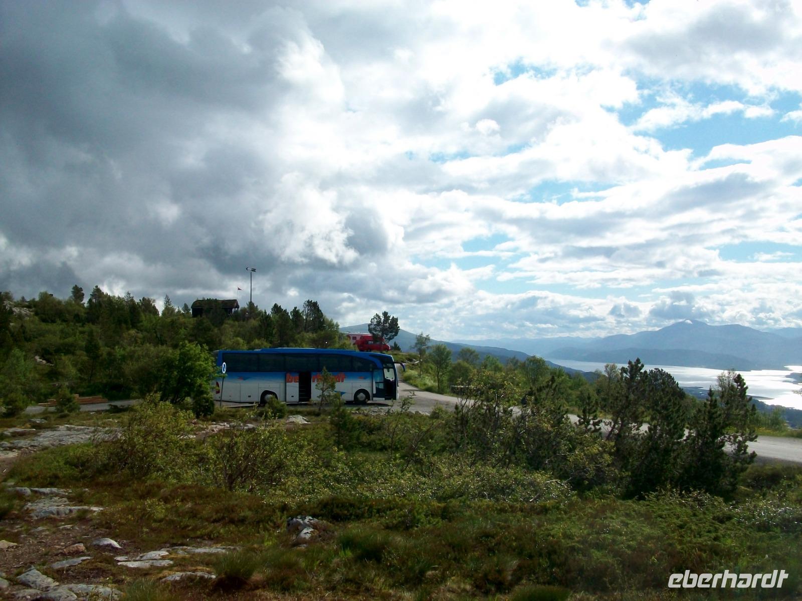 Derart durchgeblasen finden wir schnell unseren Weg zum Bus zurück und mit ihm gelangen wir, begleitet von einigen kräftigen Schauern, nach Molde und hier zum Hotel unweit des Fjords.