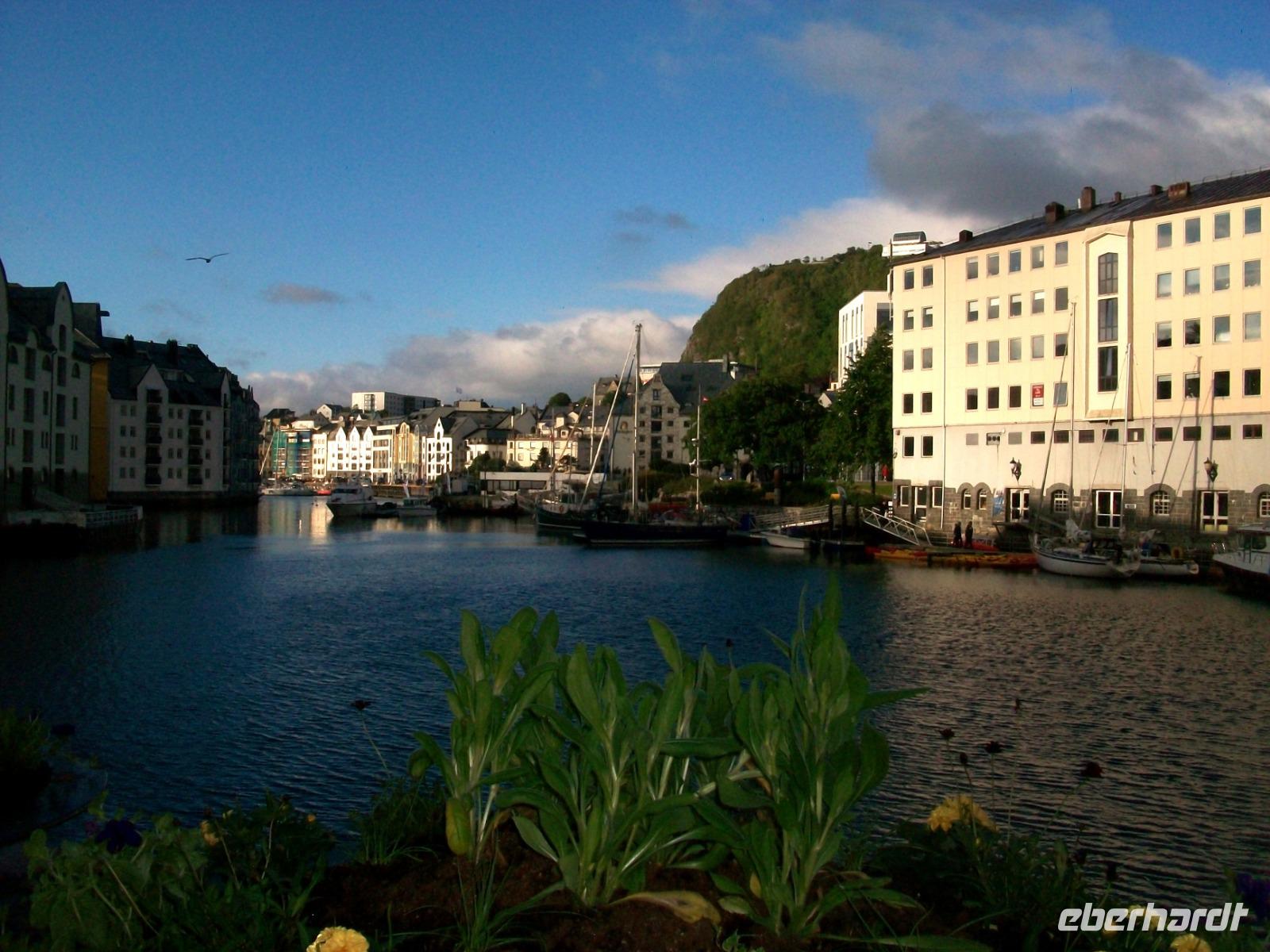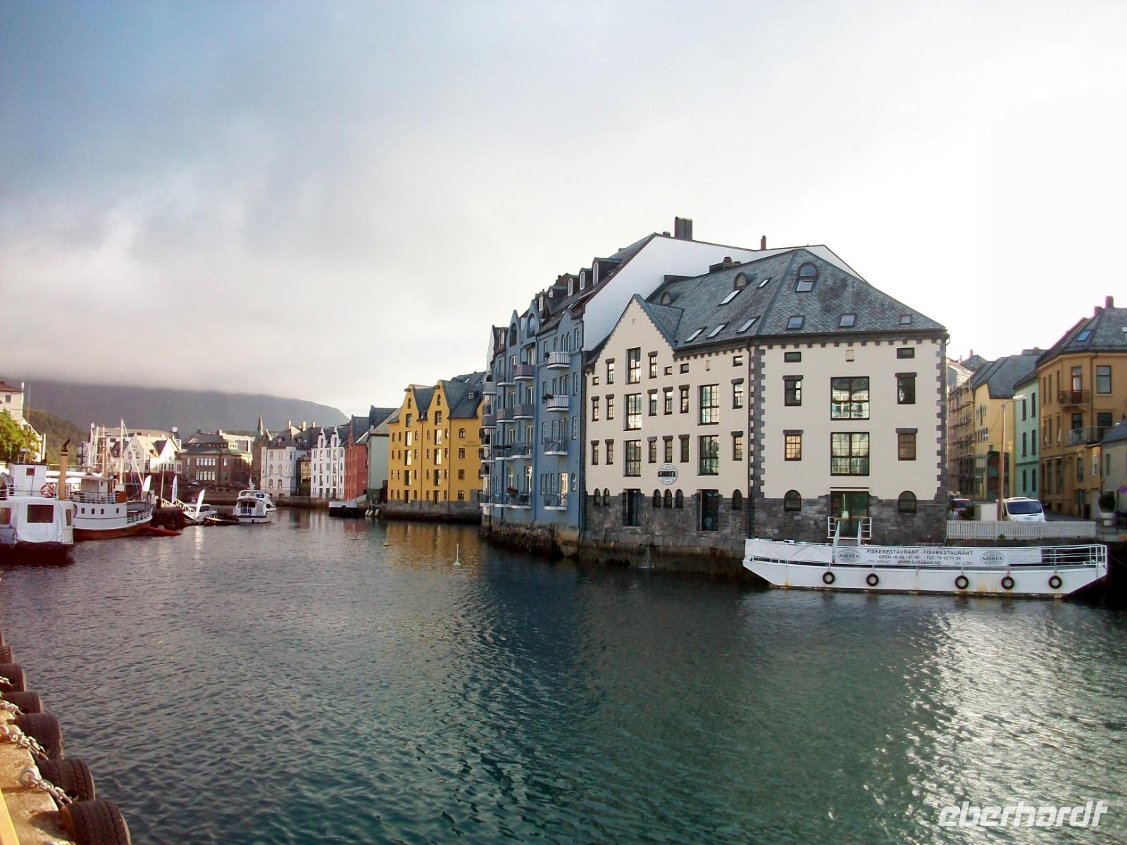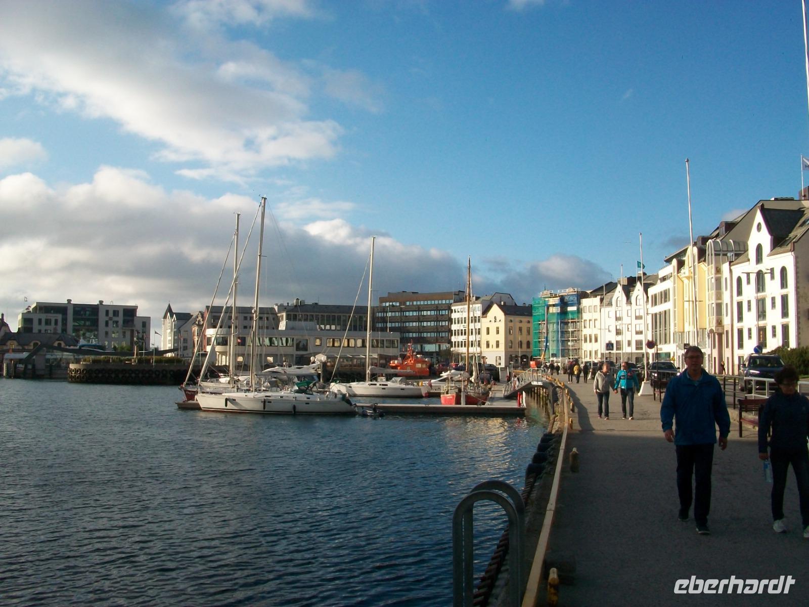 Doch dann geht es weiter und wieder zu Tal. Langsam geht es abwärts, wir durchfahren grüne Wälder und erreichen bald wieder die Fjorde. Manchmal durch Tunnels, dann wieder direkt am Wasser entlang, die Zeit vergeht mit diesen unvergesslichen Impressionen wie im Flug, am späteren Nachmittag haben wir dann unser Ziel Ålesund erreicht.