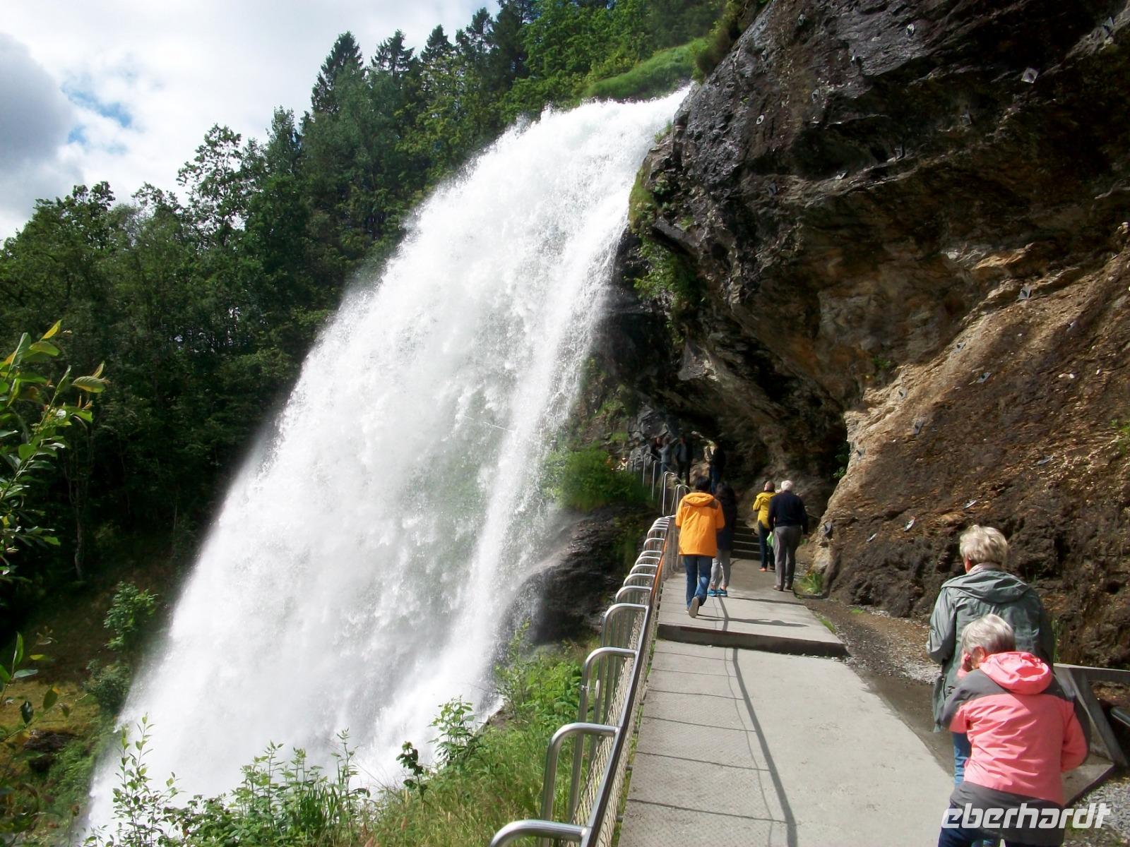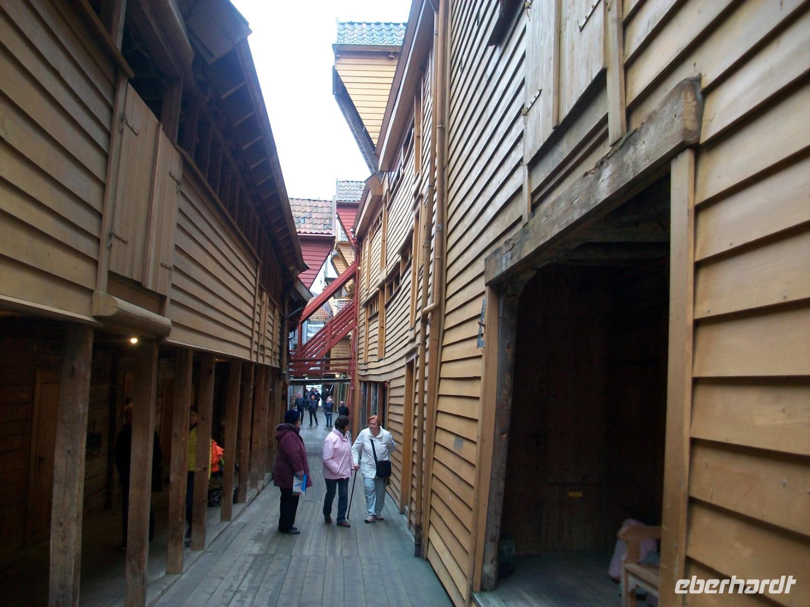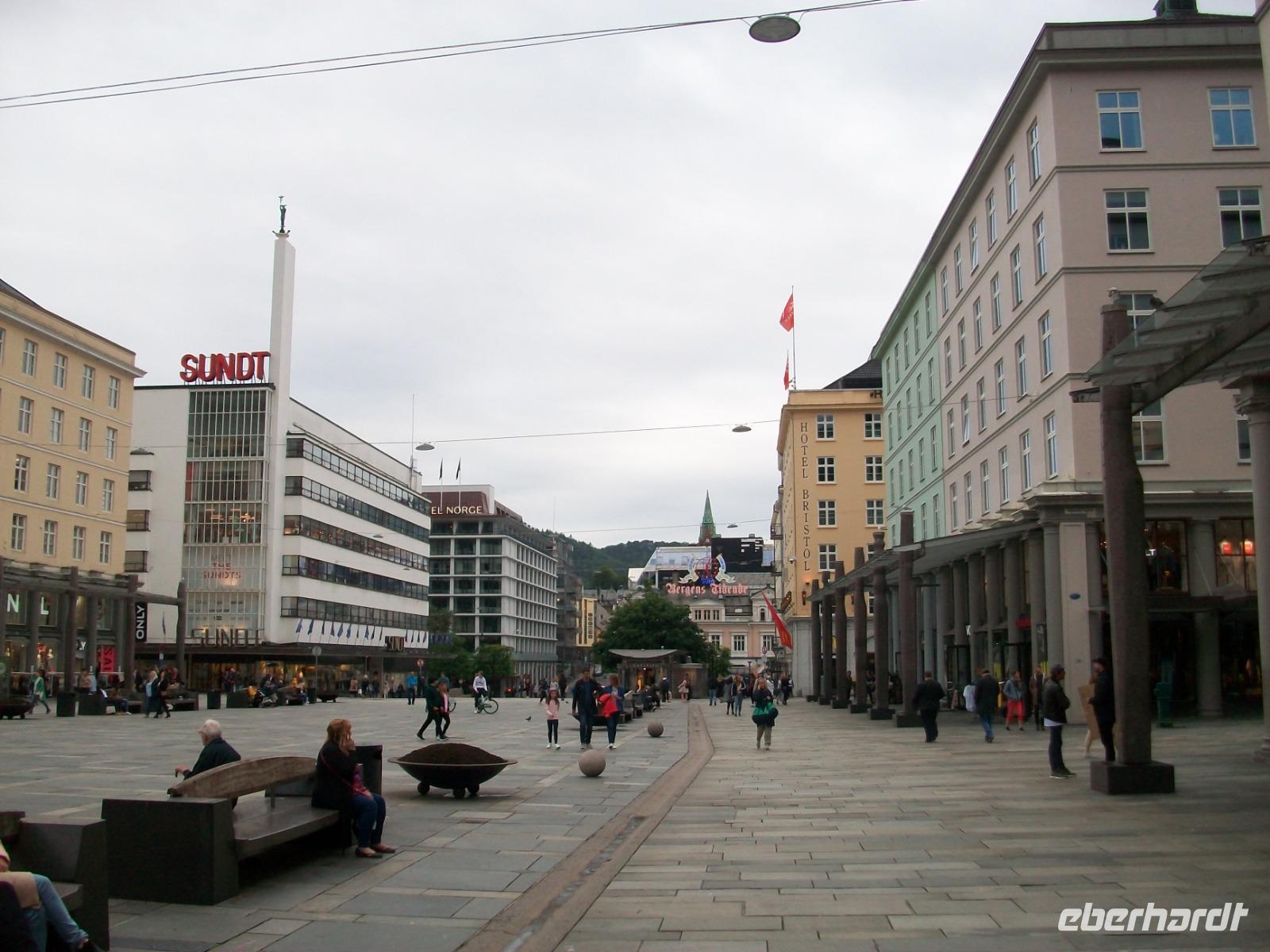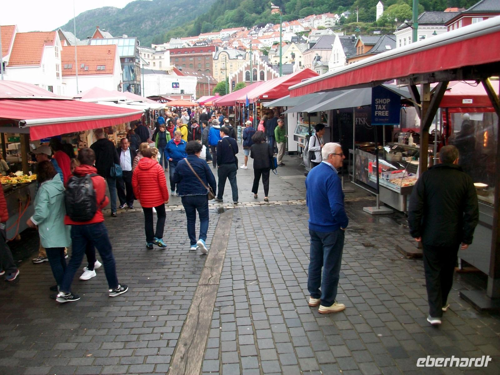 26.6.2019. Nach dem eigenen Erkunden Bergens am gestrigen Nachmittag haben wir heute Morgen Ed eingeladen uns seine Wahlheimat zu zeigen. Der Bus steht bereit, die Koffer sind verladen und es kann losgehen. Zunächst erkunden wir die Stadt mit dem Bus; kreuz und quer geht es durch die manchmal recht engen Straßen. Wir sehen die schönen Häuser, das Theater und die moderne Edvard - Grieg - Halle, benannt nach dem großen Sohn dieser Stadt. Dann gehen wir auf Erkundung im historischen Teil Bryggen. Hier hatte die Hanse einst eines ihrer Kontore und zwischen den bunten Holzhäusern fühlen wir uns gleich um Jahrhunderte in der Zeit zurückversetzt. Nach etwas Freizeit machen wir uns nun auf zu weiteren Erkundungen Norwegens. Wir verlassen die Küste und gelangen erneut in das reizvolle Hinterland. Außerordentlich sehenswert ist der Steindalfoss, ein beeindruckender Wasserfall der sein Wasser von einem Felsvorsprung sendet so dass der Besucher dahinter treten kann, außerordentlich beeindruckend!