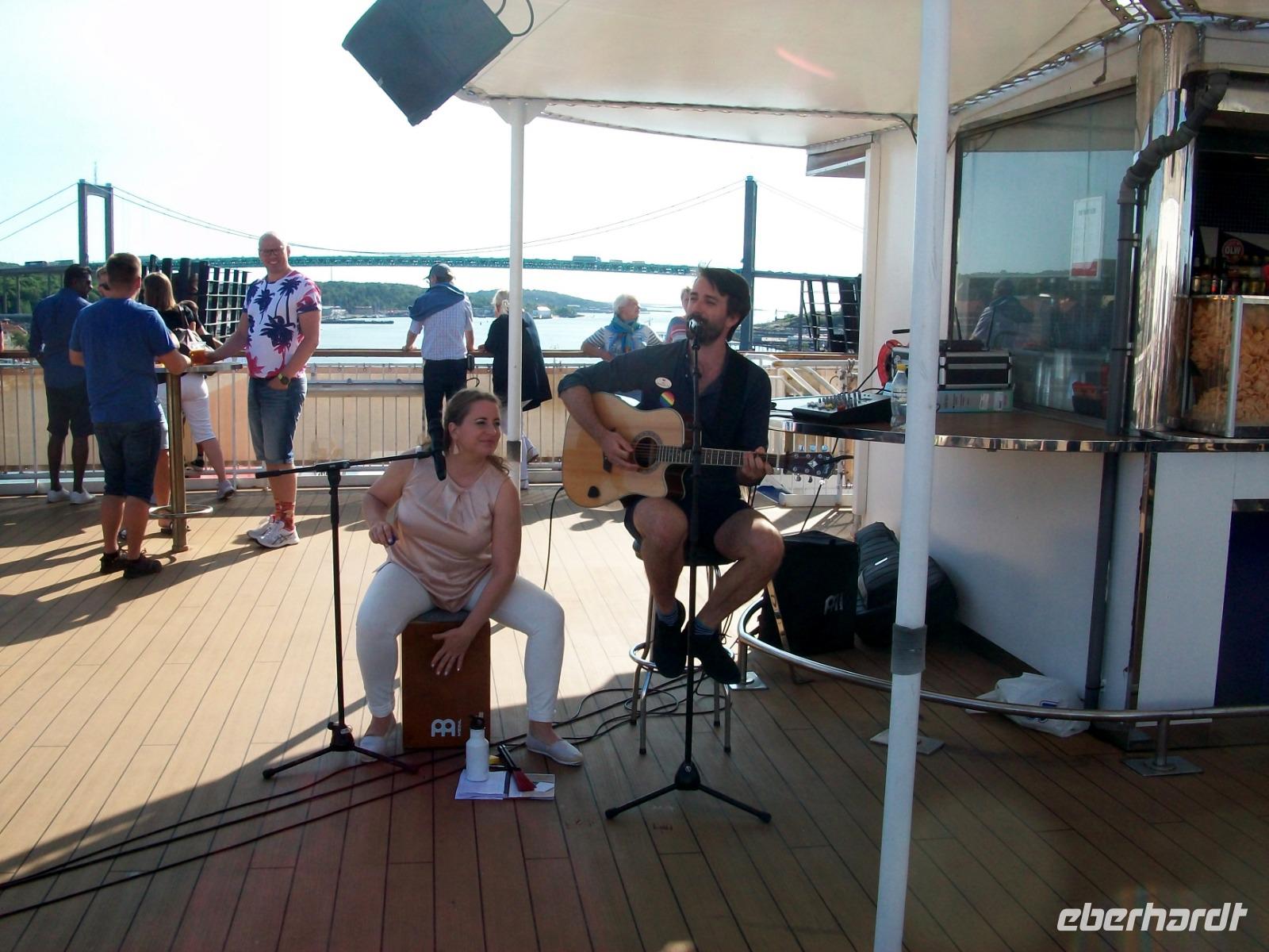19.6.2019. Der Urlaub ist da! Die Vorfreude war groß, nach kurzer Nacht und wenig Schlaf kann es nun endlich losgehen. Der Reisebus, unser Begleiter für die nächsten Tage, ist pünktlich gekommen um uns zunächst in den hohen Norden von Deutschland zu bringen. Der Wettergott hat uns heute einen heißen Tag beschert, die Sonne lacht von oben herab als wir uns aufmachen. Unser Weg führt von Dresden zunächst in Richtung Leipzig, dann sind wir in Richtung Potsdam unterwegs. Hier erreicht uns die Meldung dass die Autobahn gesperrt ist und somit müssen wir eine Umleitung fahren die uns viel Zeit kostet. Dann sind wir in Mecklenburg angelangt, weite Felder dehnen sich vor unseren Augen aus, das Getreide nimmt schon eine gelbe Farbe an, bald kann es geerntet werden. Nach einer letzten Pause nehmen wir dann endgültig Kurs auf unser Ziel Kiel. Auf der Landstraße überrascht uns ein Gewitterguss, aber als wir in Kiel anlangen ist vorerst das schöne Wetter zurück. Schnell sind die Formalitäten für die Fähre erledigt, neue Gäste werden begrüßt und somit können wir, nun als Reisegruppe komplett, an Bord gehen.