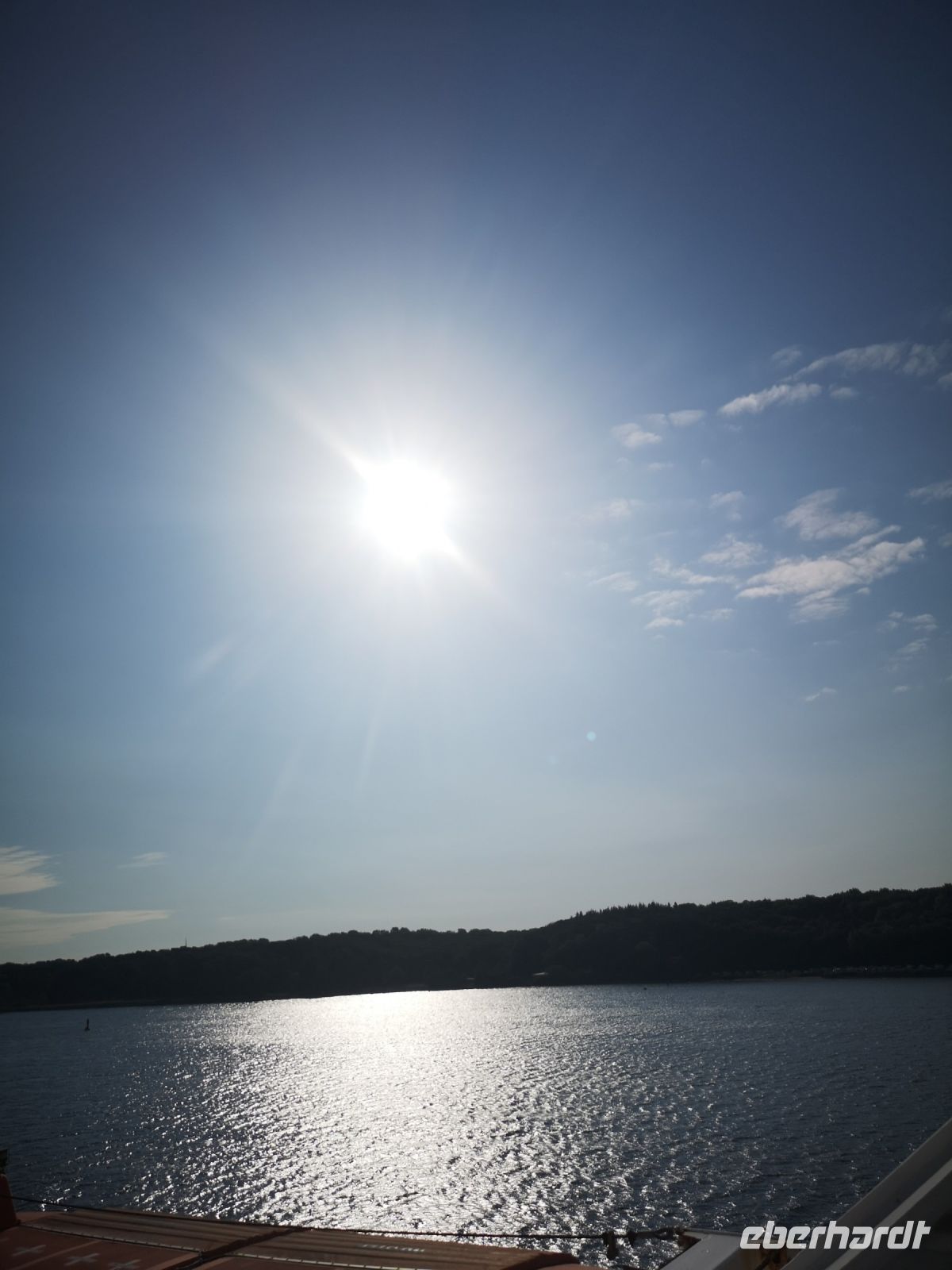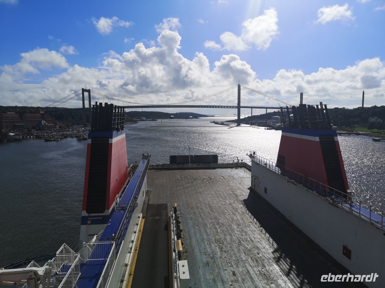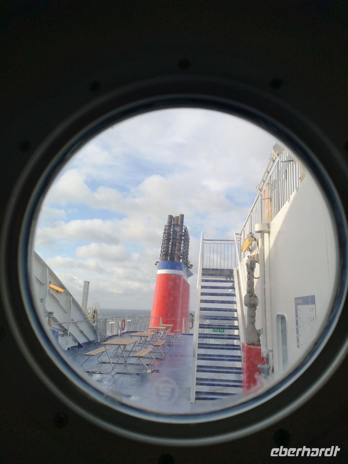 Vom Promenadendeck des Schiffes Stena Scandinavica lag uns Kiel vor den Füßen – die Wolkenformationen deuteten auf ein baldiges Gewitter, aber da, wo wir hinfuhren, da schien die Sonne. Zumindest vorübergehend. Aber genug, um uns in eine fröhliche Stimmung, voller Erwartungen zu versetzten.