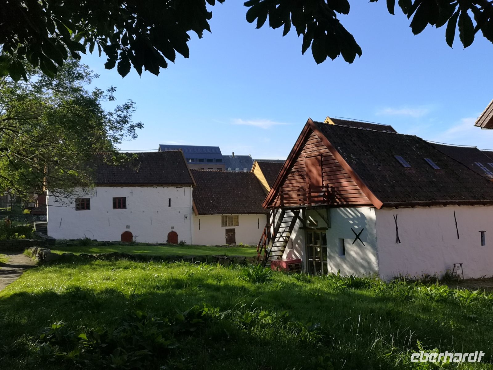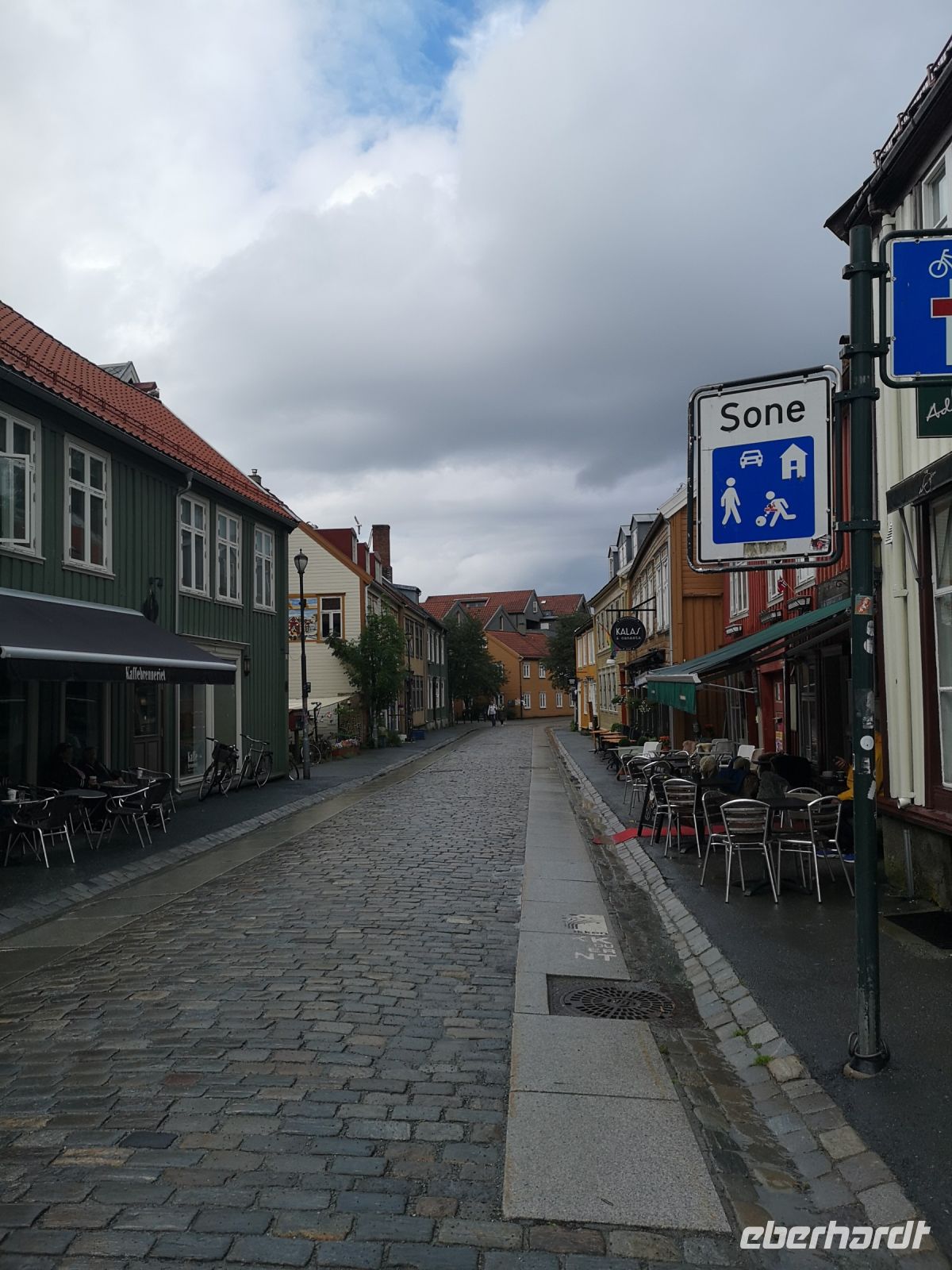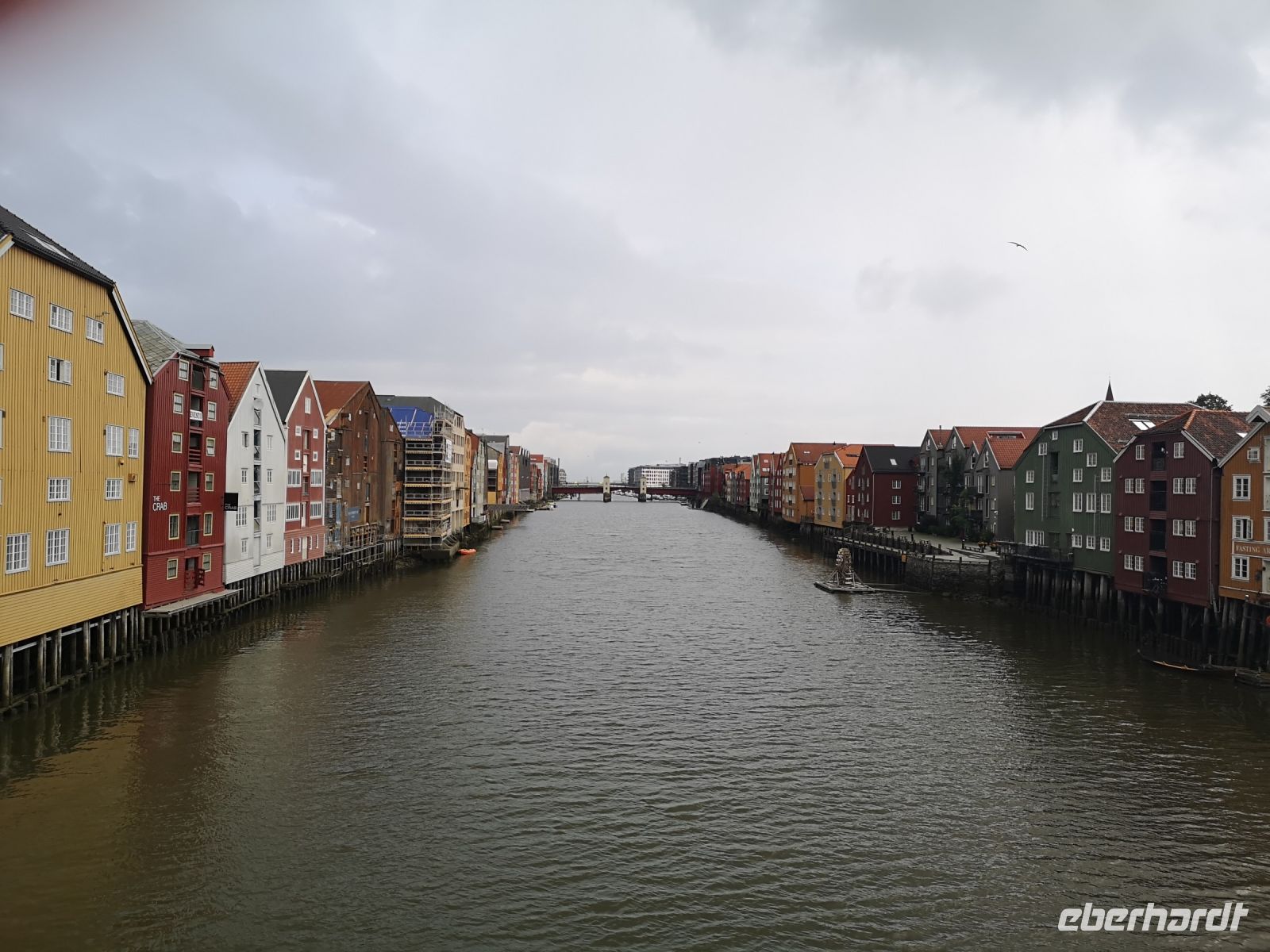 Momentan geht aber nichts über eine Zimtschnecke – aus weichem Teig, bestreut mit Zimt und Zucker, begleitet mit einer feinen Tasse Kaffee – man musste nur über die Alte Brücke nach Bakklandet, einst ein Arbeiterviertel, marschieren. Ein Regenguss gab noch einen zusätzlichen Grund, das erste Kaffeehaus aufzusuchen. Aber so schnell als der Regen gekommen war, hörte er auch wieder auf und das Panoramabild von Brygge von Trondheim konnte man doch im trockenen bewundern.