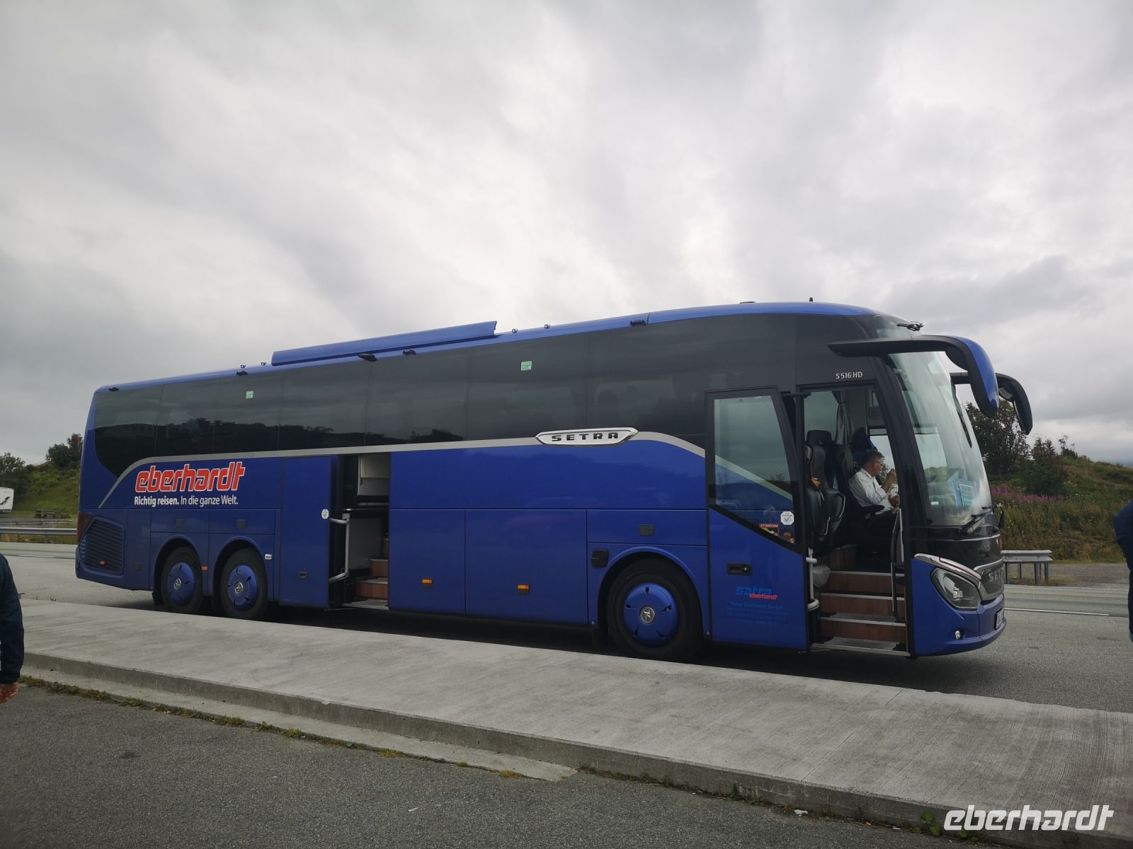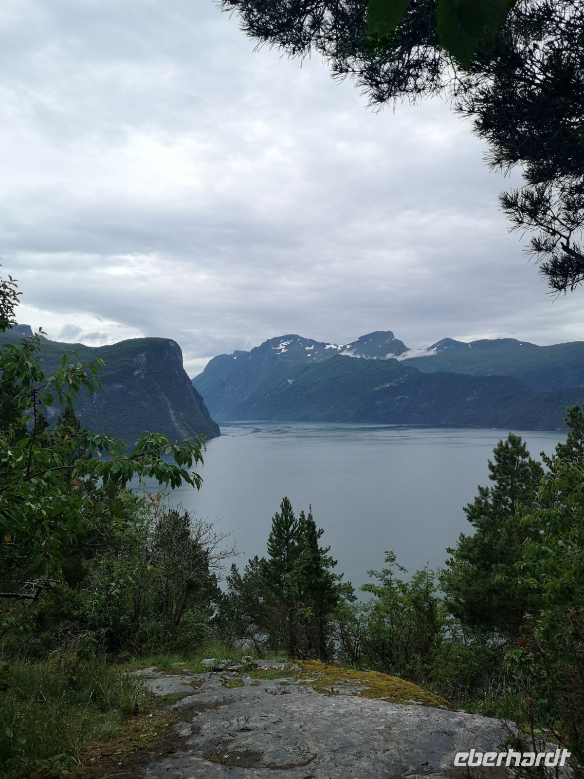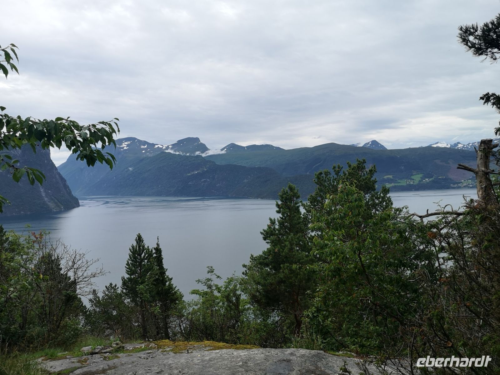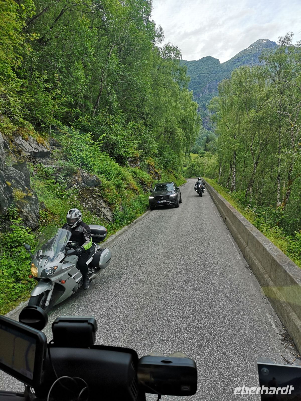 Schon von weiten sah ich die Nebelschwaden tief über dem Geiranger Ort hängen. Flydalsjuvet war nicht zu erkennen. Ich hatte es mir so gewünscht, meinen Gästen den wunderschönen Blick über die Ortschaft und den Fjord zu bieten, aber die Hoffnung darauf schwand mit jedem Meter, den wir hoch auf der Geirangerstrasse geschafft haben. „Na ja, zumindest Königin Sonja´s Stuhl musste man sehen“ habe ich mir gedacht, aber siehe mal, ein Wunder: die Nebelschwaden rissen für einigen Minuten auf und der Fjord präsentierte sich vor unseren Augen in aller Pracht. Ob man dieselbe große Freude und Dankbarkeit verspüren würde, wenn man die ganze Zeit nur ein schönes Wetter gehabt hätte?