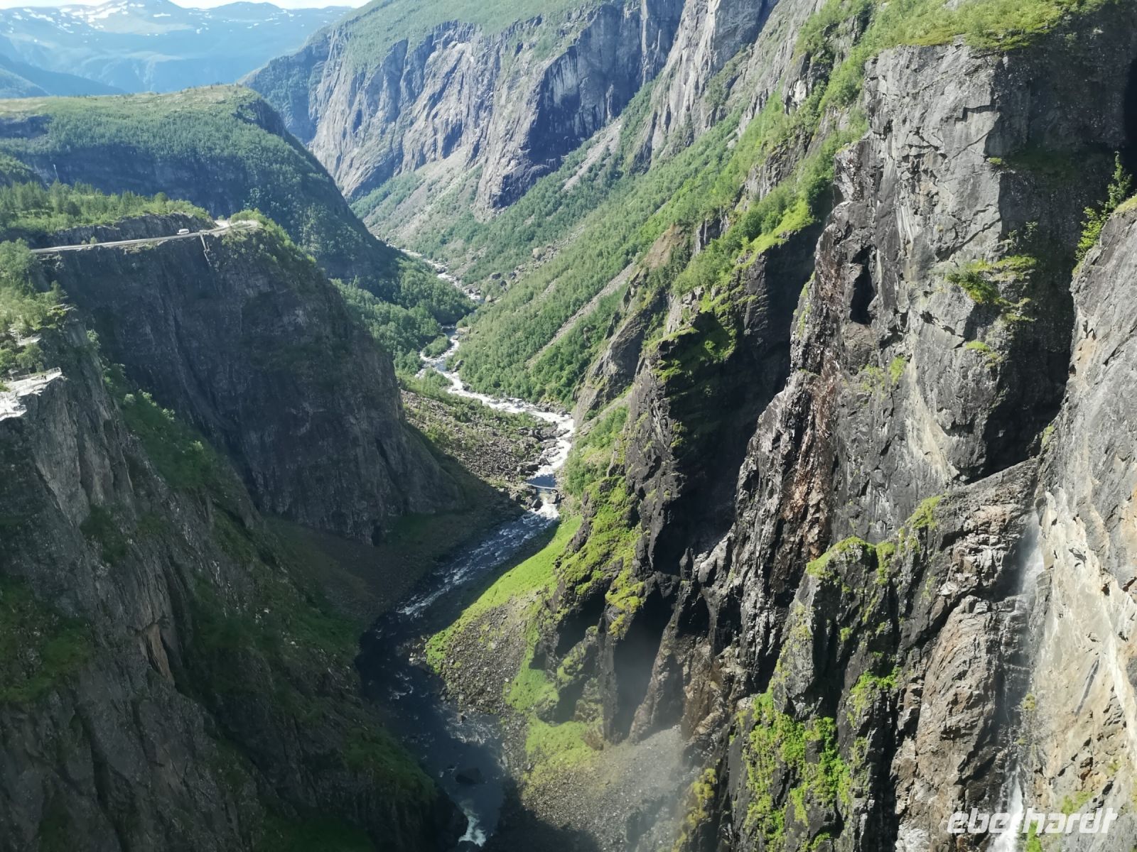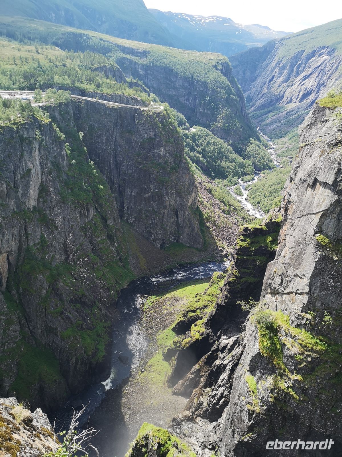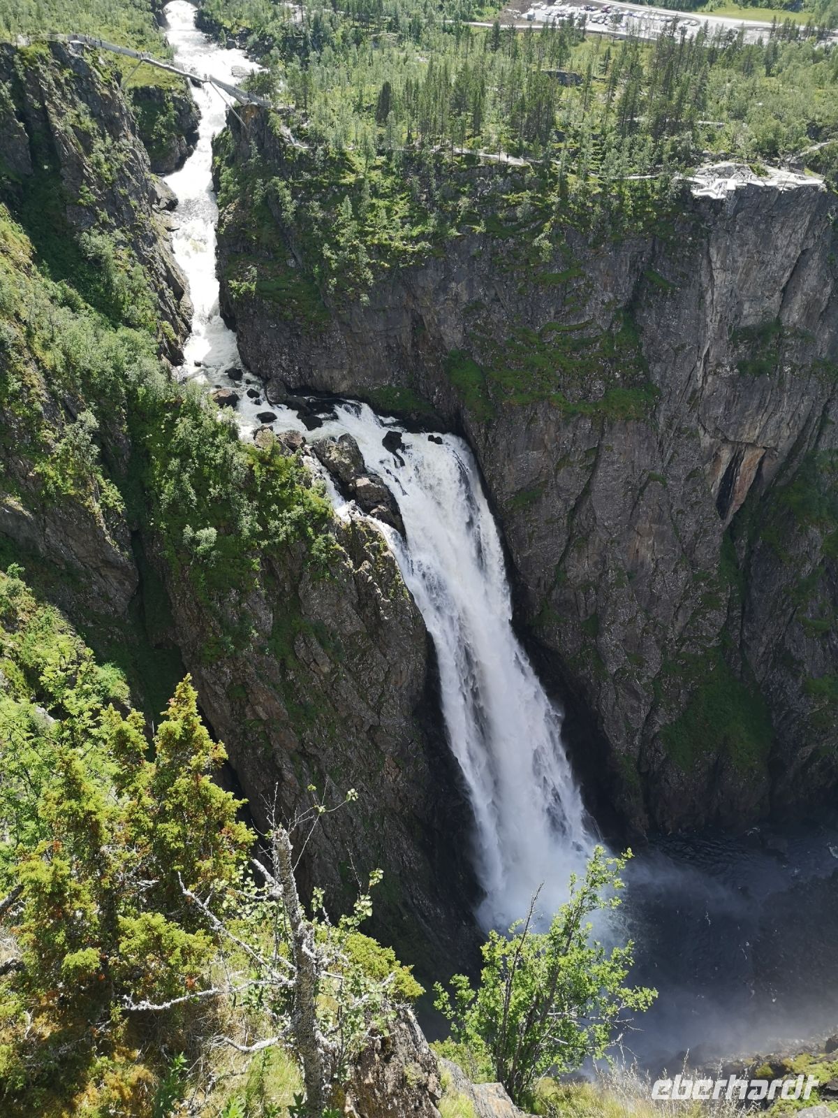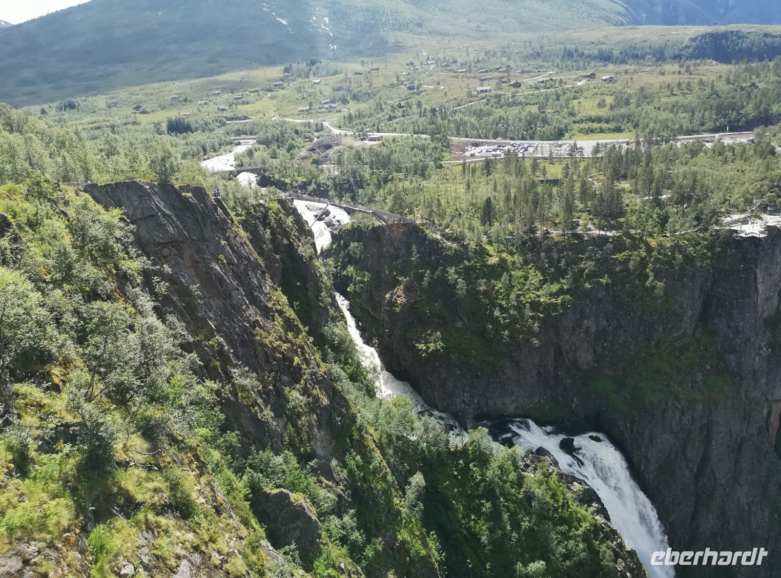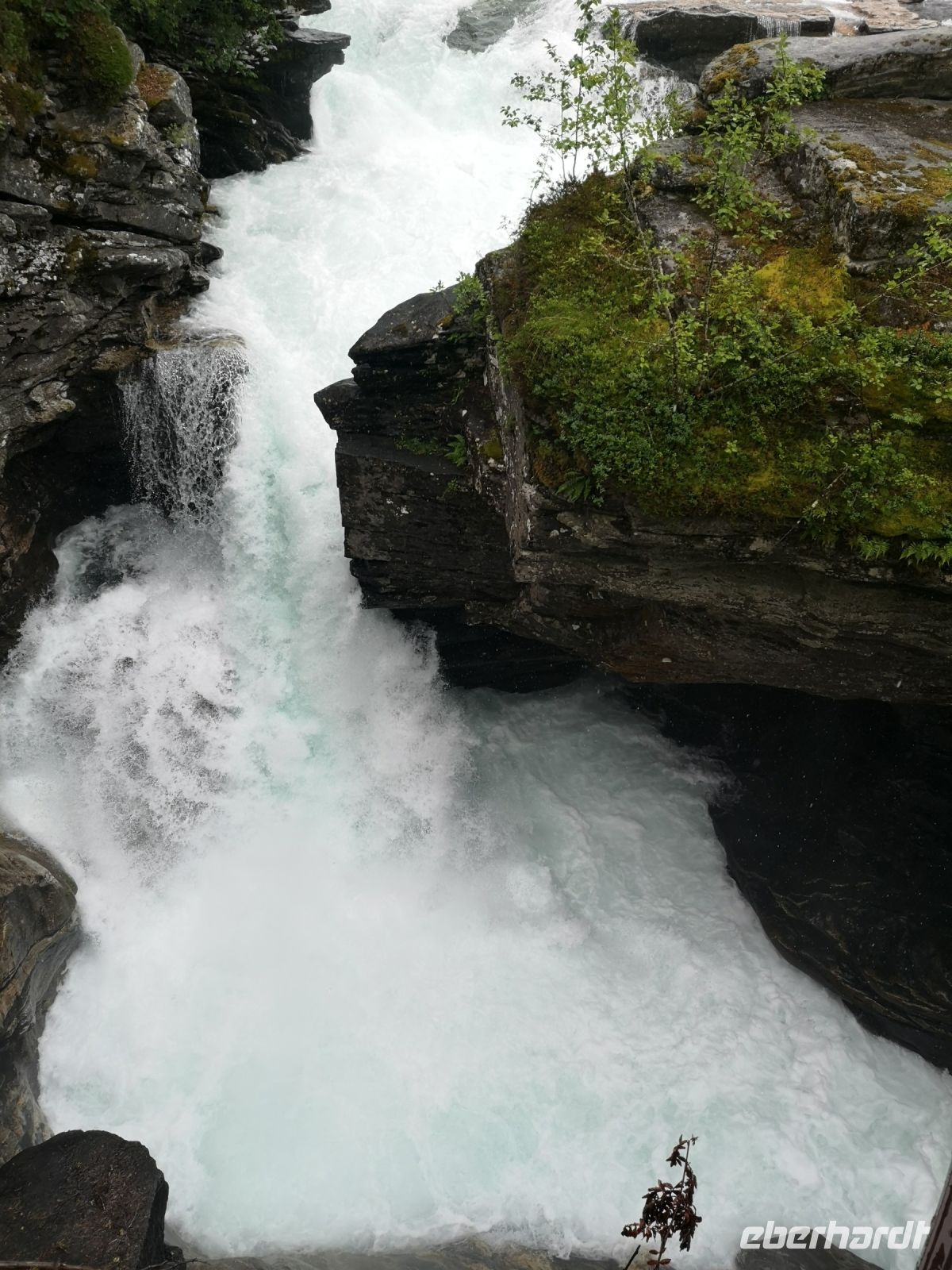 Viele Wasserfälle haben wir bis dato schon gesehen – kleine, große, schmale, breite, mehrsträhnige…. usw. Aber Vöringfossen war eindeutig die Krönung von allem. Was der Donner der gewaltigen Wassermengen vorausgeht, offenbart sich uns dann peu a peu, je länger man den Pfad am Rande der Schlucht folgte: die Wasserfallkaskade in schwindelnder Höhe endet in einem tiefen Canyon als Geburtsort eines Flusses. Dies und später die gefühlt endlose Hardangervidda, die größte Hochebene Europas, vermittelt einem unmissverständlich, wie klein und vergänglich der Mensch gegenüber der Natur ist – fordert sozusagen eine Besinnung und gleichzeitig die Erdung, Bindung auf das, wovon wir ein Teil sind.