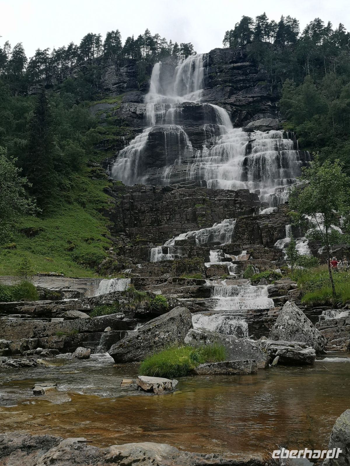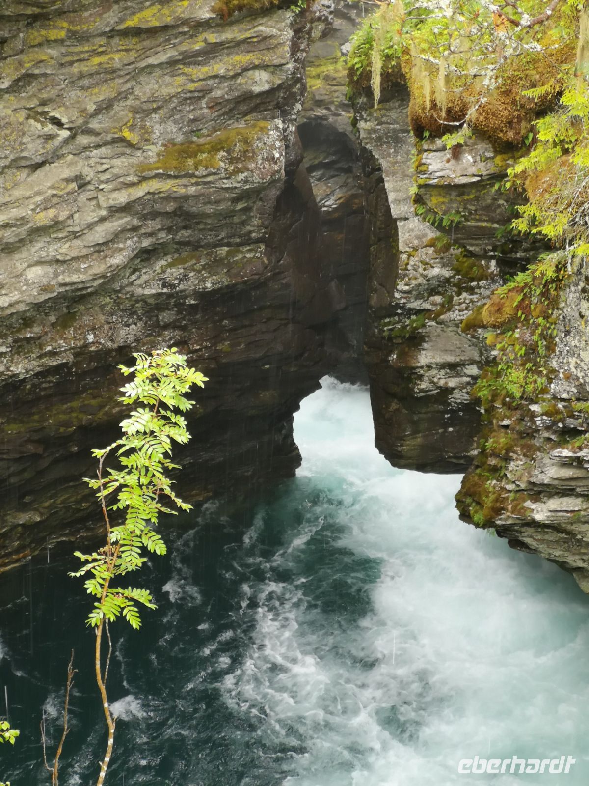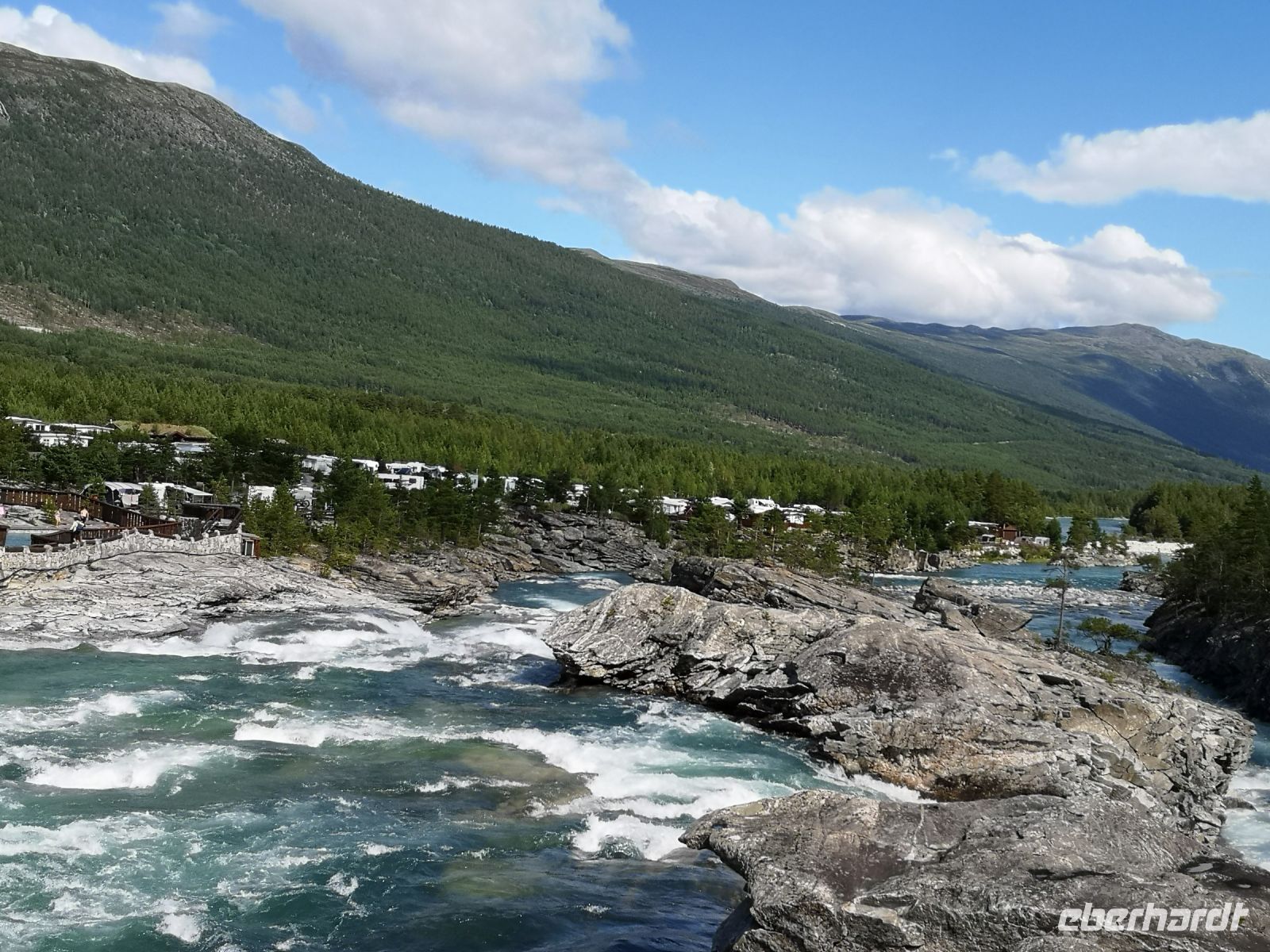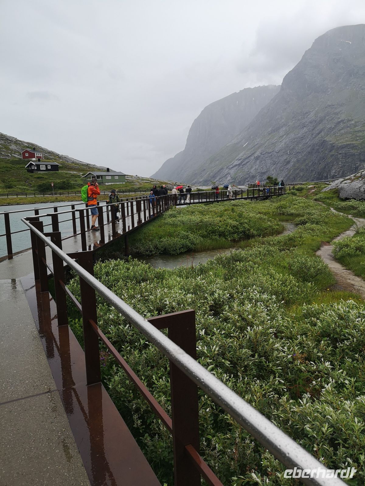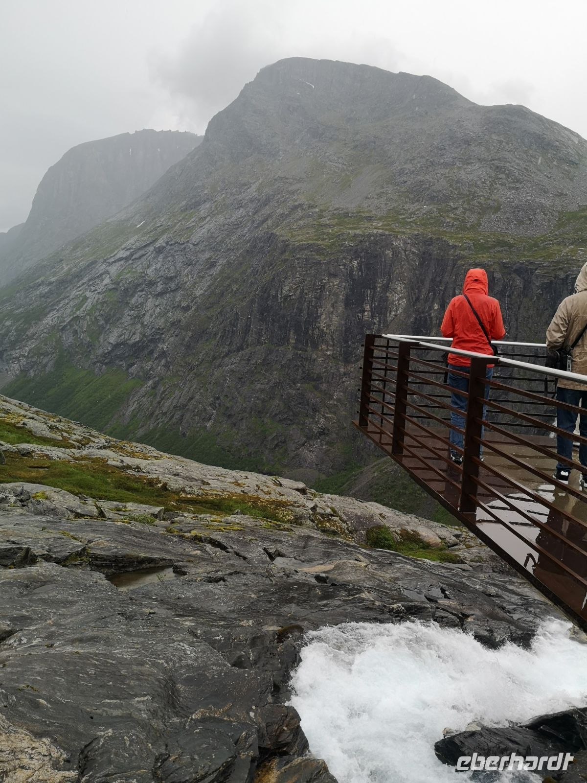 Viele Wasserfälle haben wir bis dato schon gesehen – kleine, große, schmale, breite, mehrsträhnige…. usw. Aber Vöringfossen war eindeutig die Krönung von allem. Was der Donner der gewaltigen Wassermengen vorausgeht, offenbart sich uns dann peu a peu, je länger man den Pfad am Rande der Schlucht folgte: die Wasserfallkaskade in schwindelnder Höhe endet in einem tiefen Canyon als Geburtsort eines Flusses. Dies und später die gefühlt endlose Hardangervidda, die größte Hochebene Europas, vermittelt einem unmissverständlich, wie klein und vergänglich der Mensch gegenüber der Natur ist – fordert sozusagen eine Besinnung und gleichzeitig die Erdung, Bindung auf das, wovon wir ein Teil sind.