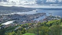 Bei dem tollen Wetter entscheiden sich einige von uns mit der einzigen Standseilbahn Skandinaviens zum 320 Meter hohen Berg Fløyen hinauf zu fahren. Vom sogenannten „Dach von Bergen" hat man eine fantastische Aussicht über die Stadt, den Schiffsverkehr, die Fjorde und nicht zuletzt die umliegenden Inseln.