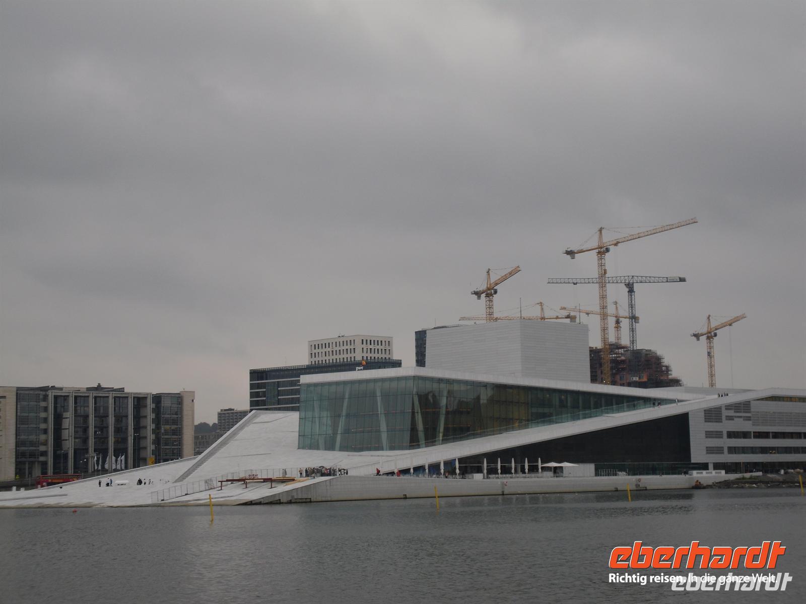 Die Brücke wurde 1966 eingeweiht, ist 900 Meter lang und so hoch, dass Schiffe mit einer Masthöhe von bis zu 45 Meter passieren können. Der E6 folgen wir nun in Richtung schwedisch-norwegischer Grenze. Gegen Mittag erreichen wir Halden, den norwegischen Grenzort. Am Nachmittag kommen wir in Oslo, der Hauptstadt Norwegens, an. Während einer Stadtführung lernen wir die wichtigsten Sehenswürdigkeiten der Stadt kennen. Wir sehen unter anderem das Neue Opernhaus, das seit April 2008 die Spielstätte der Norwegischen Oper ist. Des weitern fahren wir am Königlichen Palast vorbei und besuchen den berühmten Vigeland-Park. Der norwegische Künstler Gustav Vigeland hat hier Beeindruckendes geschaffen. Wer in Oslo den Skulpturenpark betritt, ist für einen Moment atemlos vor Staunen! Mit dem 32 Hektar großen Areal