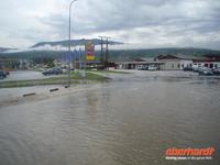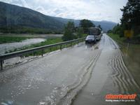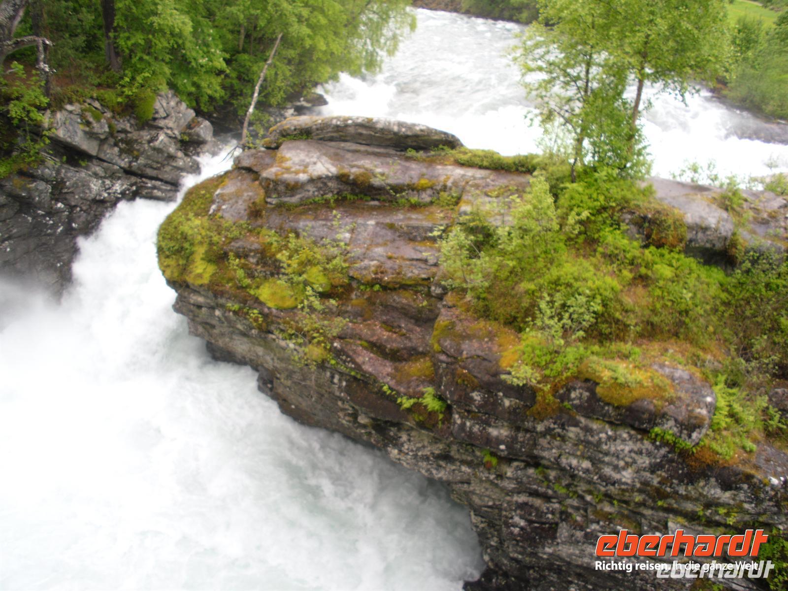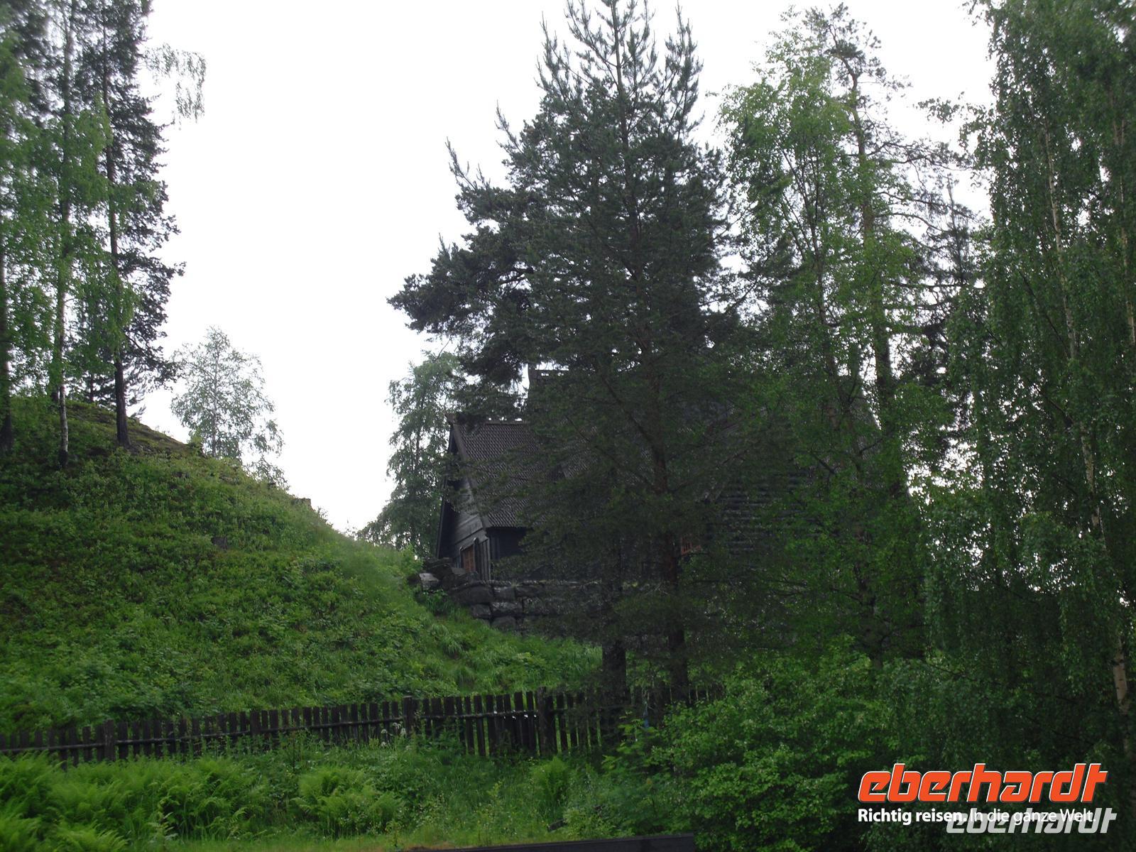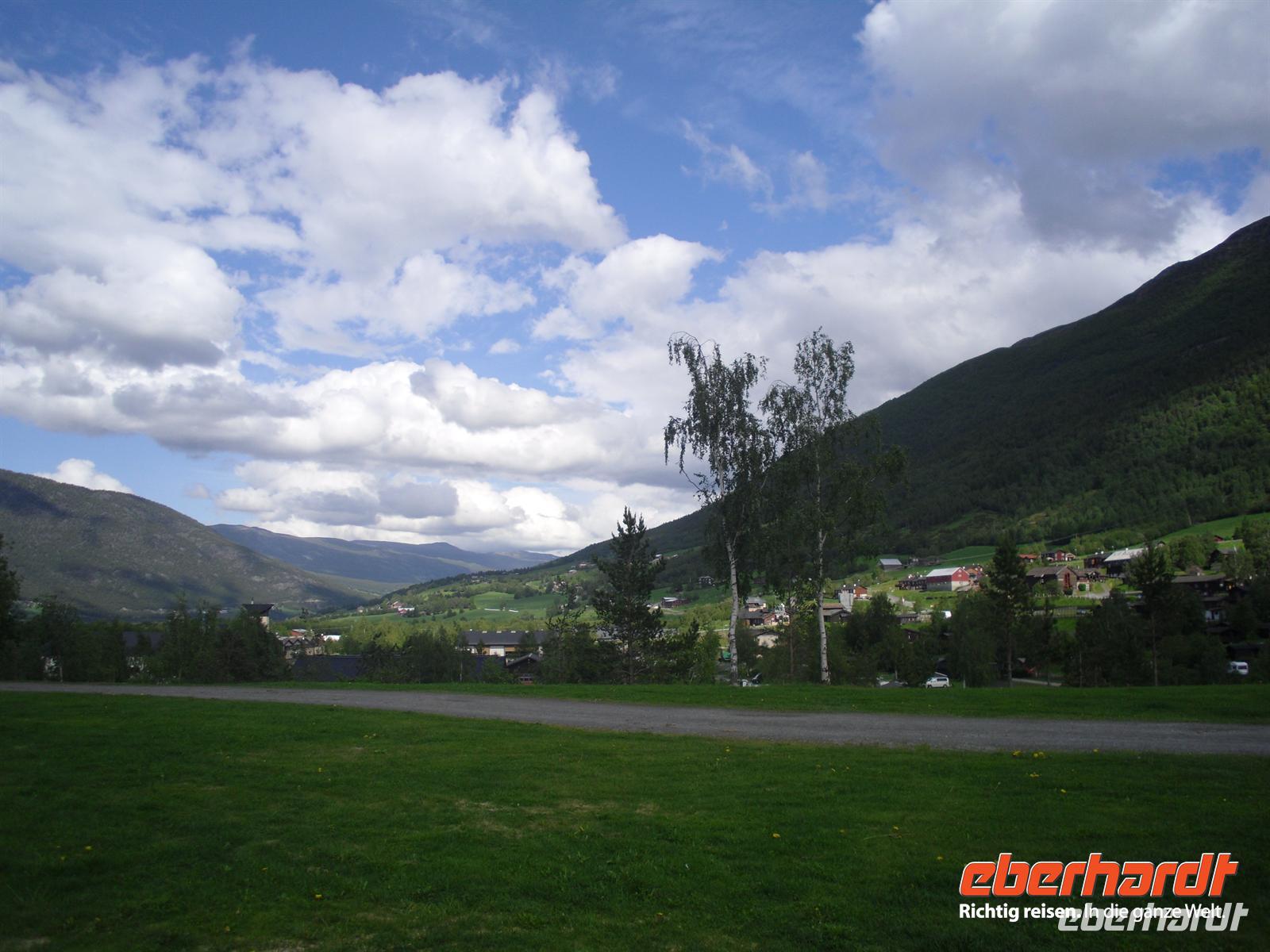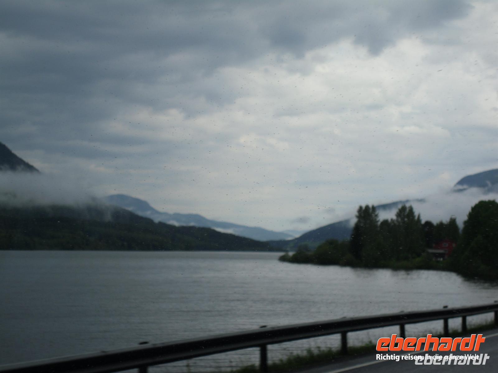 Die Stadt war 1994 Austragungsort der Olympischen Winterspiele und dafür wurden damals zahlreiche neue Sportanlagen errichtet. Anschließend geht es weiter zum Freilichtmuseum Maihaugen. In Maihaugen erleben wir lebendige Geschichte, hier findet man Häuser aus dem Dorf und aus der Stadt vom Mittelalter bis zum heutigen Tag. Im Dorf selbst kann man mit den Bewohnern an der täglichen Arbeit in den 1890er Jahren teilnehmen. Gegen Mittag fahren wir bereits weiter, denn schließlich liegt noch ein weiter Weg bis Trondheim vor uns! Schon wenige Kilometer nördlich von Lillehammer bemerken wir überflutete Wiesen im Gudbrandstal, machen uns aber vorerst noch keine weiteren Gedanken darüber! Gegen 13:00 Uhr ist es dann erstmals vorbei mit unserer landschaftlich beschaulichen Fahrt durch das sogenannte „Tal der Täler“, das vom Fluss Lagen bestimmt wird. Der Lagen ist beängstigend voll mit Wasser und teilweise stehen sogar Häuser und Campingplätze mitten im Wasser - unglaublich, was hier los ist! Das Wasser stürzt sich von den umliegenden Bergen hinunter in den Lagen und die Situation ist teilweise nicht ganz unter Kontrolle, selbst die örtliche Polizei kann uns keine konkreten Auskünfte geben.