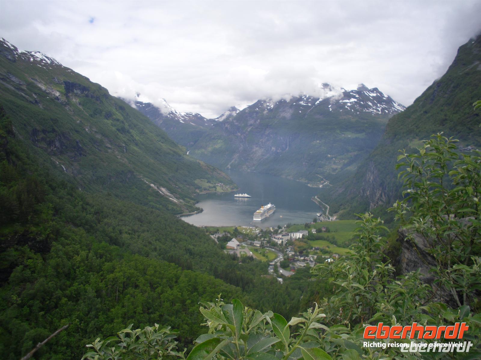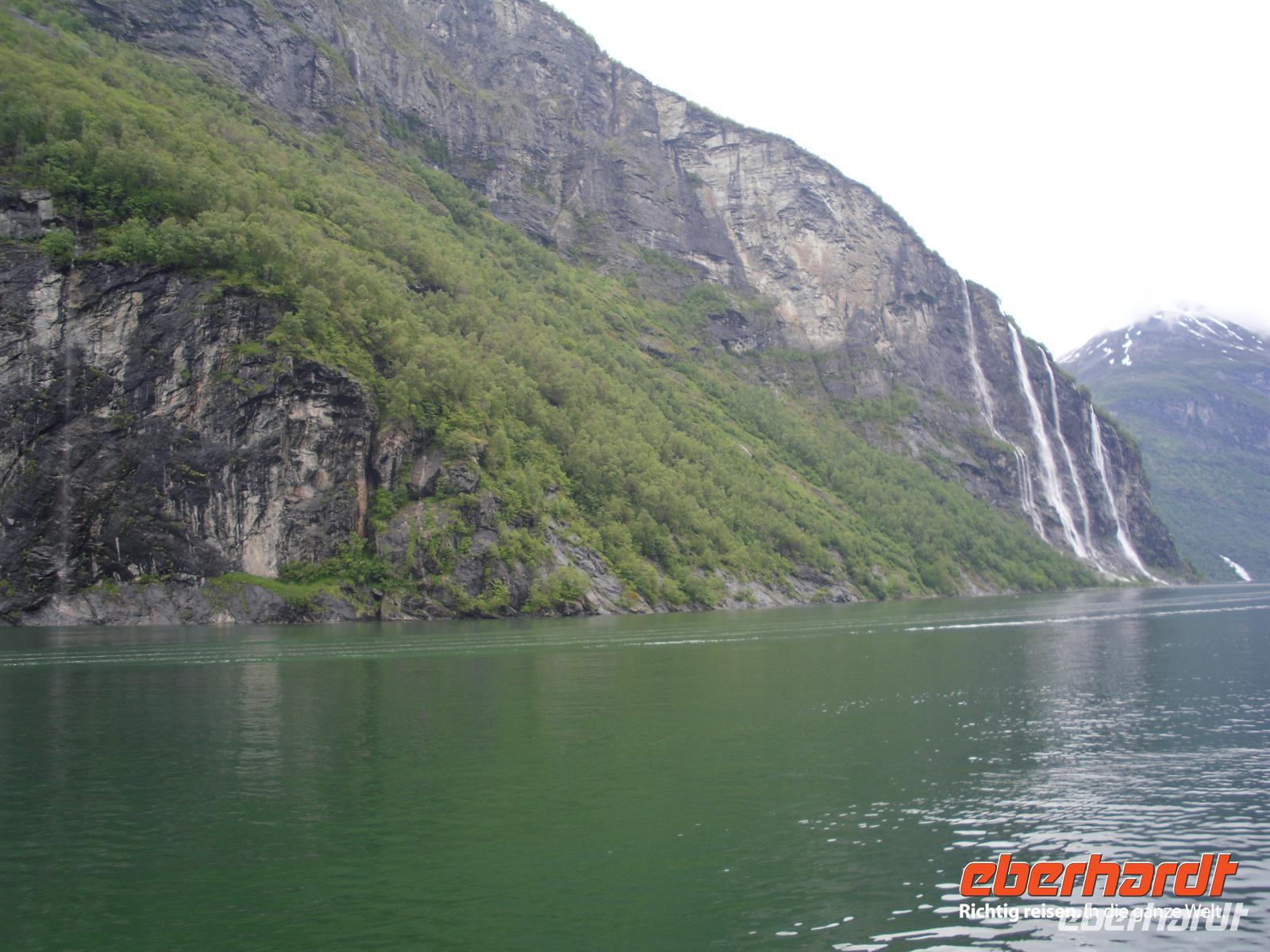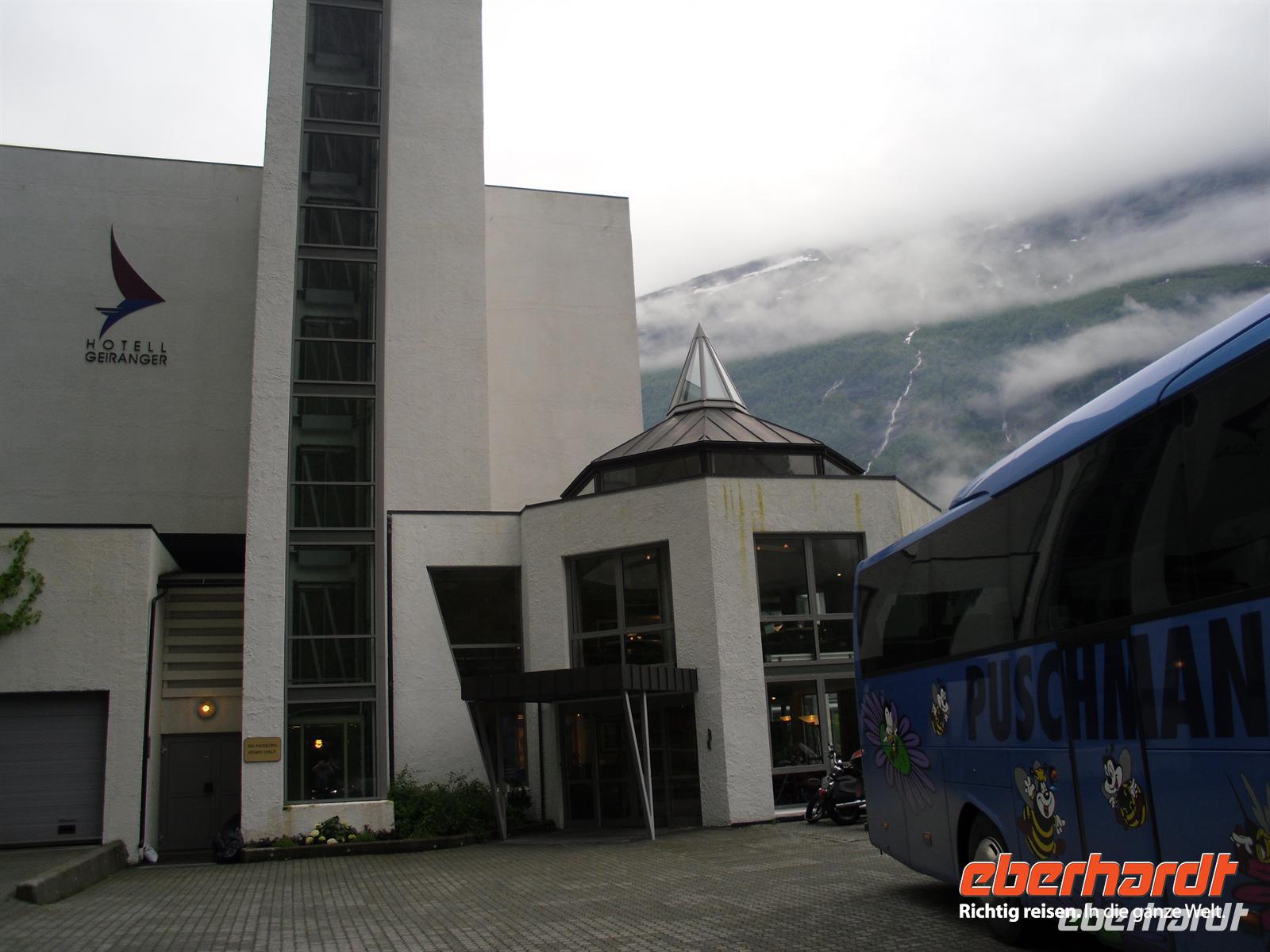 Unser nächstes Ziel ist Hellesylt, von wo wir zu einer etwa einstündigen Schifffahrt auf dem Geirangerfjord aufbrechen. Der Geirangerfjord ist etwa 16 Kilometer lang und das Aushängeschild des norwegischen Tourismus schlechthin. Vom Schiff aus sehen wir die berühmten Wasserfälle „Die Sieben Schwestern“, „Brautschleier“ und „Freier“ - diese Fahrt ist einzigartig, denn auch das Wetter spielt nun endlich mit! Von Geiranger aus geht es mit dem Bus hinauf zum Dalsnibba, dem berühmten knapp 1.500 Meter hohen Aussichtsberg oberhalb des Geirangerfjordes. Leider hängen ein paar Wolken über dem Gipfel, aber schon die Auffahrt ist lohnenswert und mit herrlichen Panoramablicken versehen. Anschließend geht es hinunter ins Ottatal und weiter nach Lom. In Lom besichtigen wir am späten Nachmittag eine der bedeutendsten noch existierenden Stabkirchen Norwegens. Wer ist nicht fasziniert, wenn er vor einer alten, völlig aus Holz gebauten Stabkirche steht,
