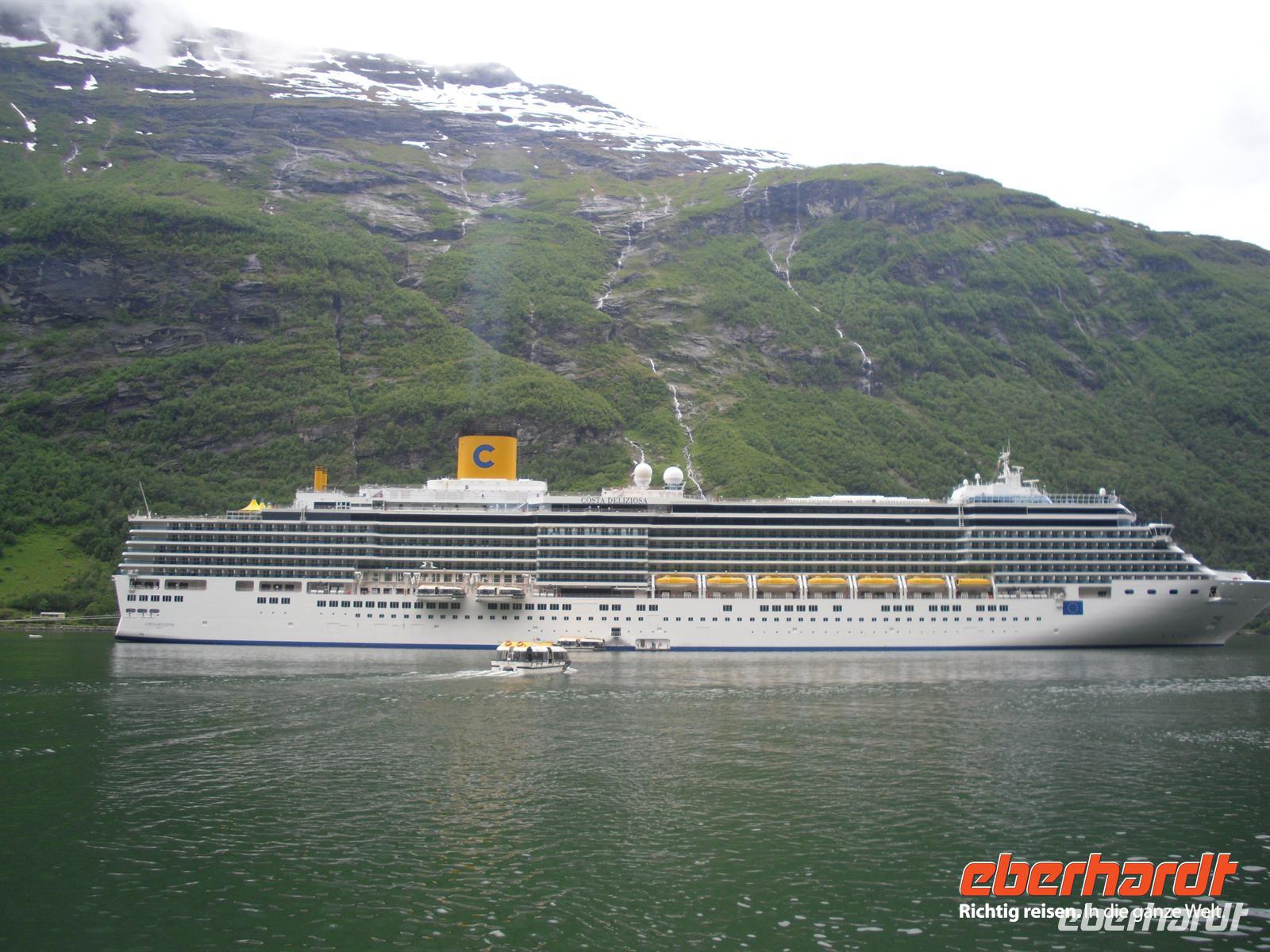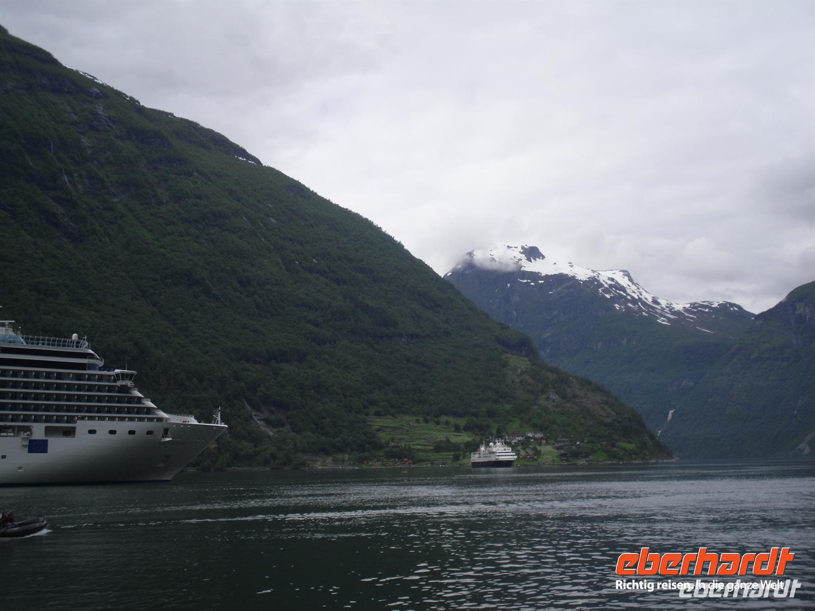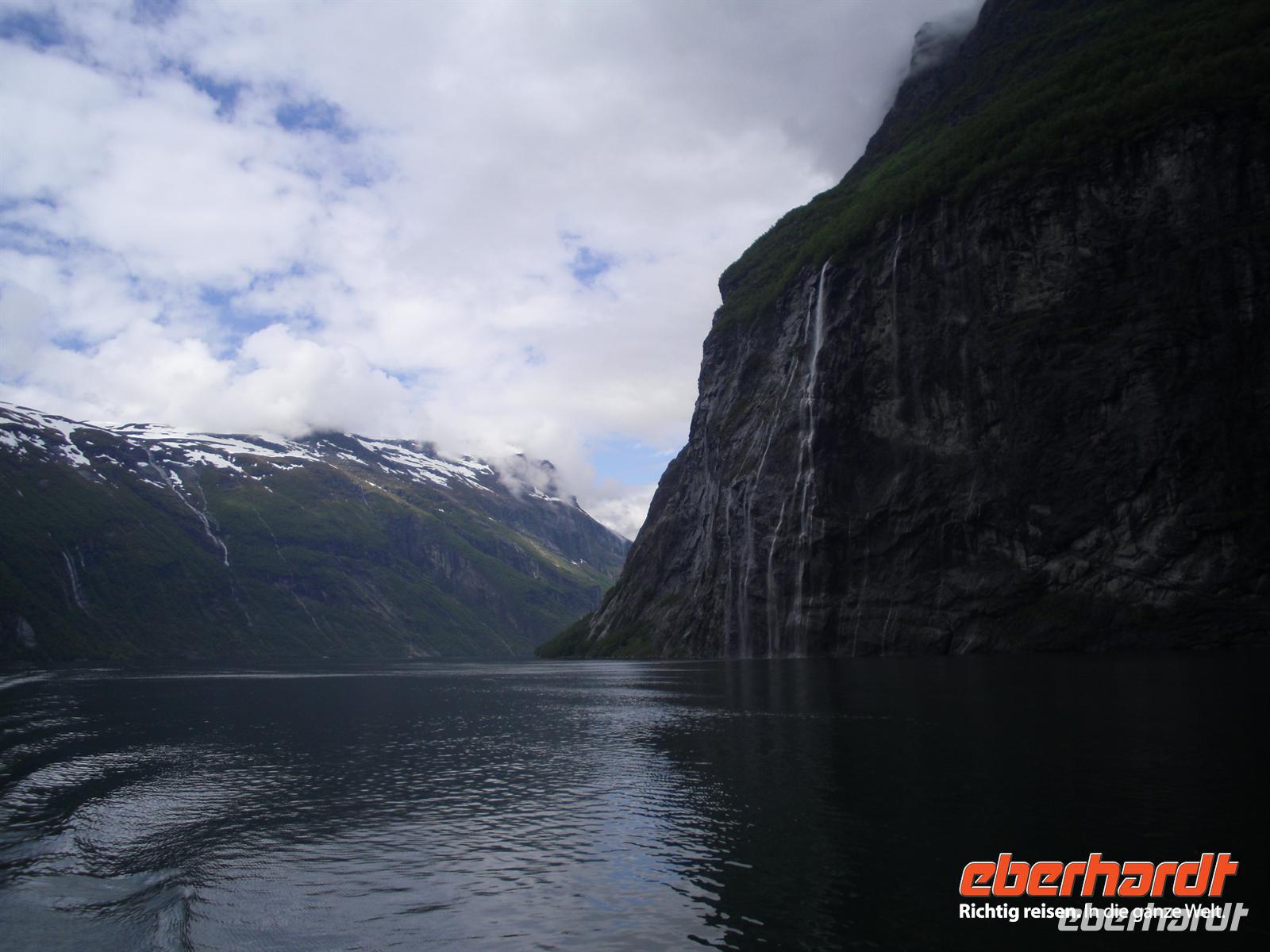Unser nächstes Ziel ist Hellesylt, von wo wir zu einer etwa einstündigen Schifffahrt auf dem Geirangerfjord aufbrechen. Der Geirangerfjord ist etwa 16 Kilometer lang und das Aushängeschild des norwegischen Tourismus schlechthin. Vom Schiff aus sehen wir die berühmten Wasserfälle „Die Sieben Schwestern“, „Brautschleier“ und „Freier“ - diese Fahrt ist einzigartig, denn auch das Wetter spielt nun endlich mit! Von Geiranger aus geht es mit dem Bus hinauf zum Dalsnibba, dem berühmten knapp 1.500 Meter hohen Aussichtsberg oberhalb des Geirangerfjordes. Leider hängen ein paar Wolken über dem Gipfel, aber schon die Auffahrt ist lohnenswert und mit herrlichen Panoramablicken versehen. Anschließend geht es hinunter ins Ottatal und weiter nach Lom. In Lom besichtigen wir am späten Nachmittag eine der bedeutendsten noch existierenden Stabkirchen Norwegens. Wer ist nicht fasziniert, wenn er vor einer alten, völlig aus Holz gebauten Stabkirche steht,