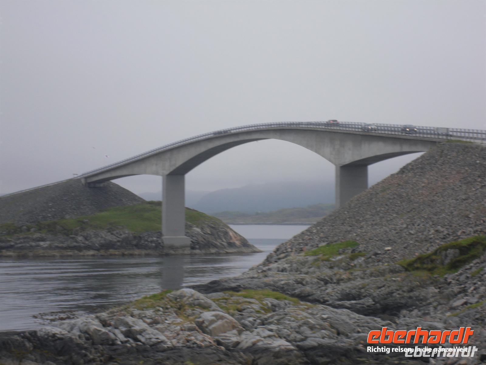 Die Trolle sind gedrungene, plumpe, erdfarbene Wesen mit mächtigen Knollennasen; manche haben einen Schwanz und einen zotteligen Pelz. Die Kleider sind grün wie das Moos an einem Waldsee oder grau wie die Flechten auf den Fjellen. Es ist nicht leicht, Bekanntschaft mit einem Troll zu machen - das gelingt angeblich nur um die Mittagszeit geborenen Sonntagskindern oder den neunten Kindern von Eltern, die selbst neunte Kinder ihrer Eltern waren. Und das ist auch gut so. Es gibt nämlich ganz unterschiedliche Trolle. Die einen sind den Menschen freundlich und wohlgesonnen. Sie sind gutmütige Geschöpfe, die oft in der Nähe von Menschen wohnen und nachbarschaftlichen Umgang pflegen. Ihnen zu begegnen ist eine Freude und ein besonderes Erlebnis. Andere Trolle aber sind sehr böse, und vor ihnen muss man sich in Acht nehmen. Die norwegischen Bauern wissen ein Lied davon zu singen, wenn das Trollweib zur Saatzeit als Wirbelwind über den Acker fegt und mit ihrem Kleid die Saat auffängt. Auch vertauschen manche Trolle die Kinder der Menschen und legen an ihrer Stelle ein Trollkind unter, einen missgestalteten Wechselbalg. Es gibt also viel zu berichten über die Trolle..., wir müssen aber weiter. Über Andalsnes fahren wir am Romsdalsfjord entlang und weiter bis Afarnes, hier nehmen wir dann die Fähre über den Langfjord nach Sorsnes. Nun erwartet uns bald der nächste Höhepunkt unserer Reise - die Fahrt auf der Atlantikstraße!