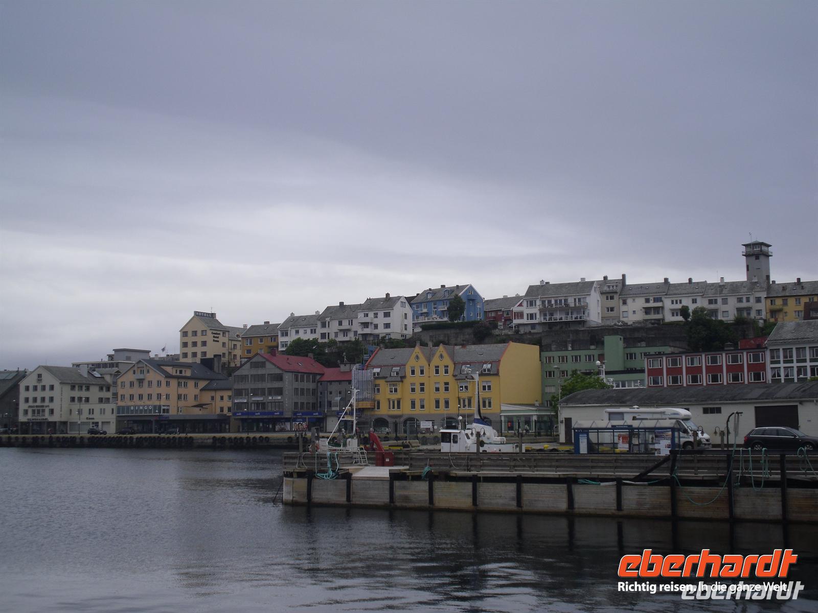 Kristiansund ist für uns heute der Ausgangspunkt für die Fahrt mit der Hurtigrute. Für die Bewohner der Küste Norwegens ist die Hurtigrute (= Schnelllinie“) immer noch so etwas wie die Lebensader, denn die robusten, zuverlässigen Schiffe transportieren die Post, Lebensmittel und andere Fracht sowie Personen. Wer wie wir als Tourist reist, findet keine idealere Möglichkeit, den Alltag der Menschen im Küstenbereich hautnah mitzuerleben. Pünktlich um 17 Uhr legt unser Hurtigrutenschiff MS Lofoten (Baujahr 1964) ab und bringt uns innerhalb von etwa knapp vier Stunden nach Molde. Dort angekommen beziehen wir sofort unsere Zimmer im Quality Hotel Victoria, denn dieses befindet sich direkt gegenüber des Hurtigrutenkais. Es ist schon spät und alle haben mittlerweile Hunger - gerade deswegen erfreuen wir uns wieder einmal an einem leckeren Skandinavischen Abendbuffet. Ein langer und erlebnisreicher Tag geht nun zu Ende...