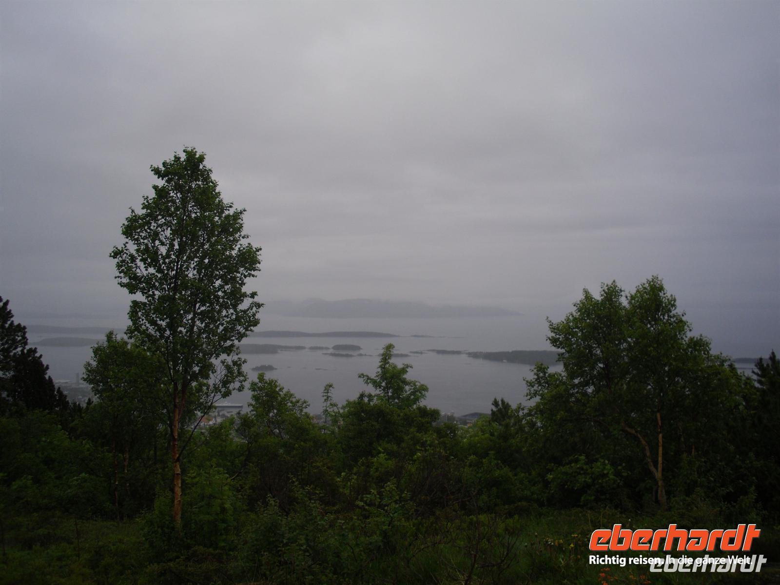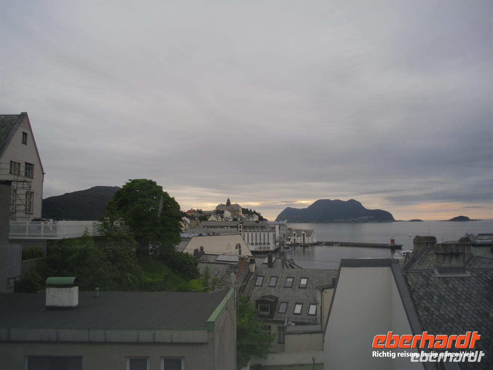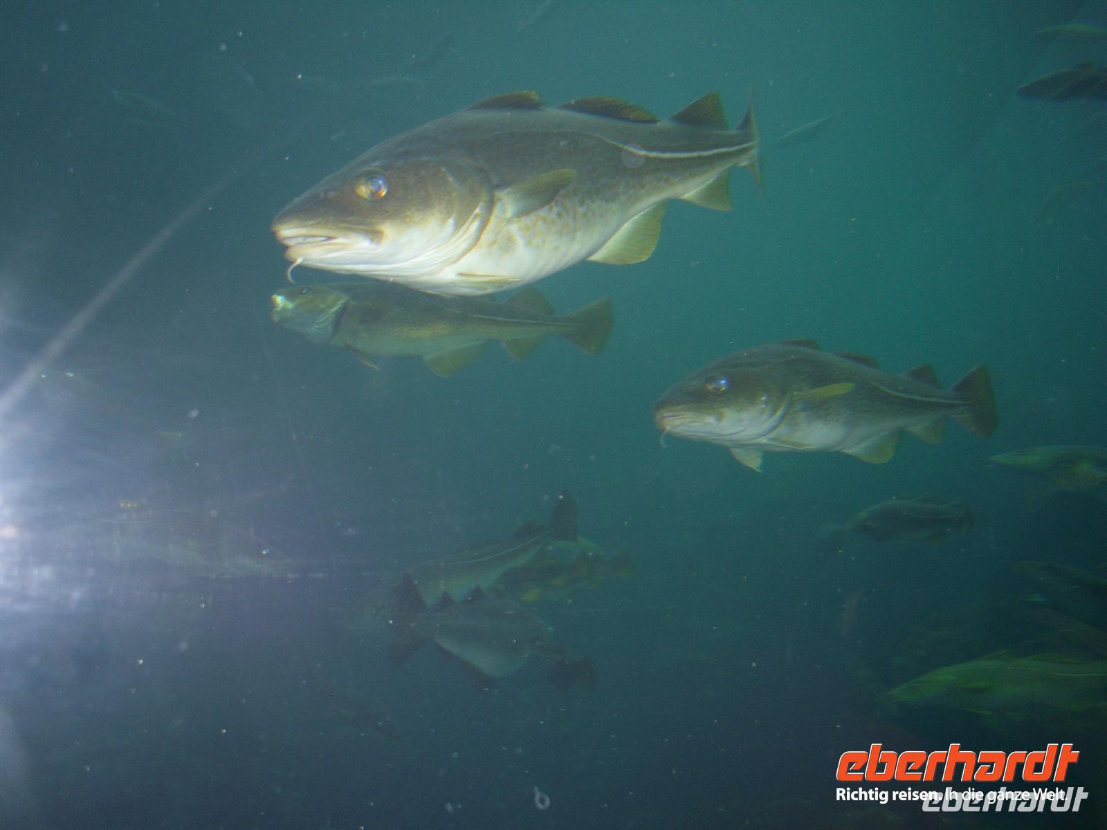 Die Fahrt führt uns heute dann bei leider vorerst wieder einmal regnerischem Wetter zum Varden, dem 407 Meter hohen Hausberg von Molde. Hier oben kann man bei schönem Wetter das bekannte „Moldepanorama“ genießen, denn man hat einen herrlichen Blick über den Fjord und auf die schneebedeckten Gipfel der Romsdaler Alpen. Heute müssen wir alle allerdings eine große Portion Phantasie mitbringen, um uns dieses Panorama vorzustellen...! Anschließend fahren wir zur Fähranlegestelle in Molde und setzen schließlich innerhalb von etwa 35 Minuten über den Romsdalsfjord nach Vestnes über. Nun sind es nur noch wenige Kilometer bis nach Alesund. Die Gruppe ist sich einig und daraufhin besuchen wir heute Nachmittag zusätzlich den etwa drei Kilometer außerhalb des Stadtzentrums von Alesund gelegenen Atlantikpark. Dies ist eine der größten Aquarien in Nordeuropa. Hier wird das Leben im Meer und in den Fjorden gezeigt.