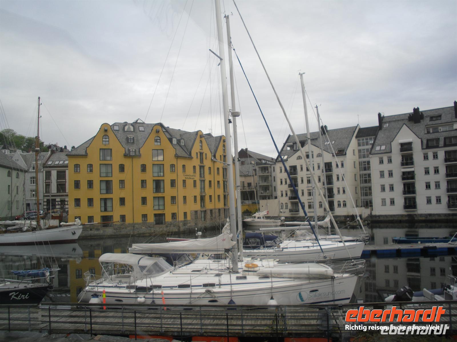 Wir können sogar einem Taucher beim Füttern der Fische zuschauen! Am späten Nachmittag checken wir schließlich in unserem zentral gelegenen Rica Parken Hotel in Alesund ein. Manch einer unserer Gäste nutzt die verbleibende Zeit bis zum Abendessen zu einem Spaziergang durch die Stadt. Wer lässt sich nicht von Alesund faszinieren? Die Stadt gibt sich jung, doch die Geschichte, die sie erzählt, ist voller Dramatik. In einer stürmischen Winternacht vor über einhundert Jahren brannte der gesamte Stadtkern bis auf die Grundmauern nieder. Nur wenige Häuser überlebten die Flammen und zehntausend Menschen verloren ihr Zuhause. Wie ein Vogel Phönix aus der Asche erhob sich eine neue Stadt im charakteristischen Jugendstil mit einer Vielfalt an Türmen, Spitzen und wunderschönen Ausschmückungen, die aus einer Phantasiewelt zu stammen scheinen. Nicht ohne Grund wurde Alesund im Jahre 2007 von den Norwegern zur schönsten Stadt des Landes ernannt. Herrliche Ausblicke kann man übrigens vom Stadtberg Aksla aus genießen, vom Stadtpark Alesunds führen 418 Treppenstufen bis zum Gipfel.