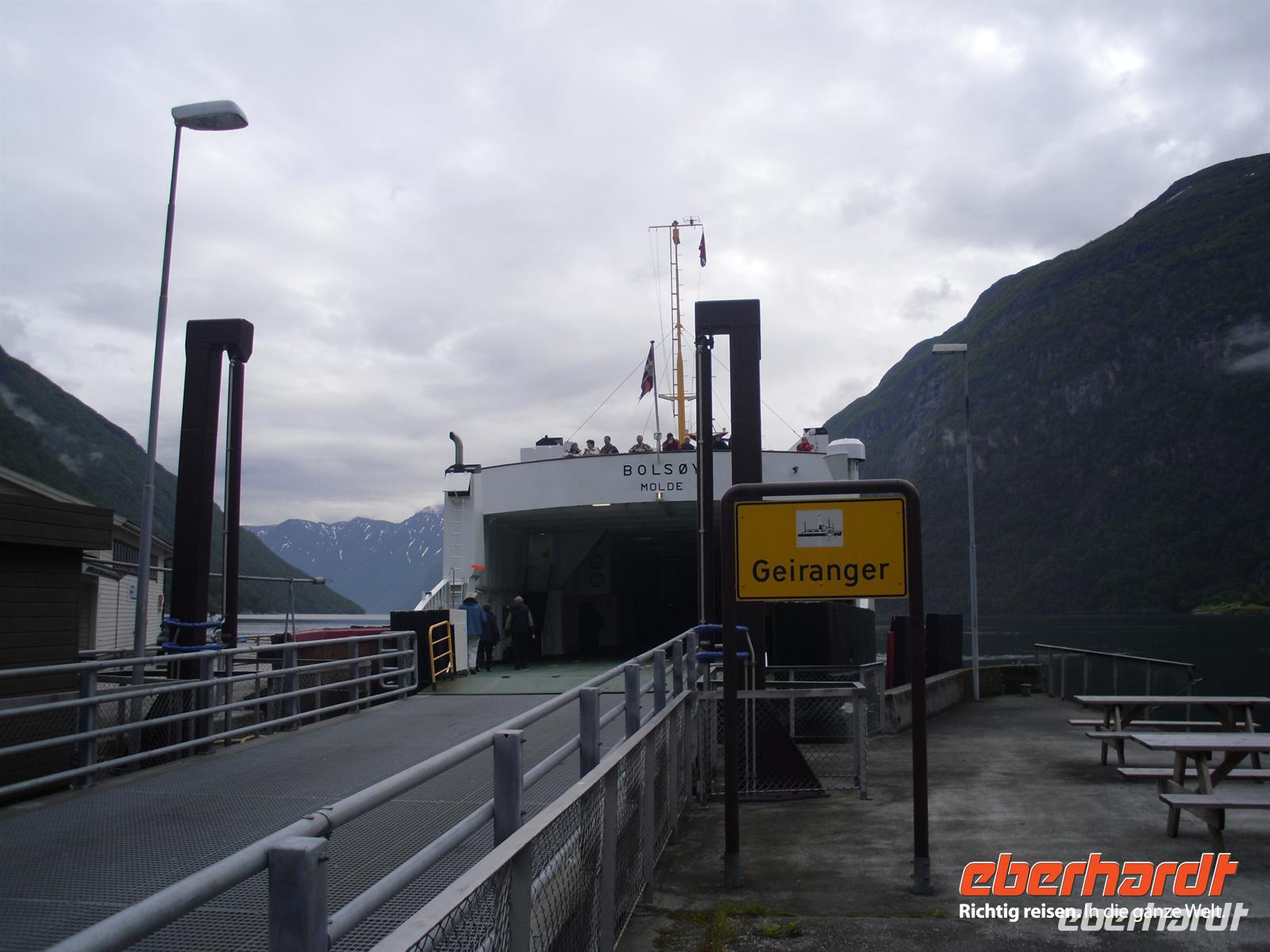 Am Morgen fahren wir weiter über die berühmte Adlerstraße, einer mit 11 Kehren versehenen Serpentinenstraße. Wir gelangen anschließend nach Eidsdal, wo wir mit der Fähre über den Norddalsfjord nach Linge übersetzen.