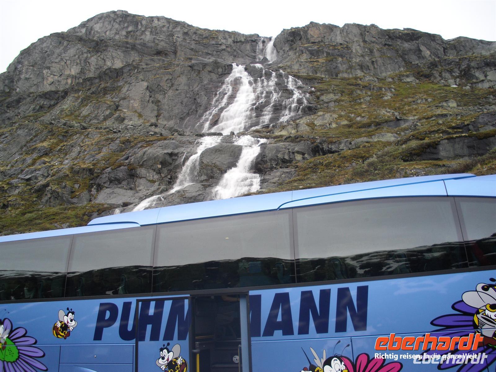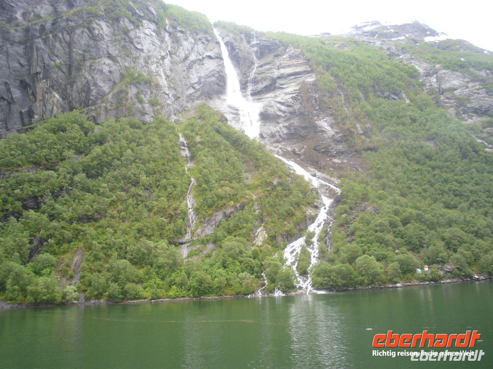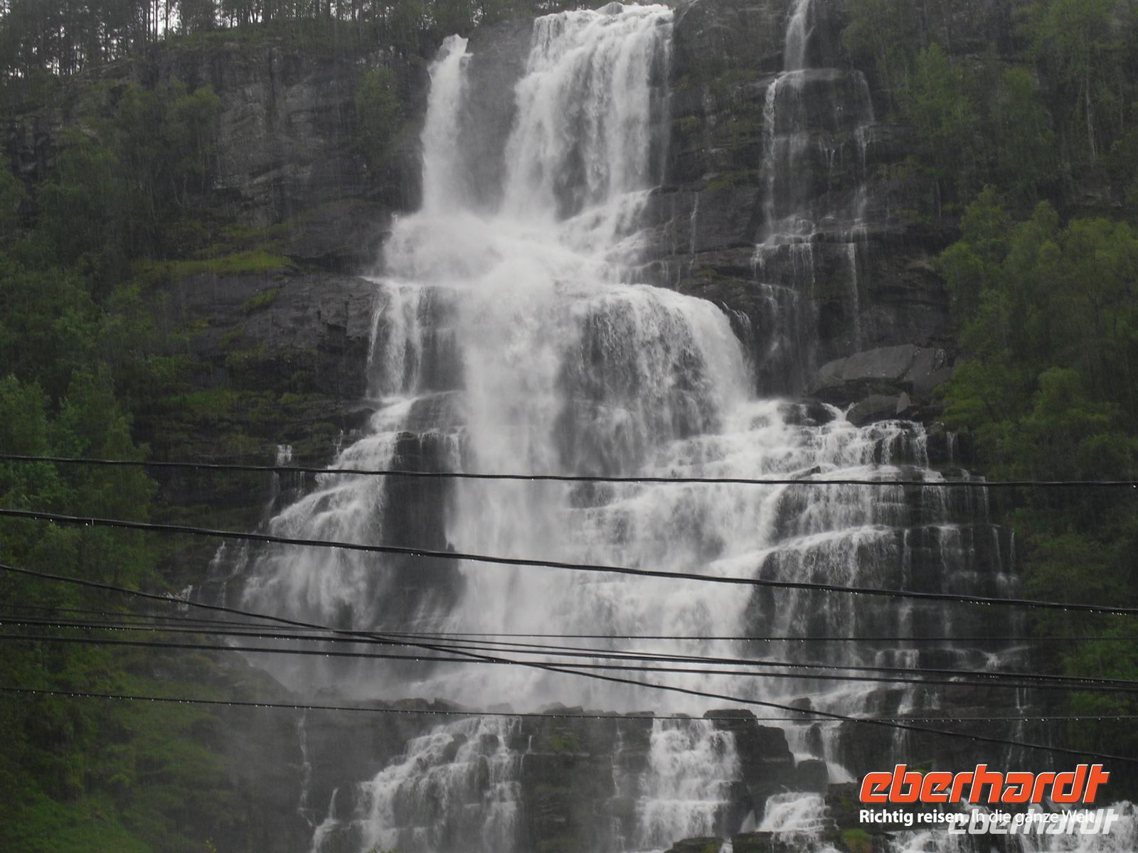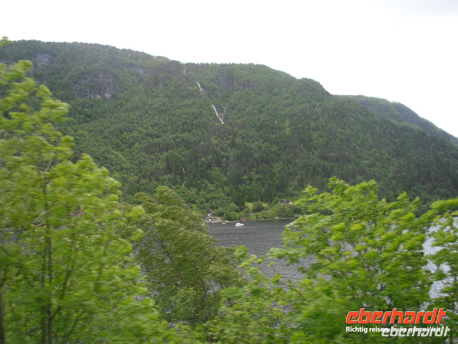 Hier haben wir einen kurzen Aufenthalt, bevor es nach Kaupanger weitergeht, von wo wir pünktlich um 12 Uhr mit dem Schiff nach Gudvangen ablegen. Nach einer herrlichen Fahrt durch die verschiedenen Fjordarme des Sognefjordes erreichen wir am frühen Nachmittag Gudvangen am südlichen Ende des schmalen Naeroyfjordes. Mit dem Bus geht es nun in Richtung Bergen. Auf unserem Weg dorthin legen wir einen Stopp am Tvindefoss ein, ein herrlicher Wasserfall - eine wahre „Wassersymphonie“! Schließlich erreichen wir Voss, das administrative, kommerzielle und touristische Zentrum eines ausgedehnten Tals (Vossevangen) inmitten der Bergwelt zwischen Sogne- und Hardangerfjord. Die fruchtbaren Böden haben die Region zum bedeutendsten landwirschaftlichen Nutzgebiet nach Südostnorwegen, Trondheimgebiet und Gudbrandsdal gemacht. Gegen 17.30 Uhr kommen wir im Scandic Hotel Bergen an. Das Hotel befindet sich unweit des Stadtzentrums und somit nutzt so manch einer von uns noch die Gelegenheit zu einem Spaziergang durch die Stadt. Bergen macht allerdings seinem Ruf als regenreichste Großstadt alle Ehre, denn hier soll es an etwa 250 Tagen im Jahr regnen - einen von diesen Regentagen hatten wir nun auch noch erwischt...!