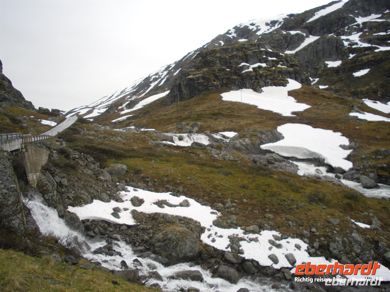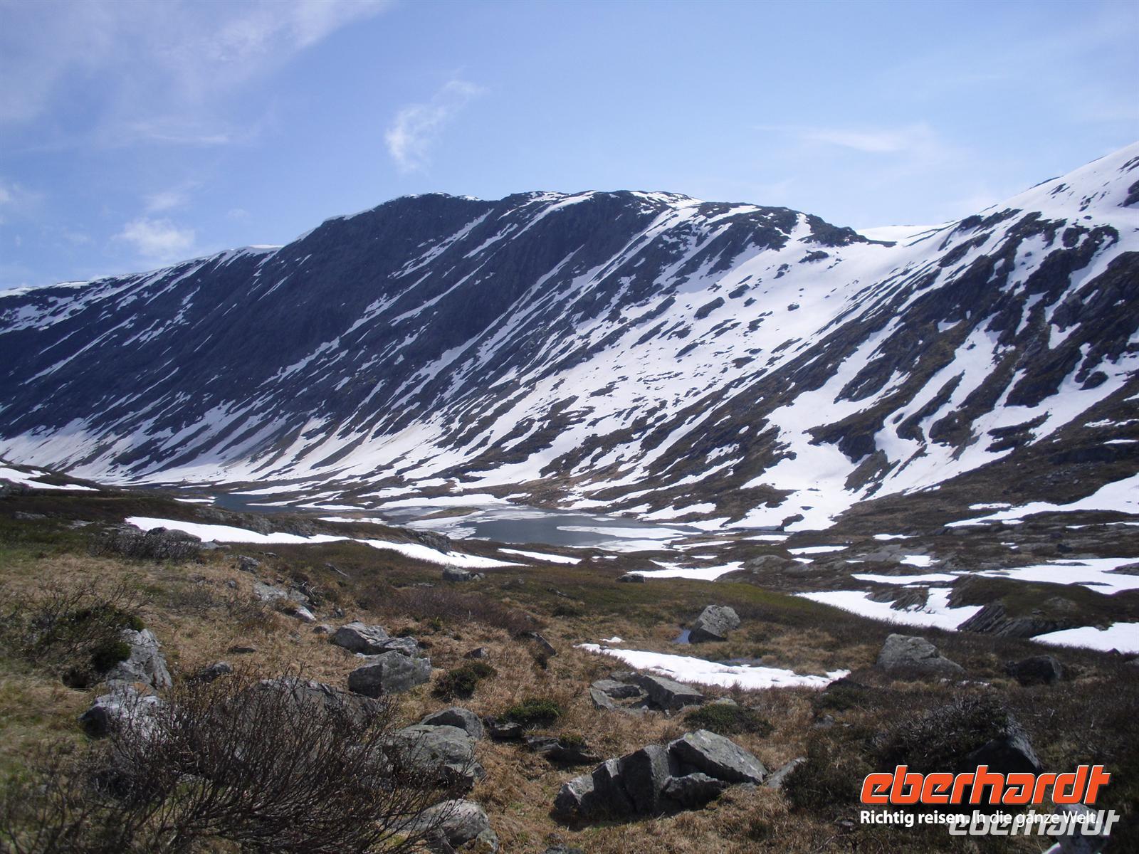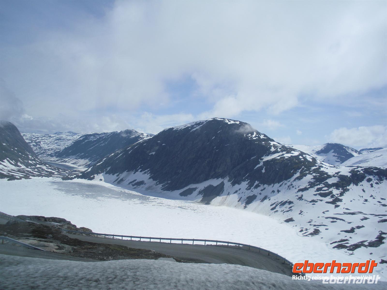 Wir fahren heute über die Sognefjellstraße, der Reichsstraße 55. Der mit 1.434 Metern höchstgelegene Gebirgspass Nordeuropas ist seit 1938 für Autos befahrbar.