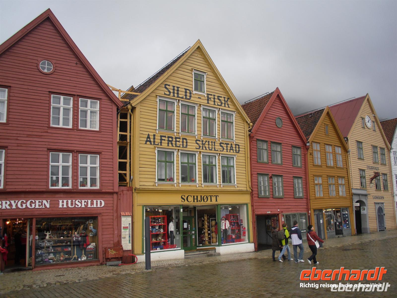 Seit König Olaf Kyrre im 11. Jahrhundert mit seinen Wikingerschiffen in der Hafenbucht Vagen anlegte und Bergen dort gründete, zieht die Stadt Menschen aus aller Welt an. Viele Besucher kamen und gingen, andere ließen sich in der norwegischen Hafenstadt nieder. Viele Einheimische verließen ihre traute Umgebung und lernten während ihrer Wanderjahre andere Länder, Leute und Sitten kennen, ehe sie zurückkamen. So konnte sich Bergen zu einem Schmelztiegel verschiedener Kulturen und zu „Norwegens internationalster Stadt“ entwickeln. Bergen wuchs um den Hafen herum nach und nach zu einer Stadt heran. Handel, Schifffahrt und Handwerk waren ihre Existenzgrundlage. Schon früh wurde Bergen die größte Stadt des Nordens und Norwegens erste Haupt- und Residenzstadt des Königs. Bereits im 14. Jahrhundert war die Stadt so bedeutend geworden, dass die Hanseaten auf Bryggen ein Kontor gründeten, das noch heute zu sehen ist. Nach einer interessanten Stadtführung geht es für uns auch schon wieder weiter... Bergen ist auch das Tor zum Reich der Fjorde.