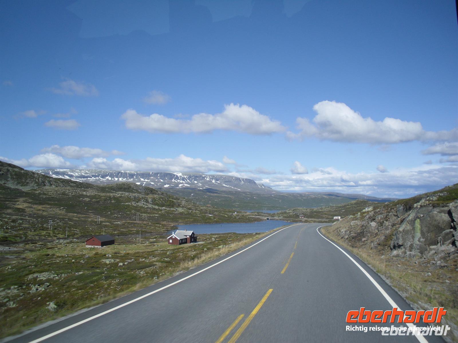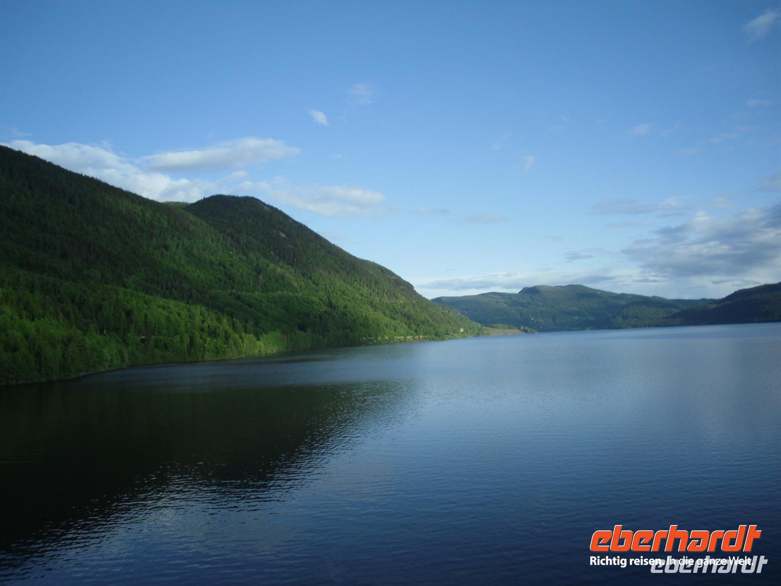 Eine kleine Mittagspause legen wir heute am Wasserfall Steinsdalsfossen ein - hier sollte man sich die Chance nicht entgehen lassen, einmal einen Wasserfall „von hinten“ zu betrachten, zwischen Felswand und Wasser führt ein schmaler Pfad entlang. Unser nächstes Ziel ist der Hardangerfjord, der sich von der Küste über fast 180 Kilometer ins Land hinein erstreckt und in mehrere Fjordarme gliedert. Der König der Fjorde wird für seine weiß- und rosablühenden Obstgärten, das milde Klima, die leuchtend grünen Wiesenhänge und imponierenden Wasserfälle gepriesen. Zwischen Bruravik und Brimnes fahren wir ein letztes Mal mit der Fähre über einen norwegischen Fjord und über Eidfjord gelangen wir weiter zum berühmten Wasserfall Vöringfossen. 182 Meter sind es, die die gewaltigen Wassermassen der Björeia in freiem Fall zurücklegen - vom Fossli-Hotel aus genießen wir herrliche Blicke auf diesen imposanten Wasserfall! Wenige Minuten später sind wir bereits in der Hardangervidda, hier erleben wir die endlose Weite dieses faszinierenden Hochgebirgsplateaus, in der Europas größter Stamm wilder Rentiere zu Hause ist. Das Wetter ist nun endlich auch mal gnädig mit uns und wir genießen diese Landschaft bei Sonnenschein. Über Geilo, Gol und das fruchtbare Hallingdal kommen wir am Abend in unserem Hotel in Noresund an. Das Hotel liegt direkt am fischreichen Kröderensee, ungefähr 100 Kilometer von Oslo entfernt.
