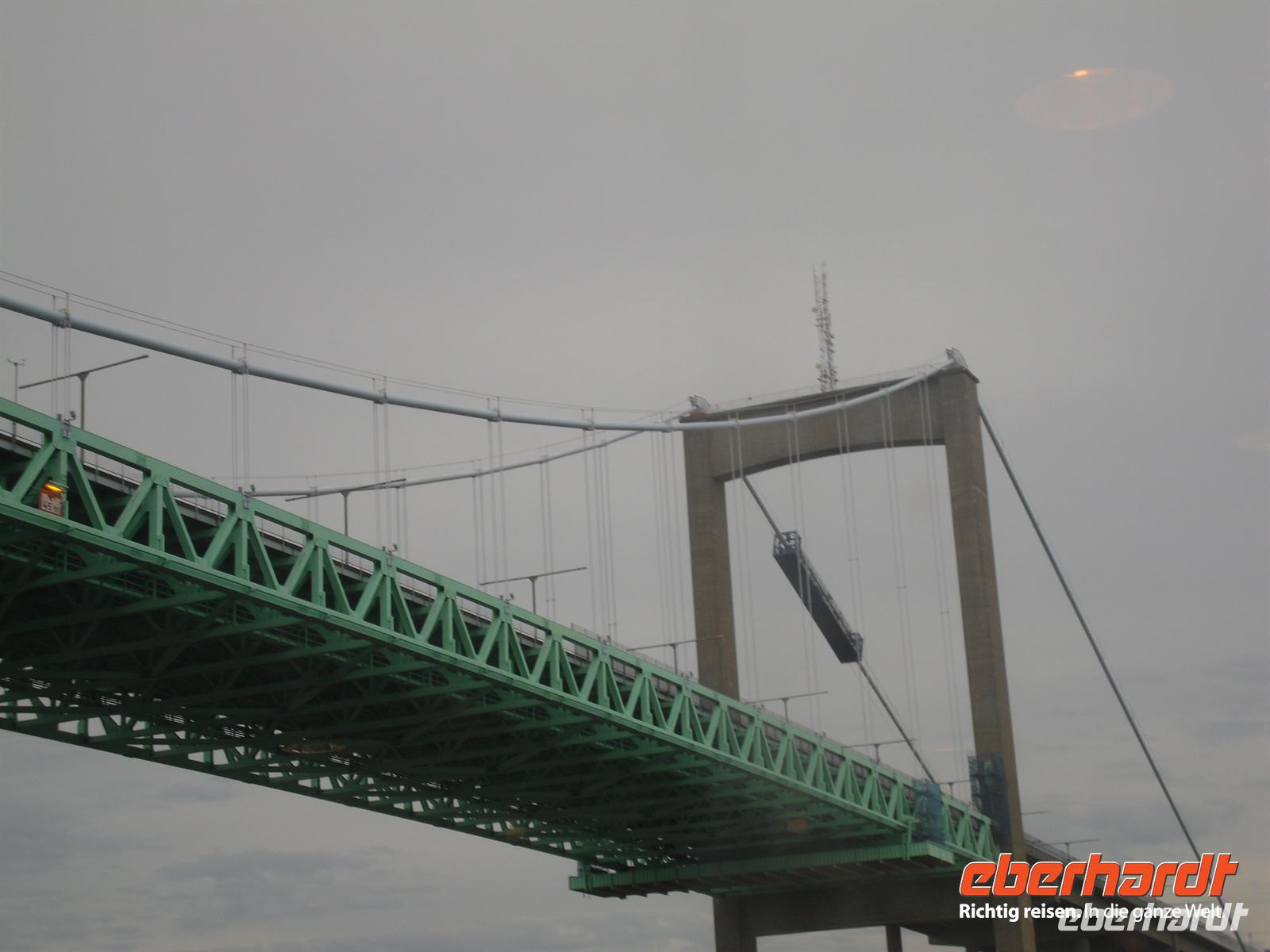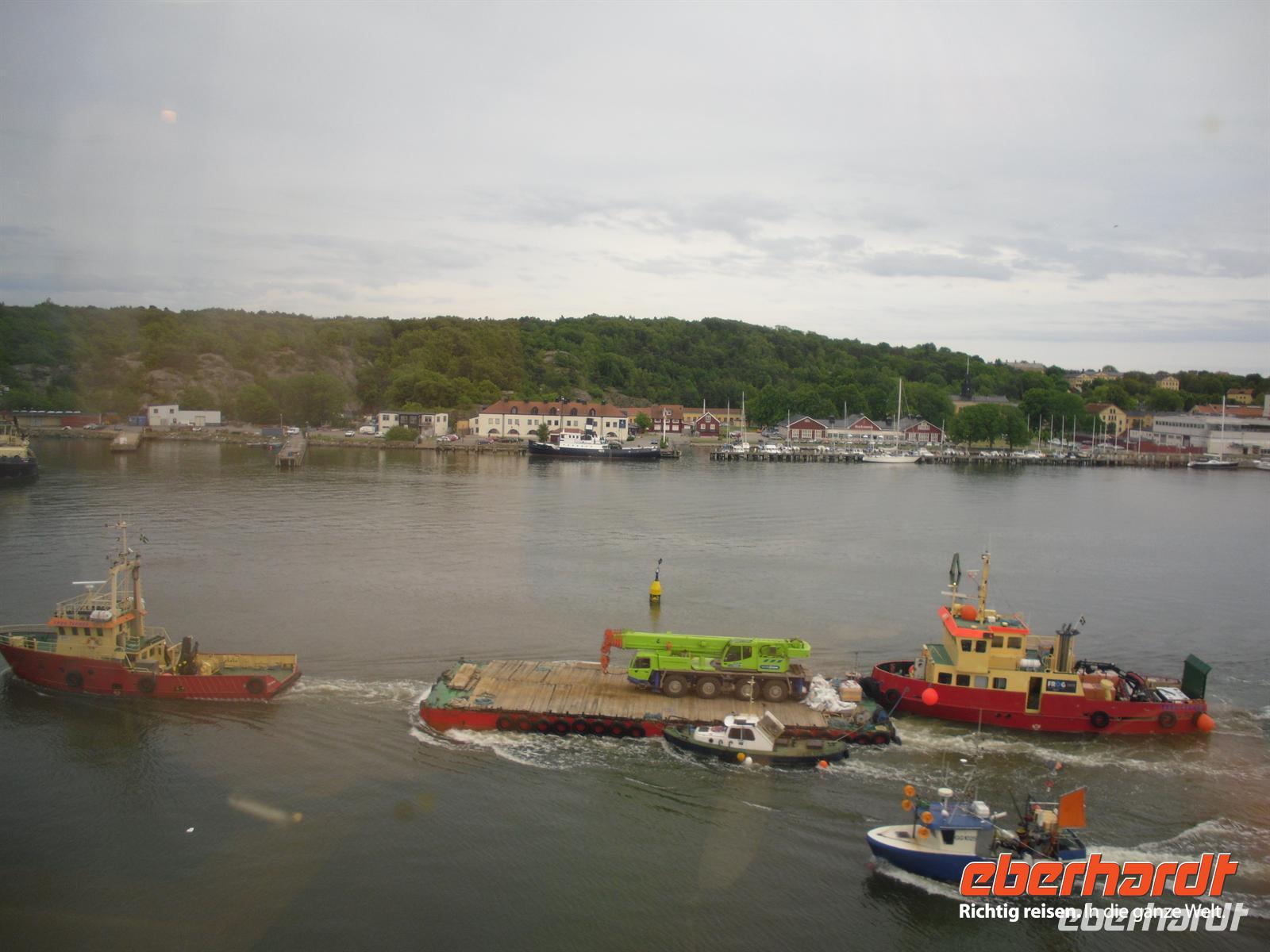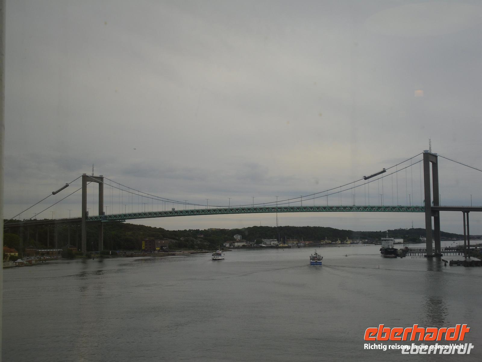 Nach einem reichhaltigen Frühstücksbuffet kommen wir pünktlich um 9 Uhr im Hafen von Göteborg an. Wir fahren mit der Fähre durch die Älvsborgsbron, die wir dann wenig später mit dem Bus befahren. Göteborgs „Golden Gate-Bridge“ verbindet das Stadtzentrum mit Hisingen, der viertgrößten Insel Schwedens.
