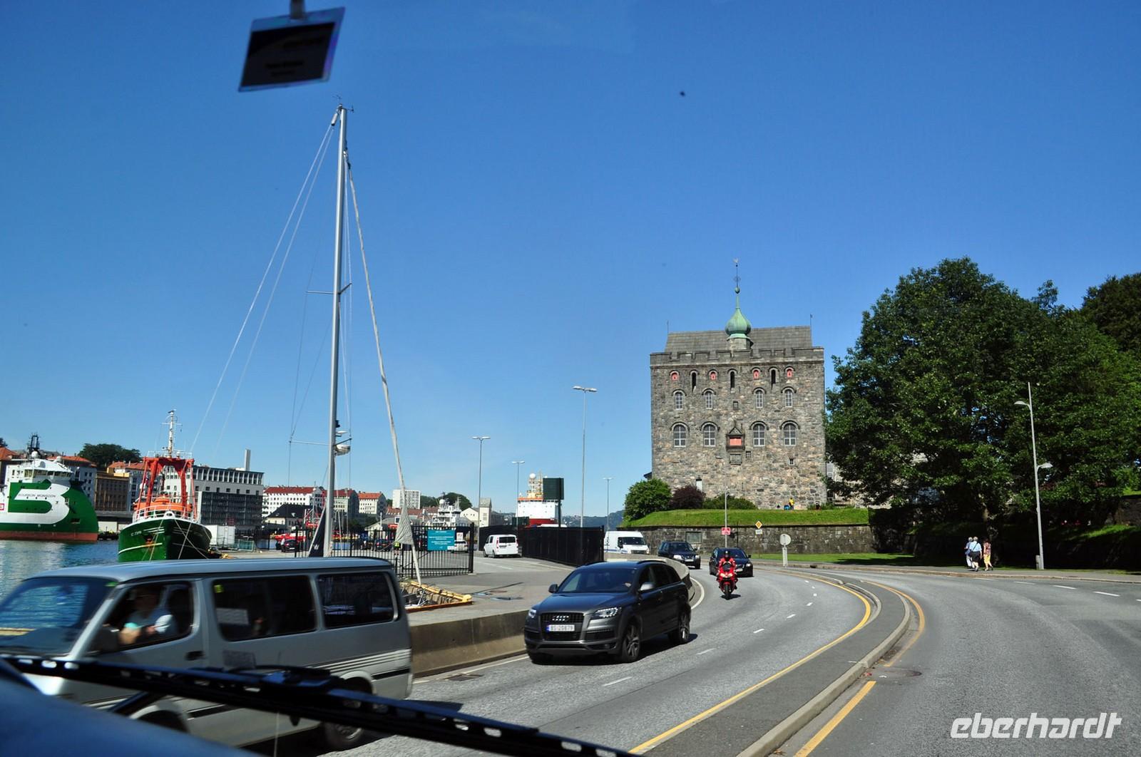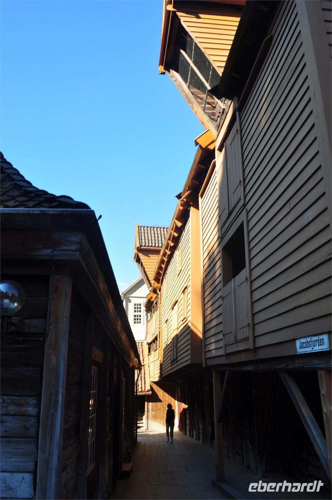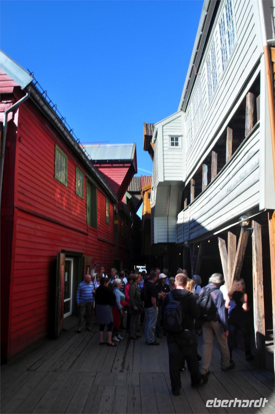 Am Morgen (bei Sonnenschein) erleben wir die wunderschöne Stadt Bergen, natürlich mit dem UNESCO Weltkulturerbe am alten Hafen.